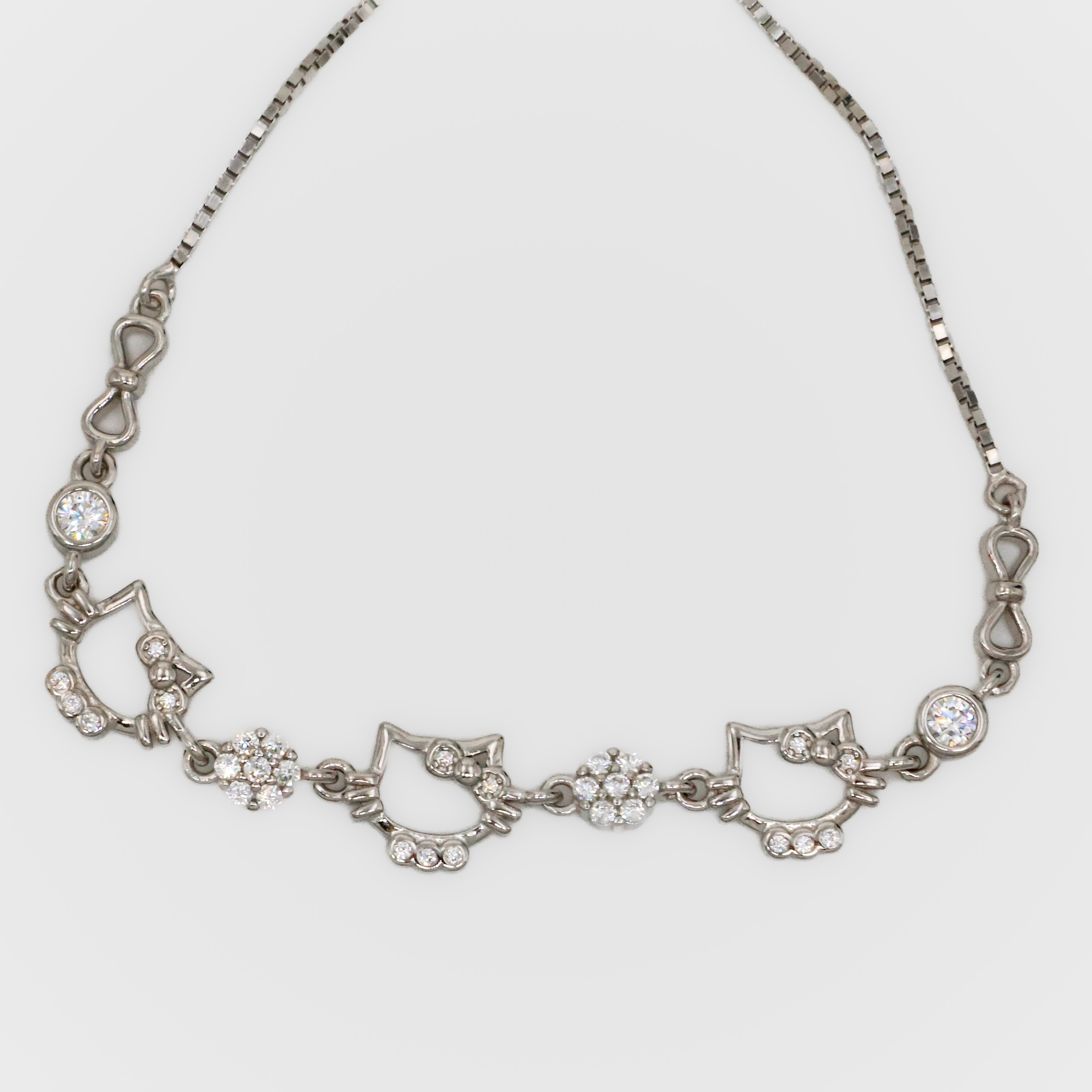 Cute silver kitty bracelet with sparkling stones, a charming accessory for everyday wear. Buy Silver Kitty Bracelet from Arham Silver Palace in Hyderabad.