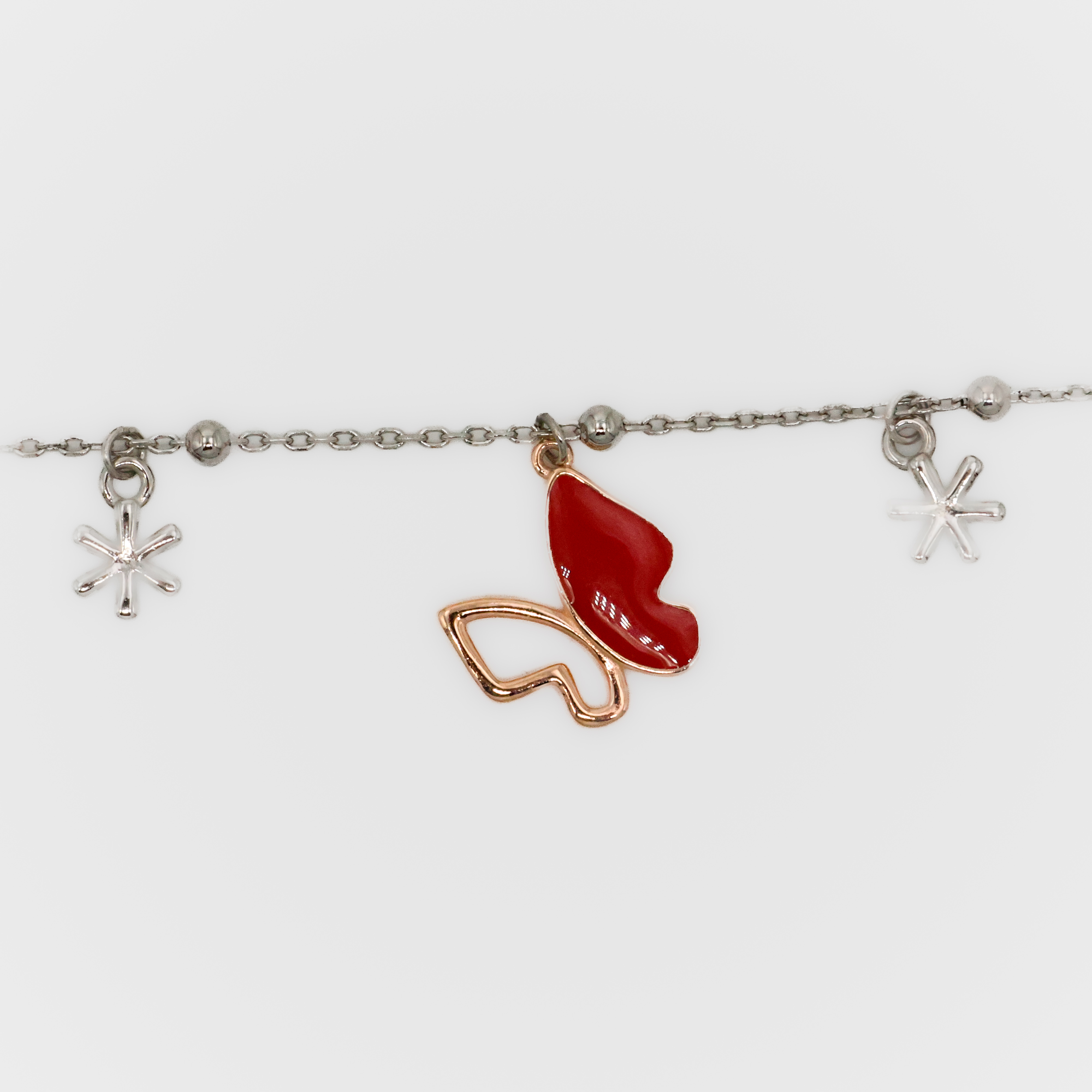 Elegant silver butterfly bracelet with red enamel accent, perfect for everyday wear and special occasions. Buy Silver Butterfly Bracelet from Arham Silver Palace in Hyderabad.
