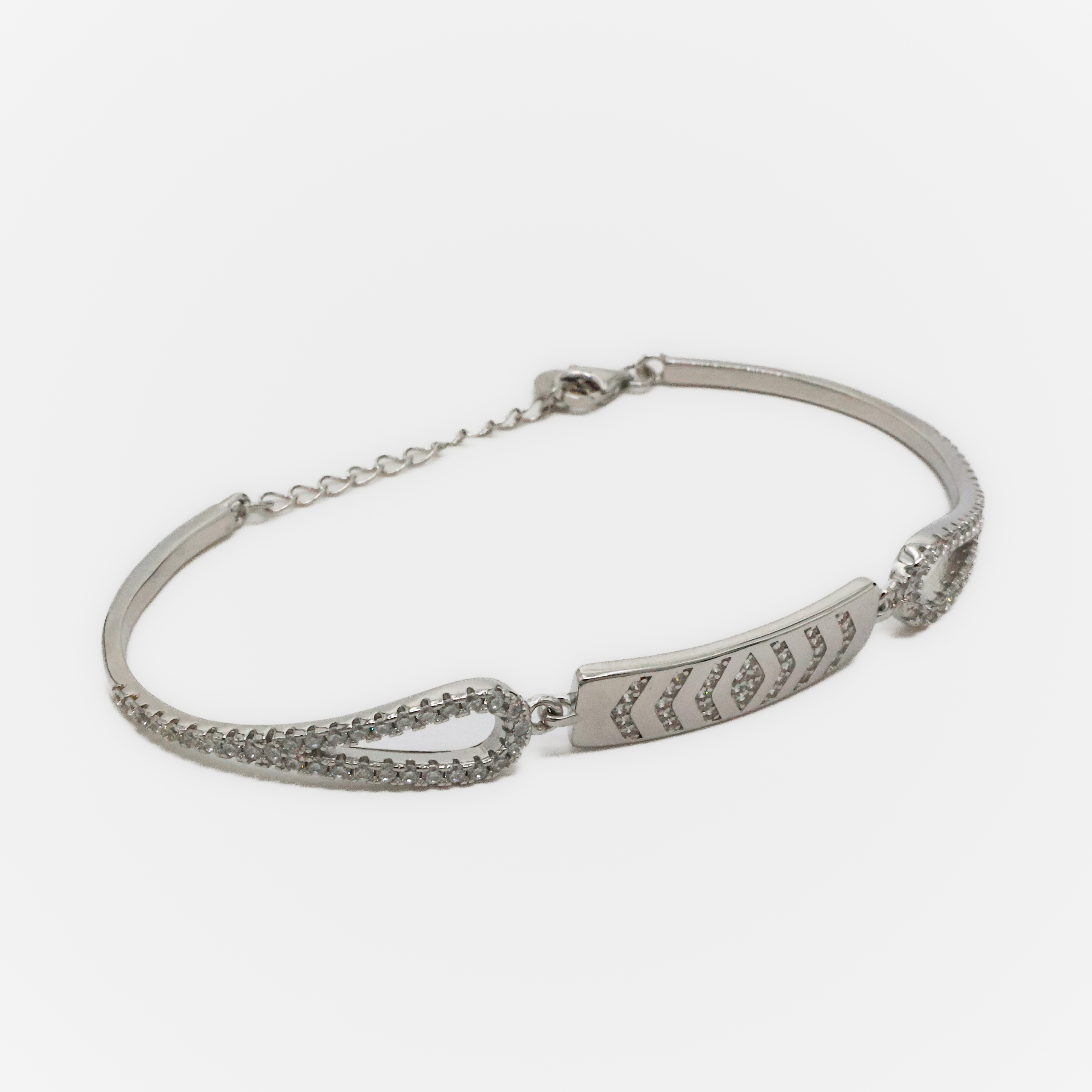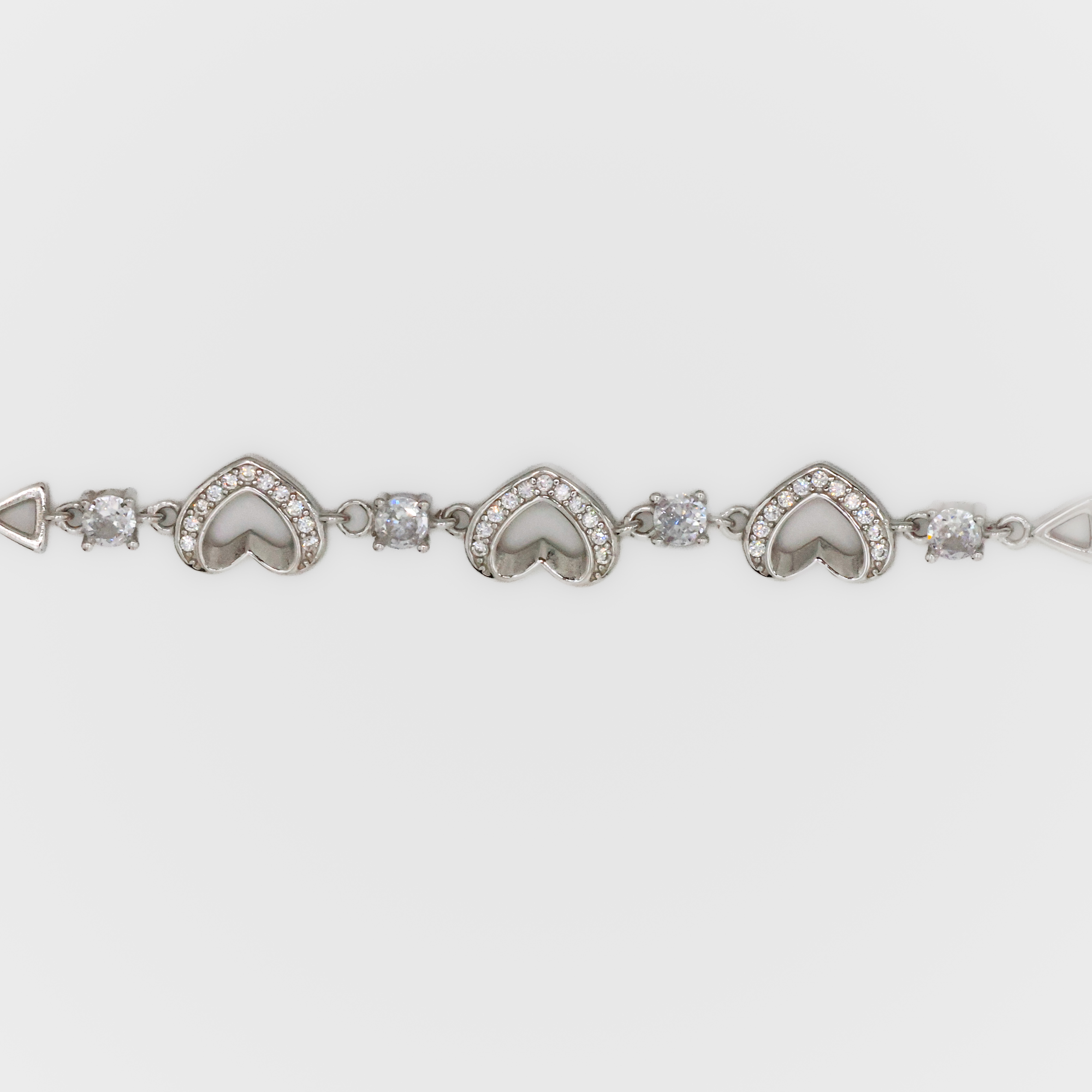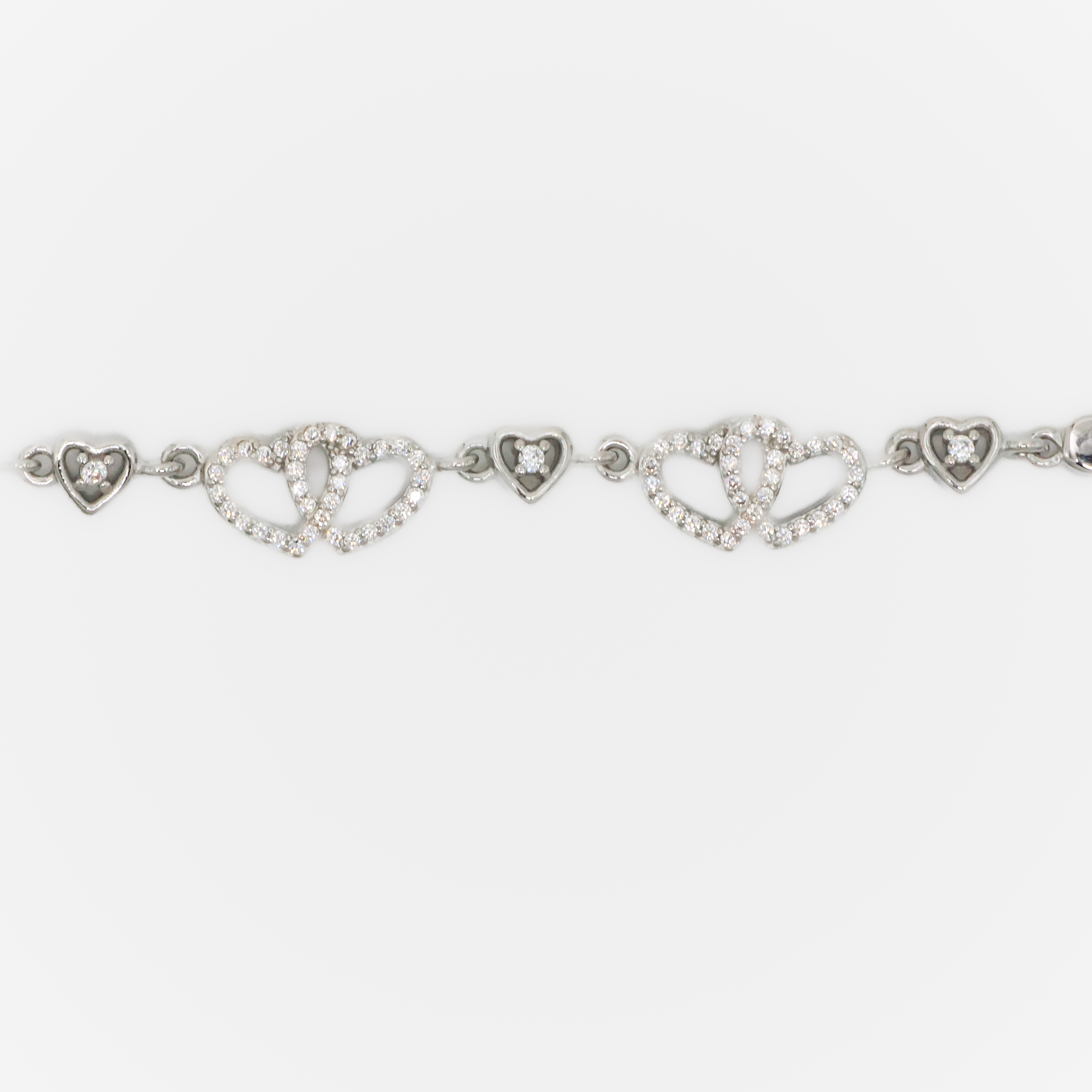 Elegant silver heart bracelet with cubic zirconia stones, perfect for women and girls. Buy silver heart bracelet from Arham Silver Palace in Hyderabad.
