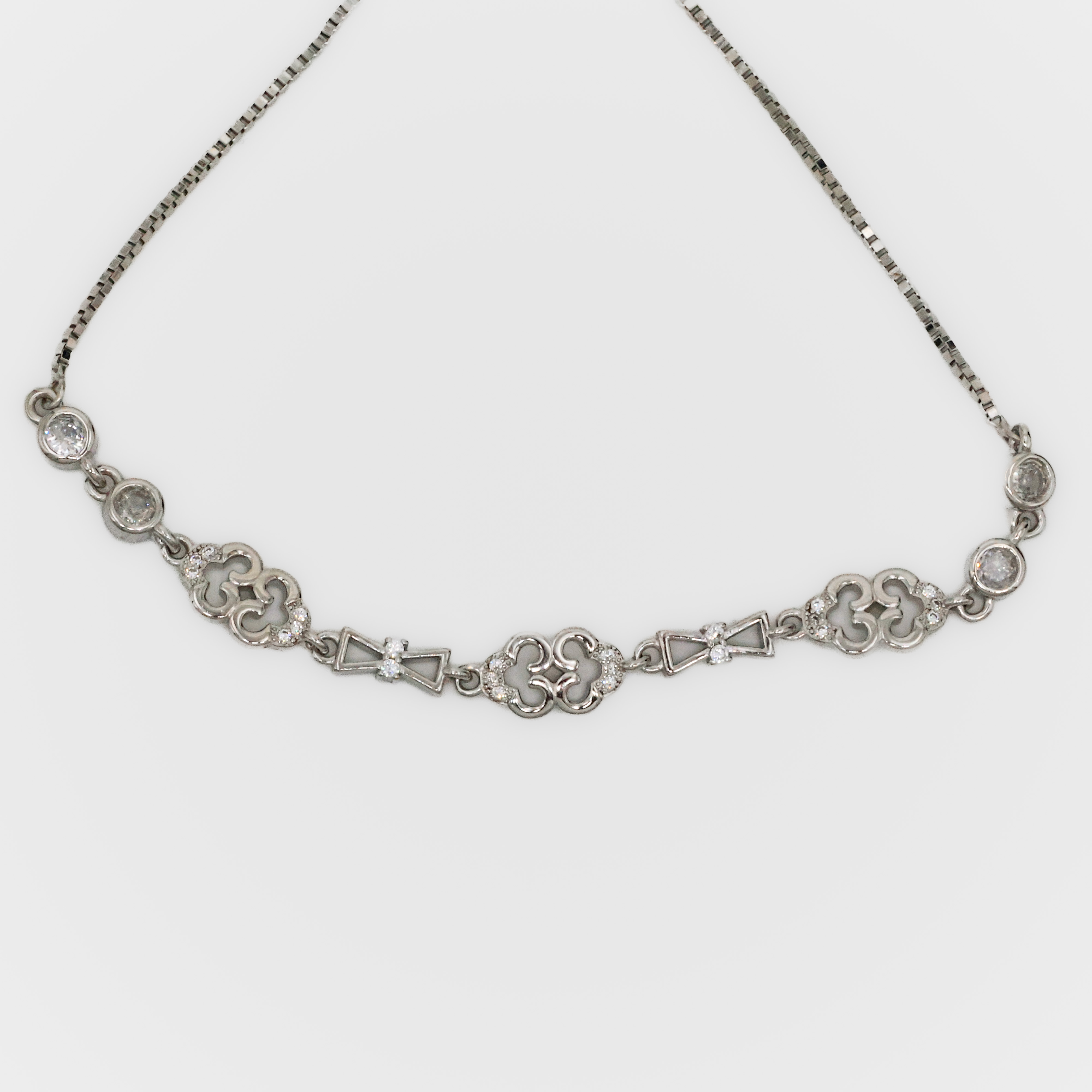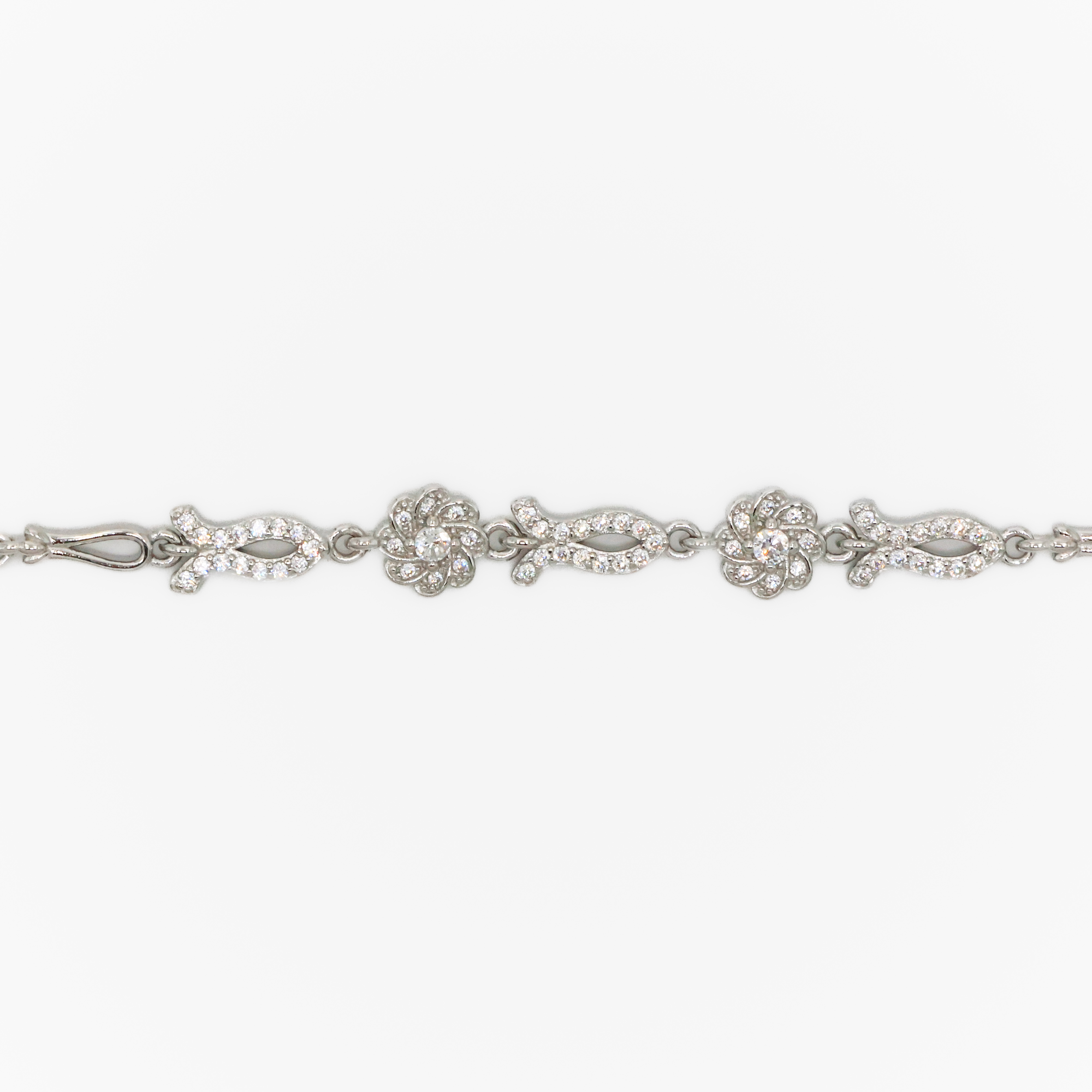 Elegant silver bracelet adorned with cubic zirconia stones, perfect for special occasions. Buy Silver CZ Bracelet from Arham Silver Palace in Hyderabad.