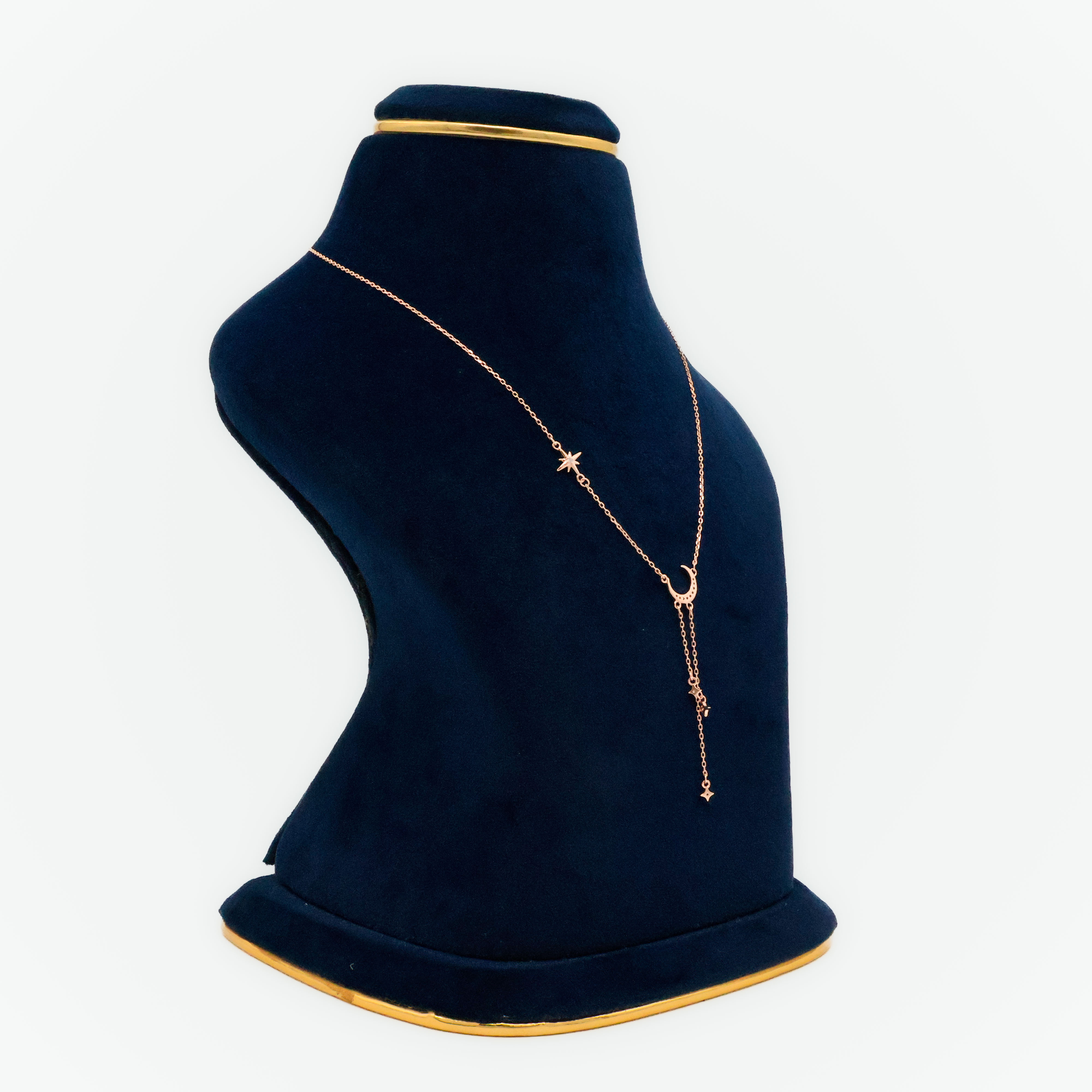 Rose gold crescent moon necklace with star charms, perfect for everyday wear or special occasions. Buy rose gold necklace from Arham Silver Palace in Hyderabad.