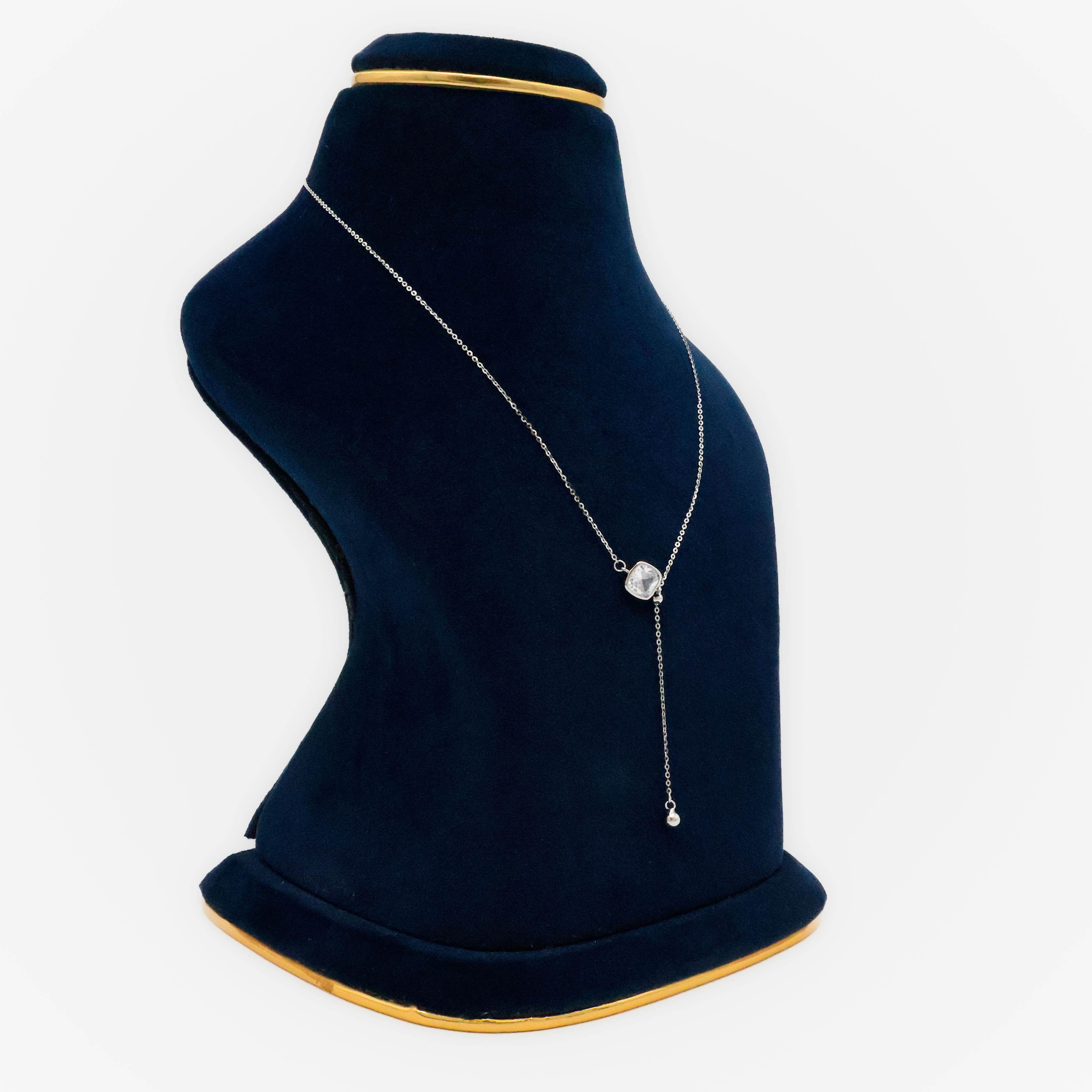 Elegant silver drop necklace featuring a crystal pendant, perfect for daily wear or special occasions. Buy silver drop necklace from Arham Silver Palace in Hyderabad.