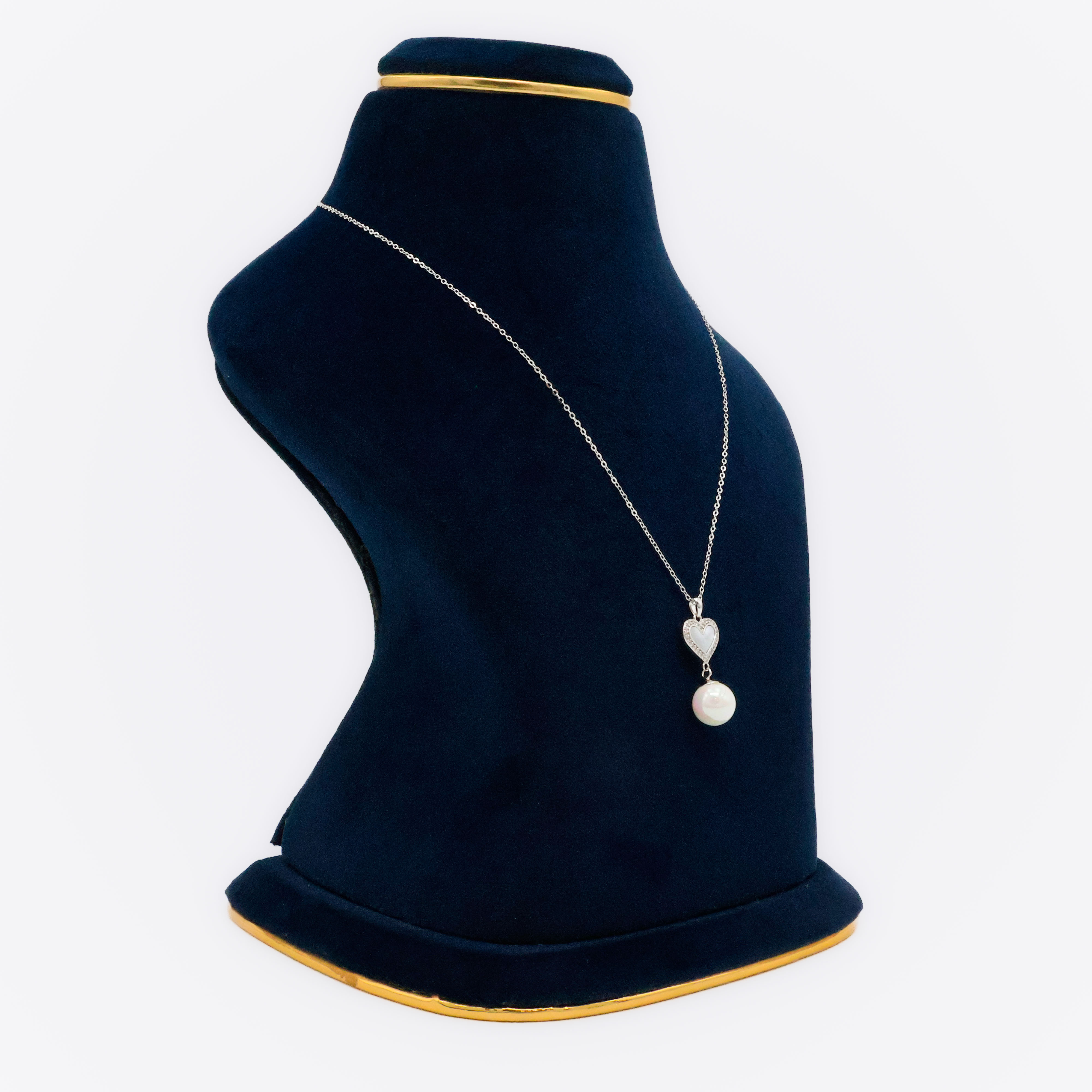 Rose gold pearl pendant necklace with heart stone, a unique piece for everyday elegance. Buy Pearl Pendant Necklace from Arham Silver Palace in Hyderabad.