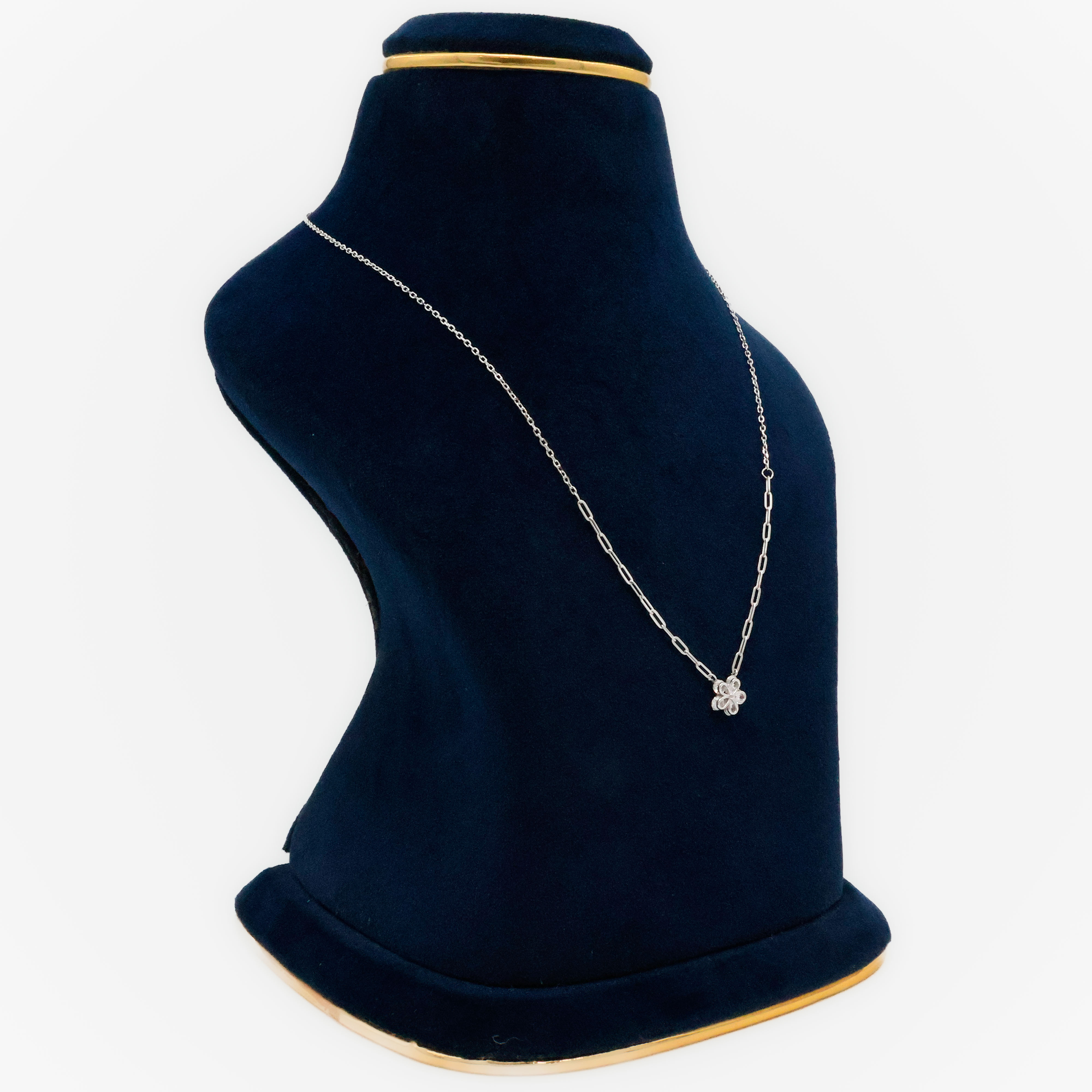 Elegant silver flower necklace with a delicate chain, perfect for everyday wear or special occasions. Buy silver flower necklace from Arham Silver Palace in Hyderabad.
