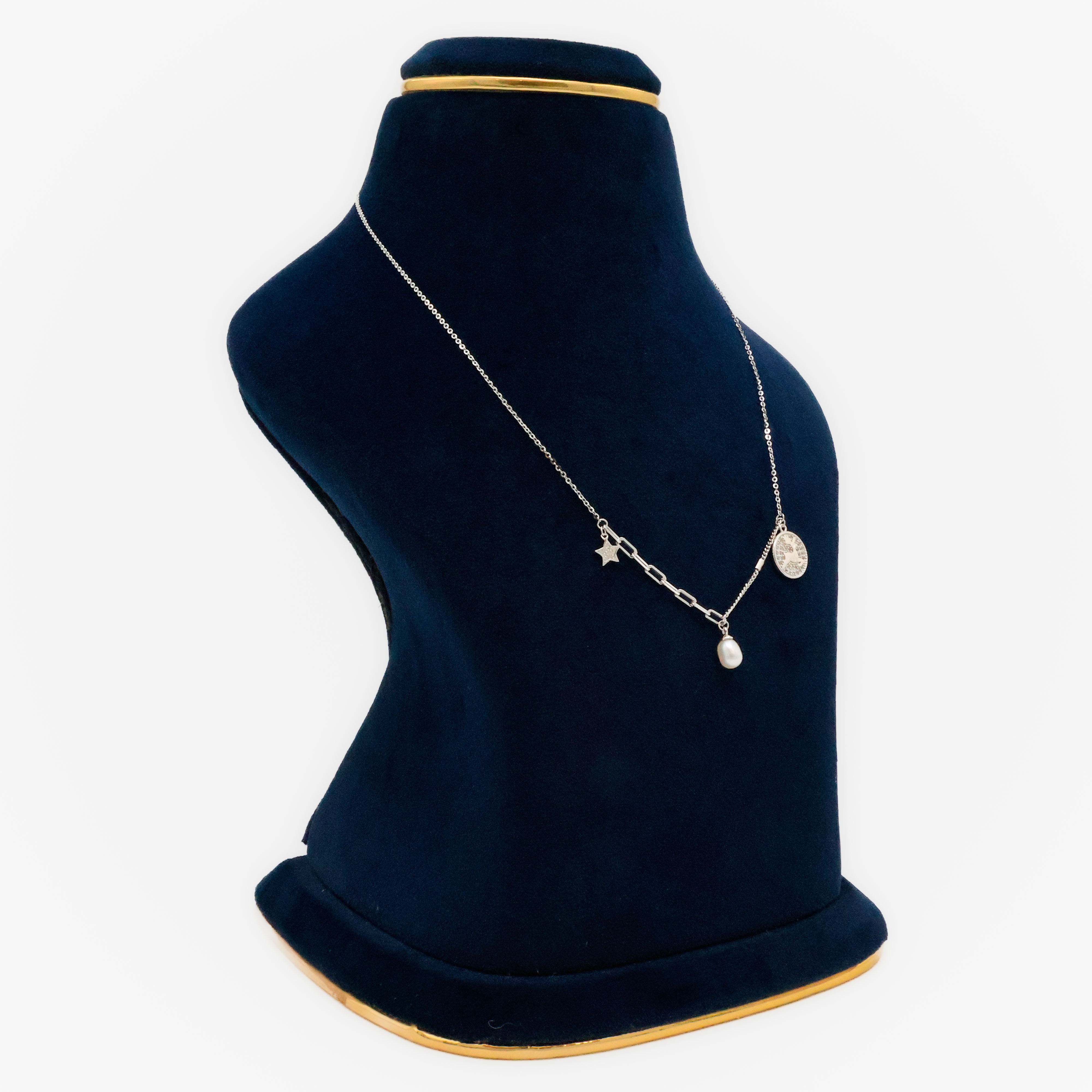 Elegant silver pendant necklace with a sparkling stone, perfect for adding a touch of glamour. Buy Silver Pendant Necklace from Arham Silver Palace in Hyderabad.