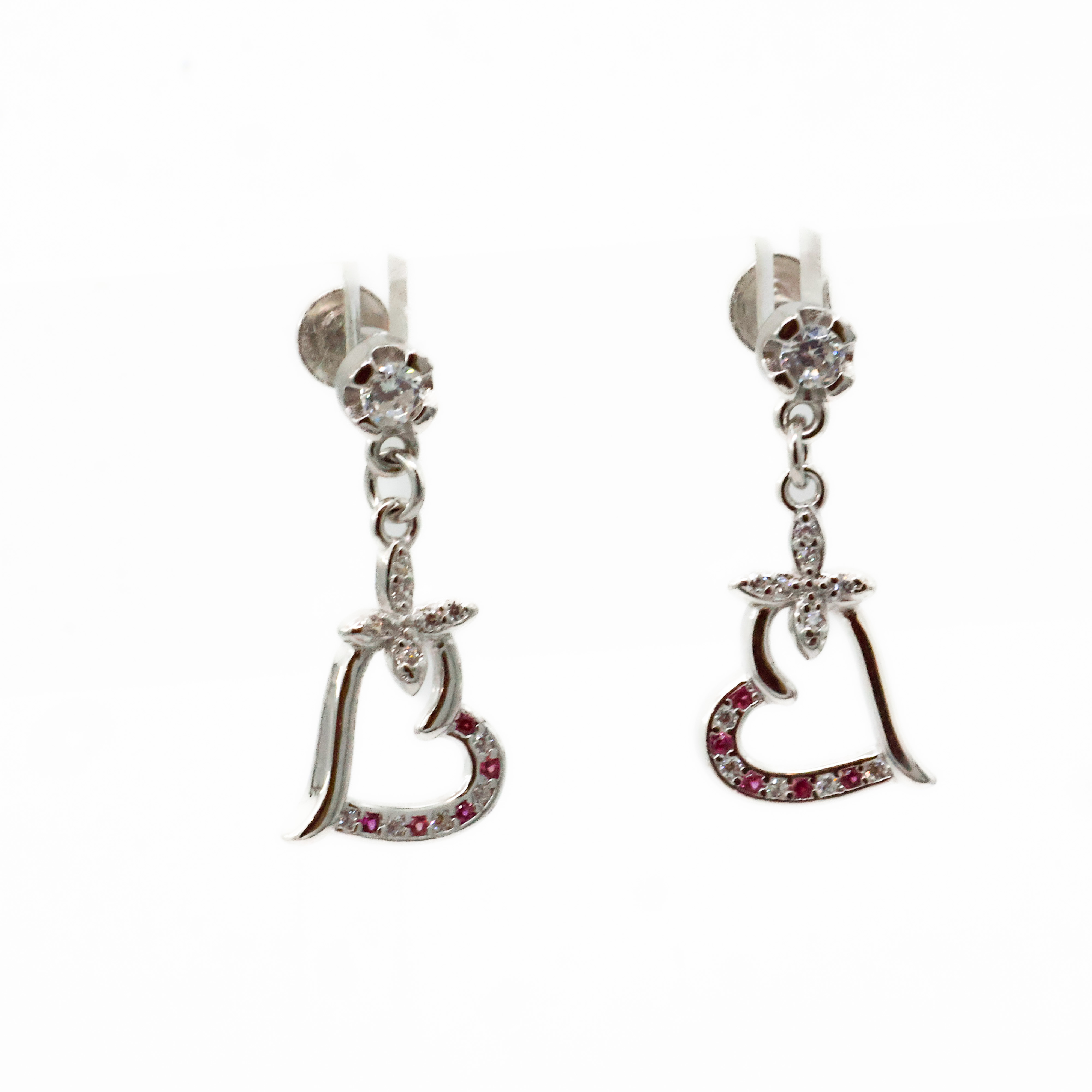 Elegant silver heart earrings with sparkling accents, perfect for special occasions and everyday wear. Buy silver heart earrings from Arham Gold in Hyderabad.