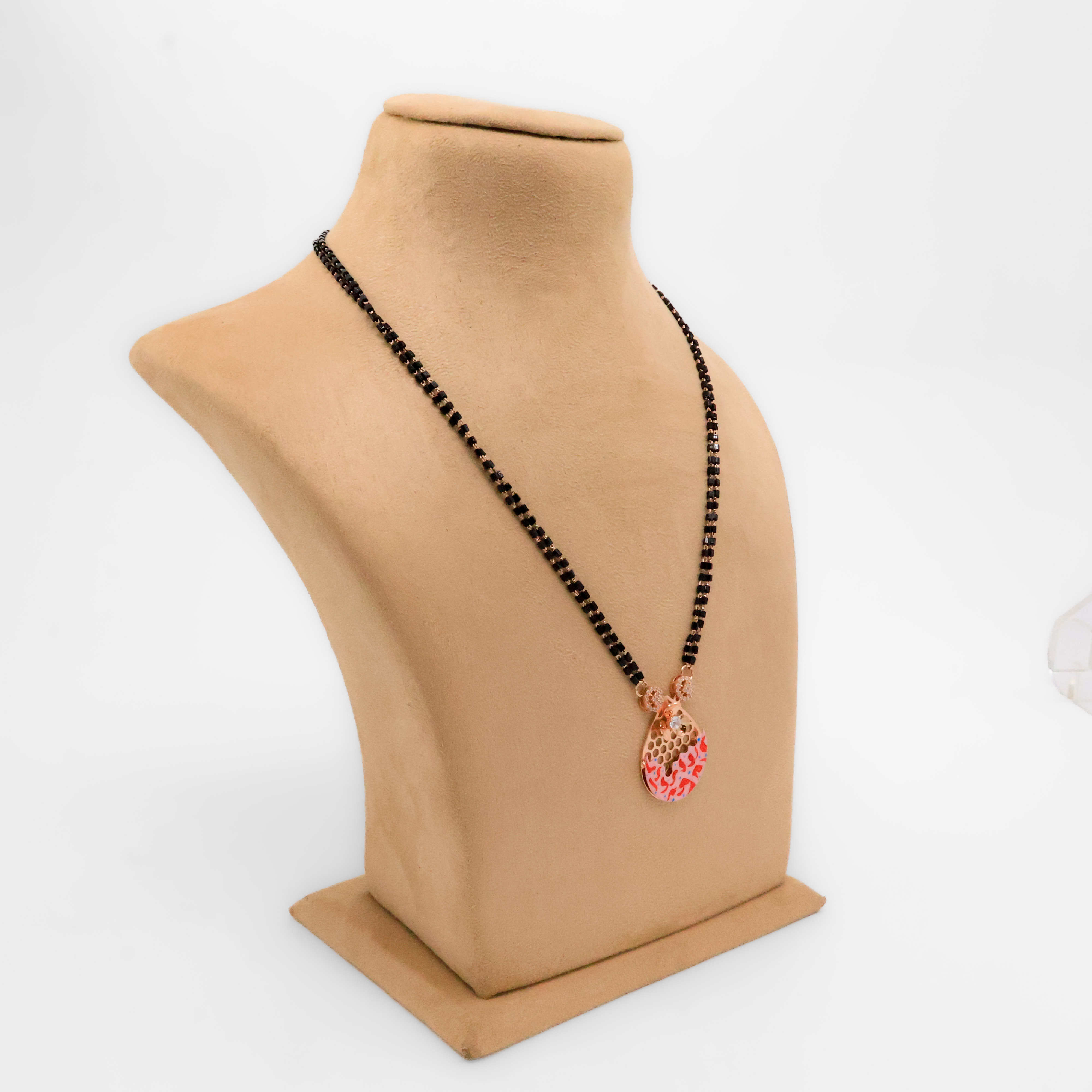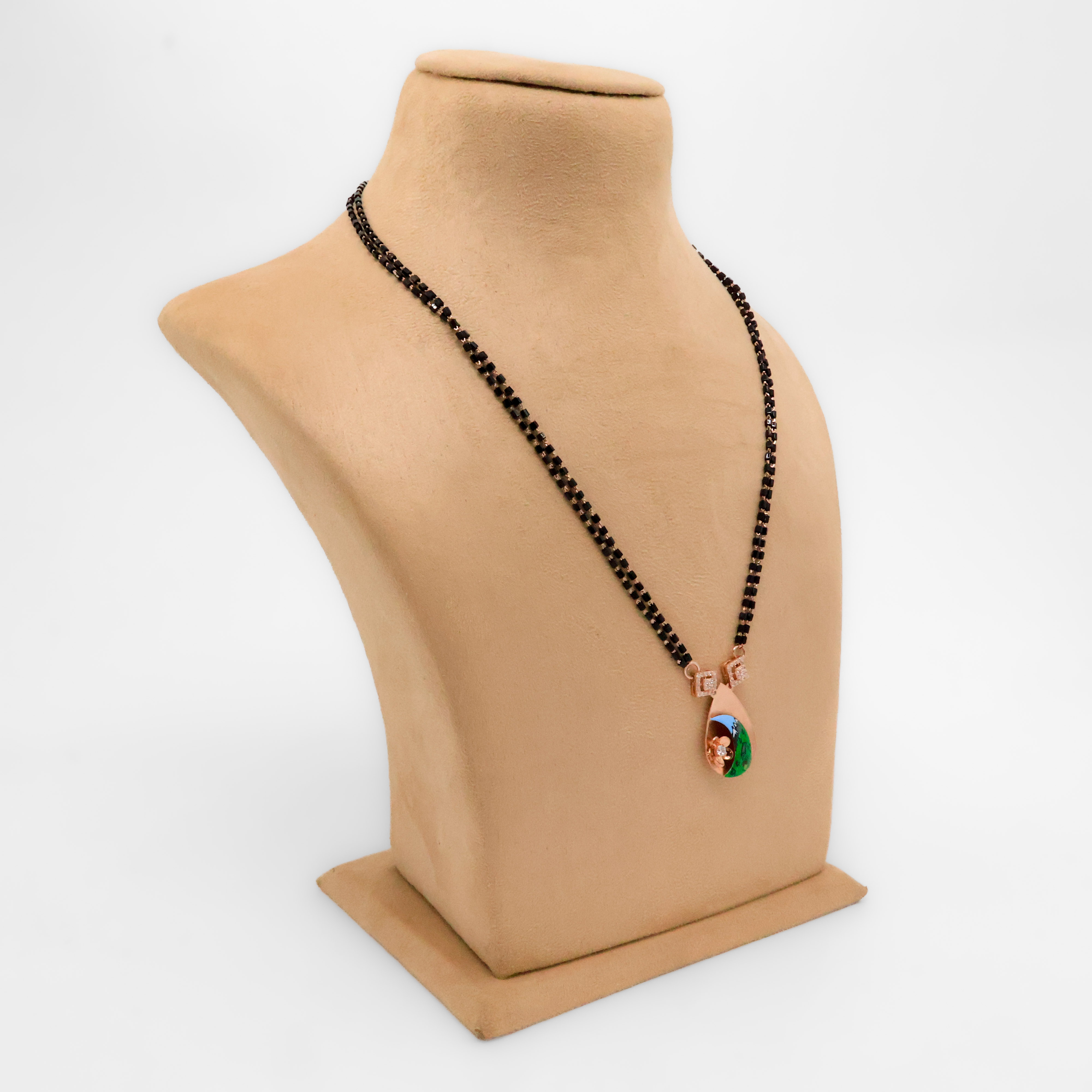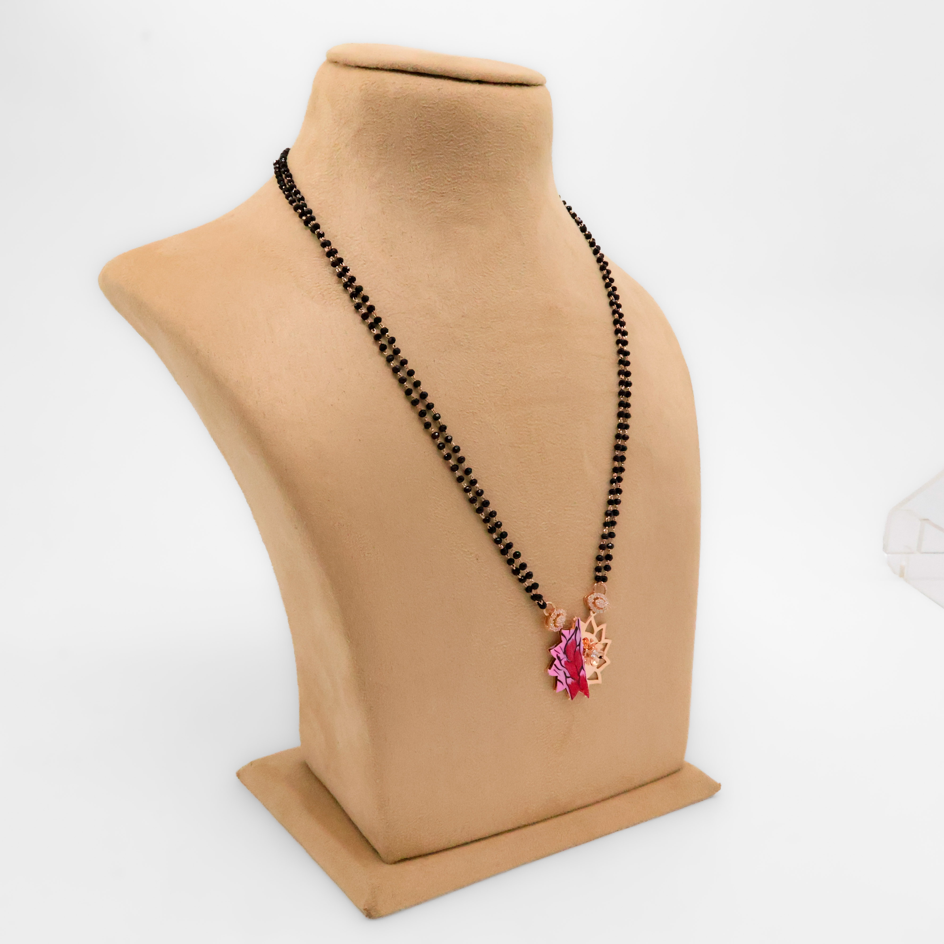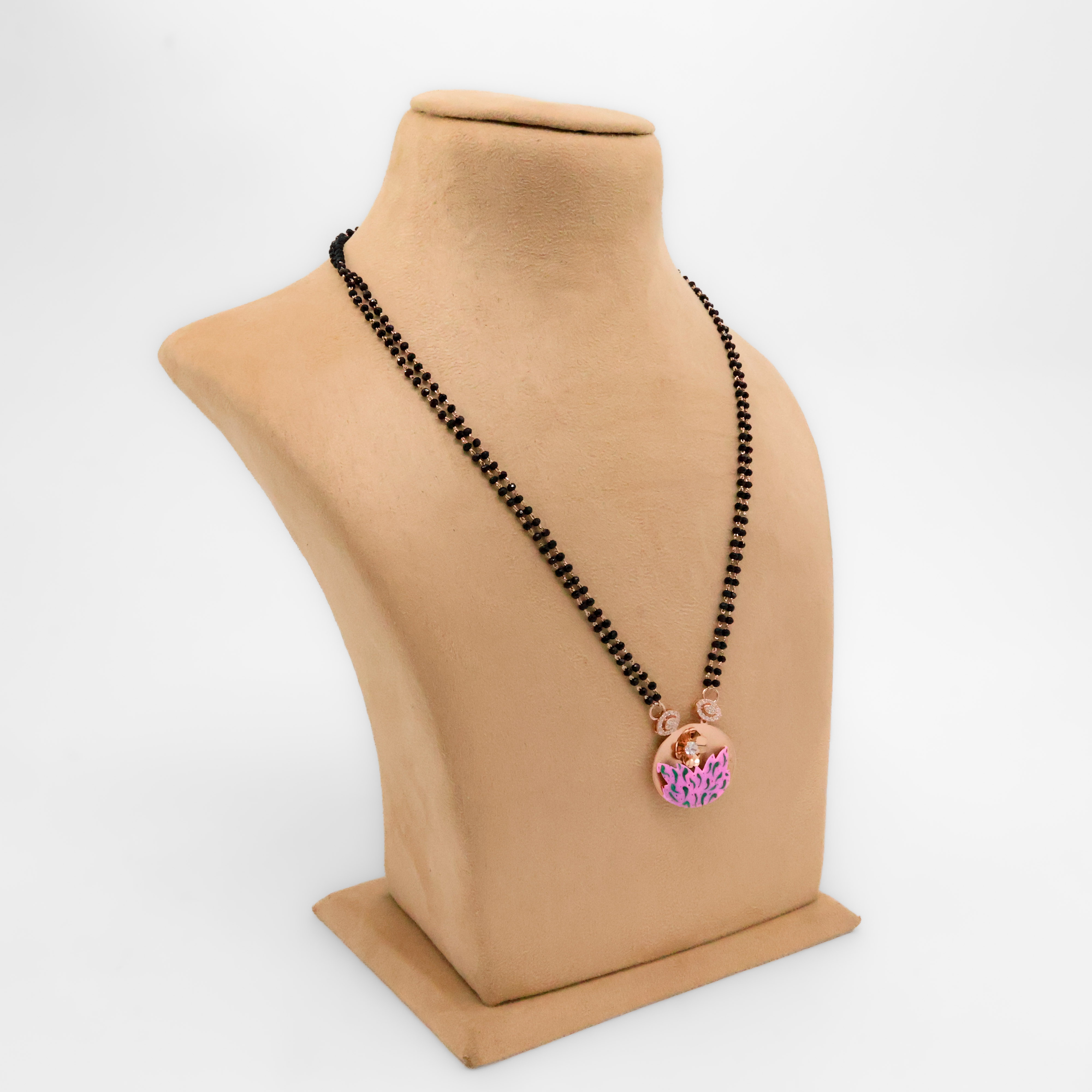 Rose gold mangalsutra with black beads, perfect for traditional wear and everyday use. Buy Rose Gold Mangalsutra from Arham Silver Palace in Hyderabad.