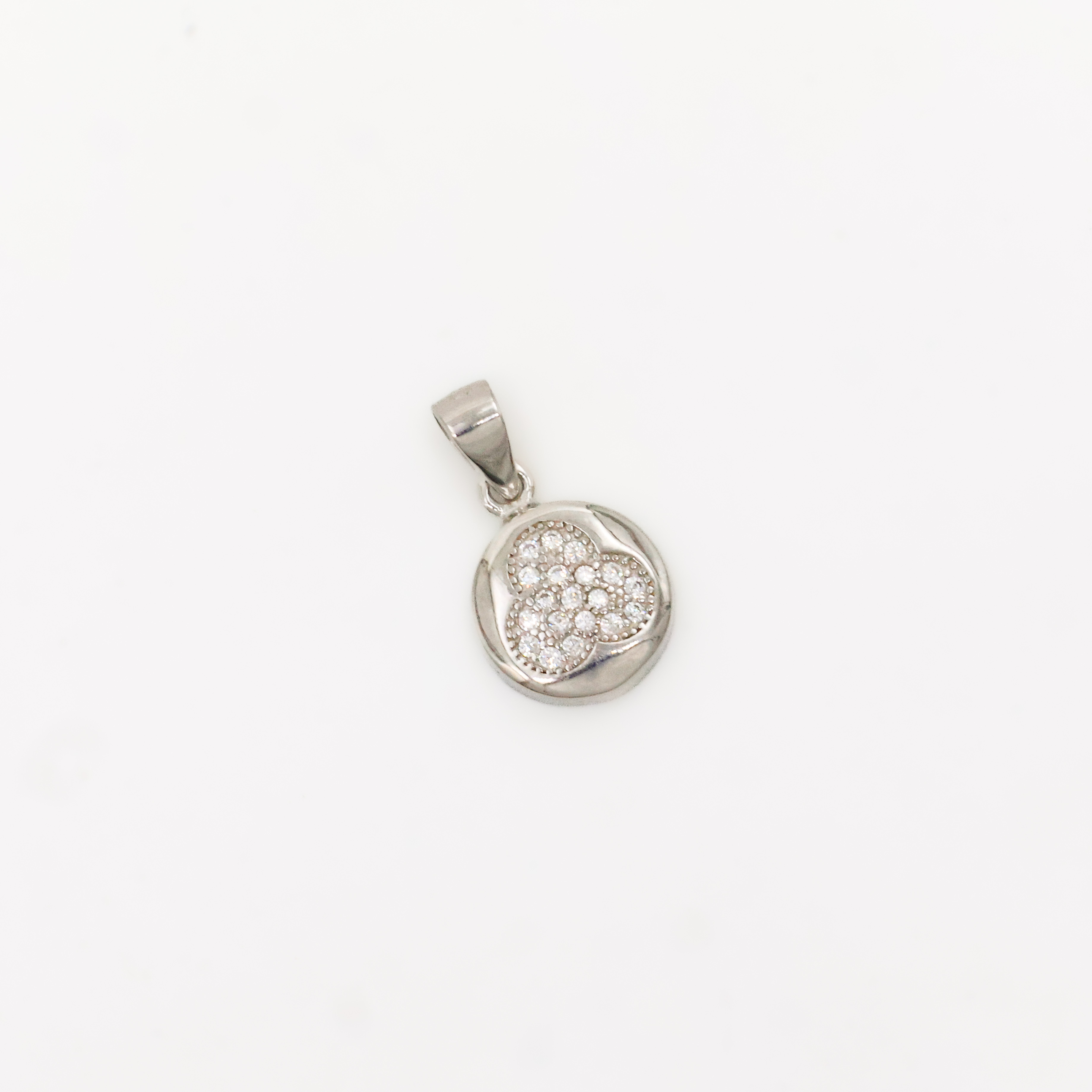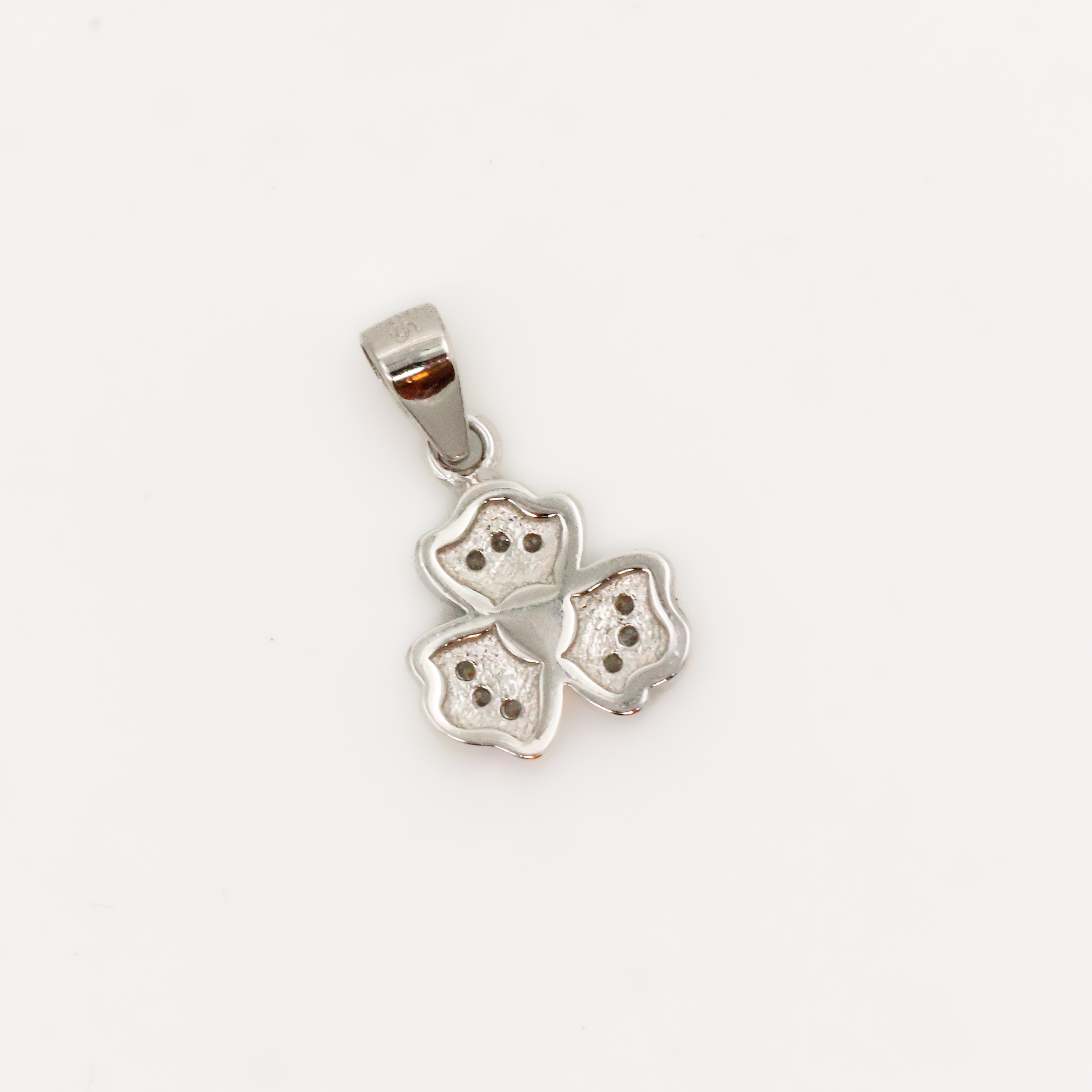 Elegant silver clover pendant with intricate detailing, perfect for everyday wear and special occasions. Buy silver clover pendant from Arham Gold in Hyderabad.