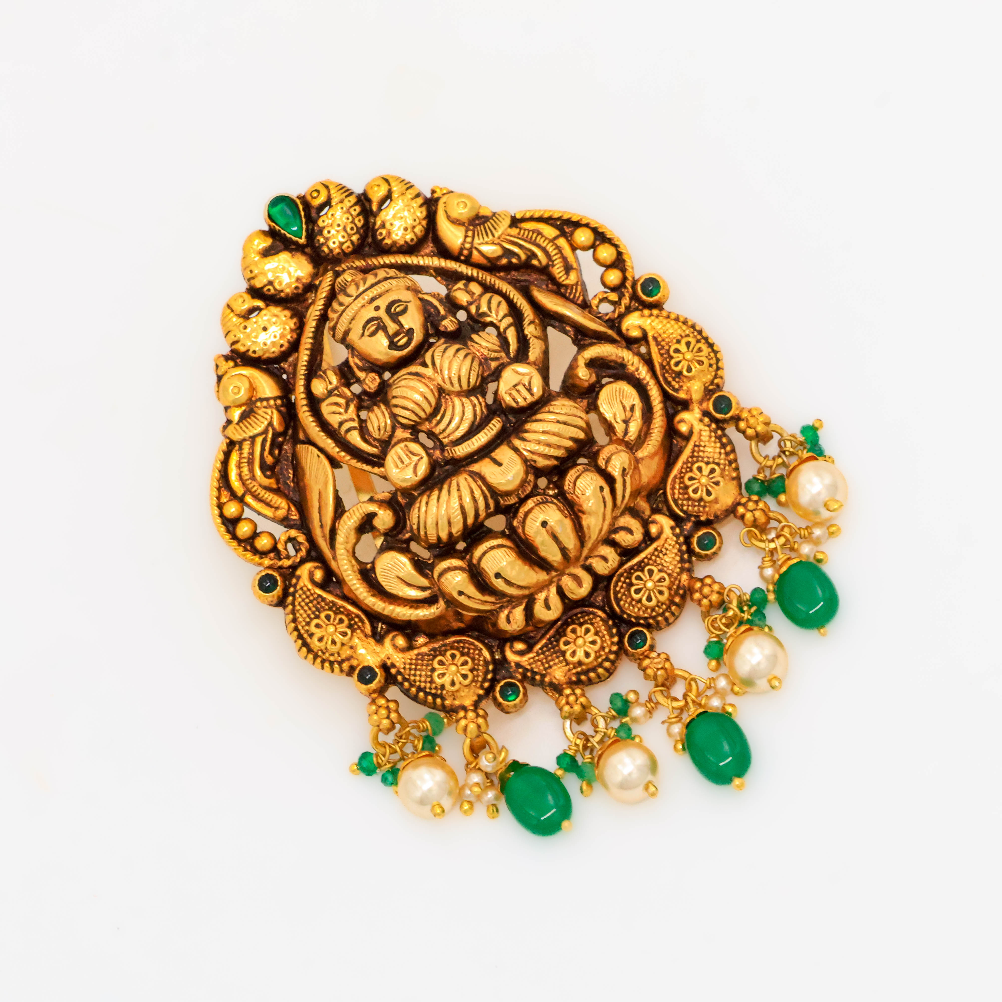 Elegant gold Lakshmi pendant featuring intricate detailing, perfect for traditional occasions. Buy gold Lakshmi pendant from Arham Jewellery in Hyderabad.