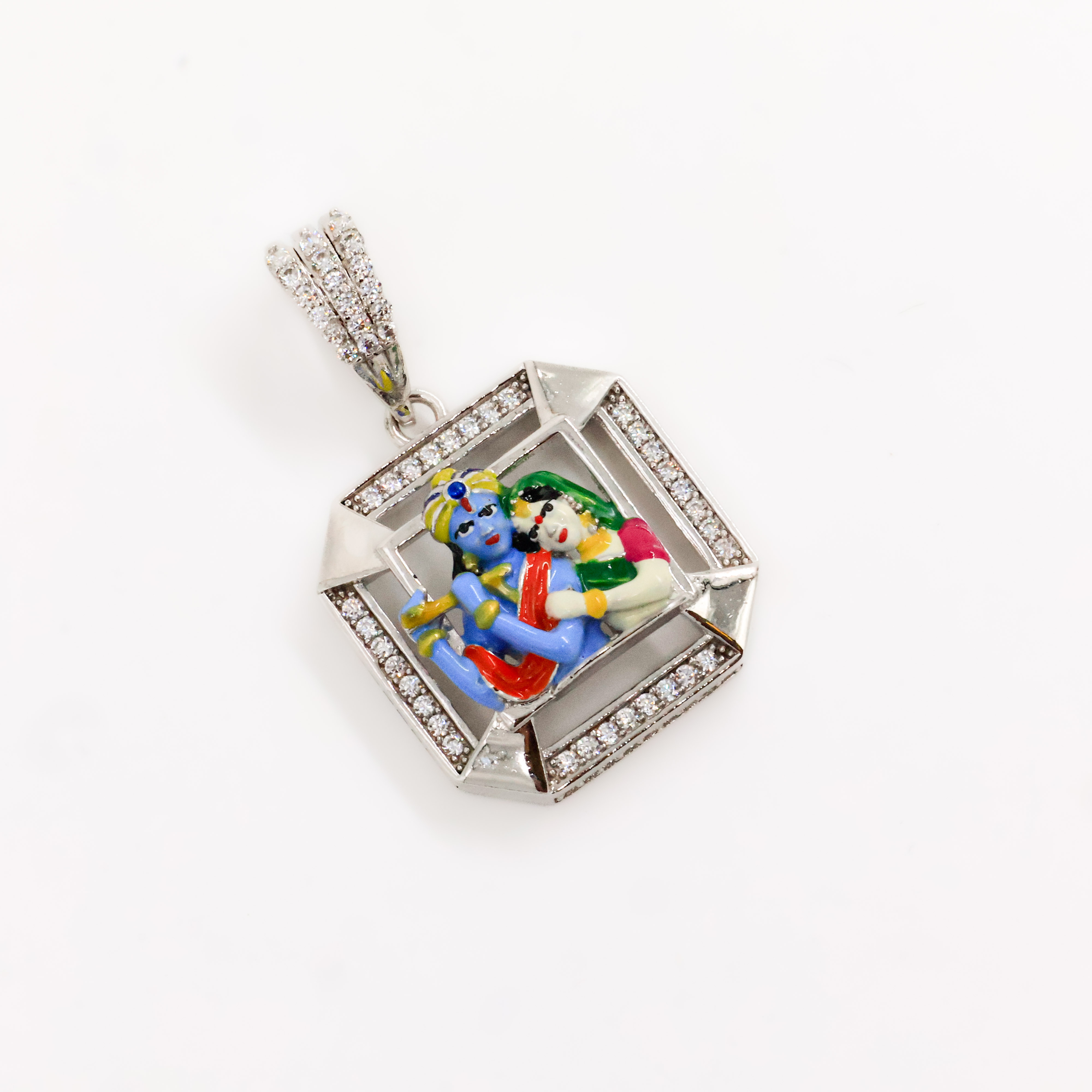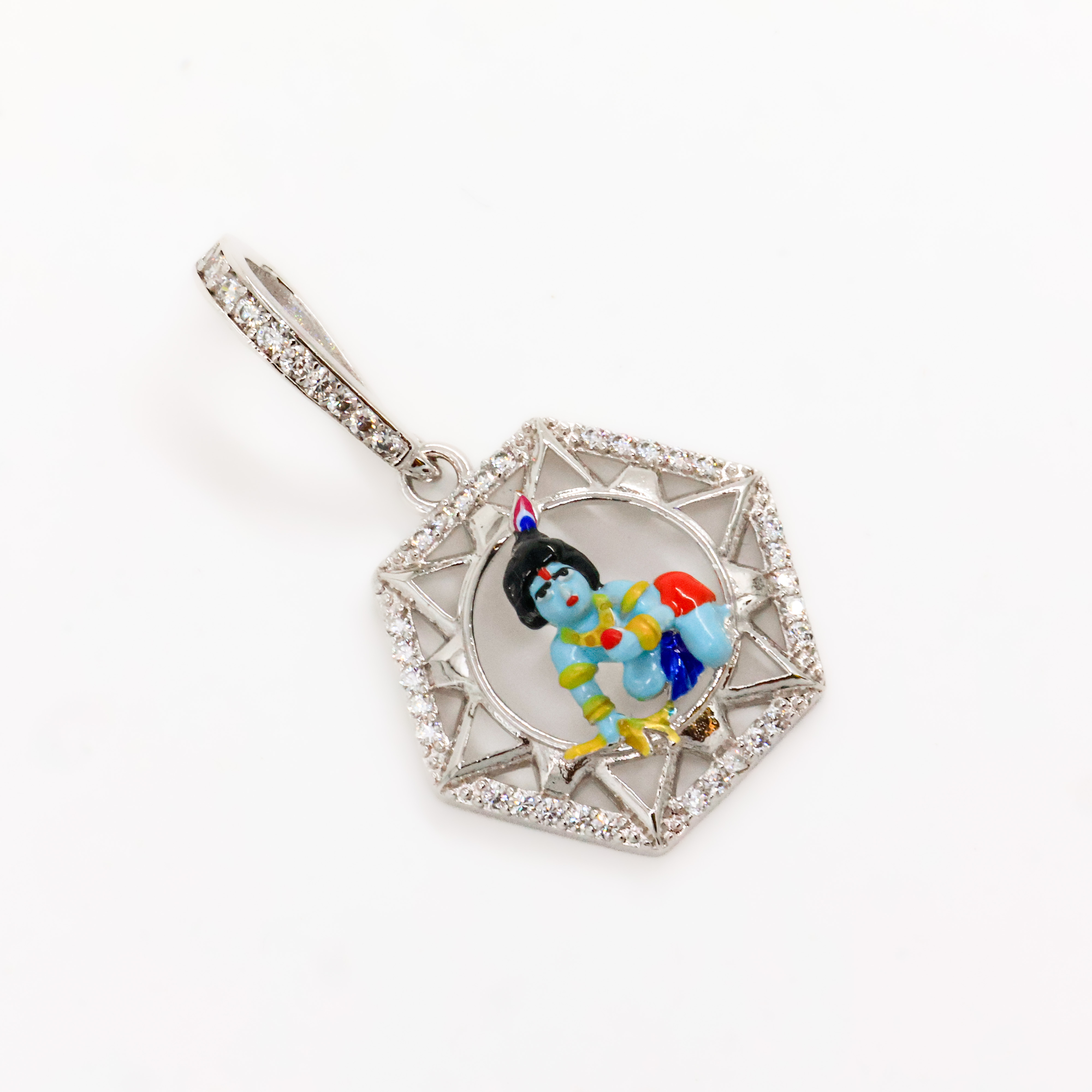 Elegant silver god locket with intricate detailing, perfect for daily wear and spiritual occasions. Buy silver god locket from Arham Gold in Hyderabad.