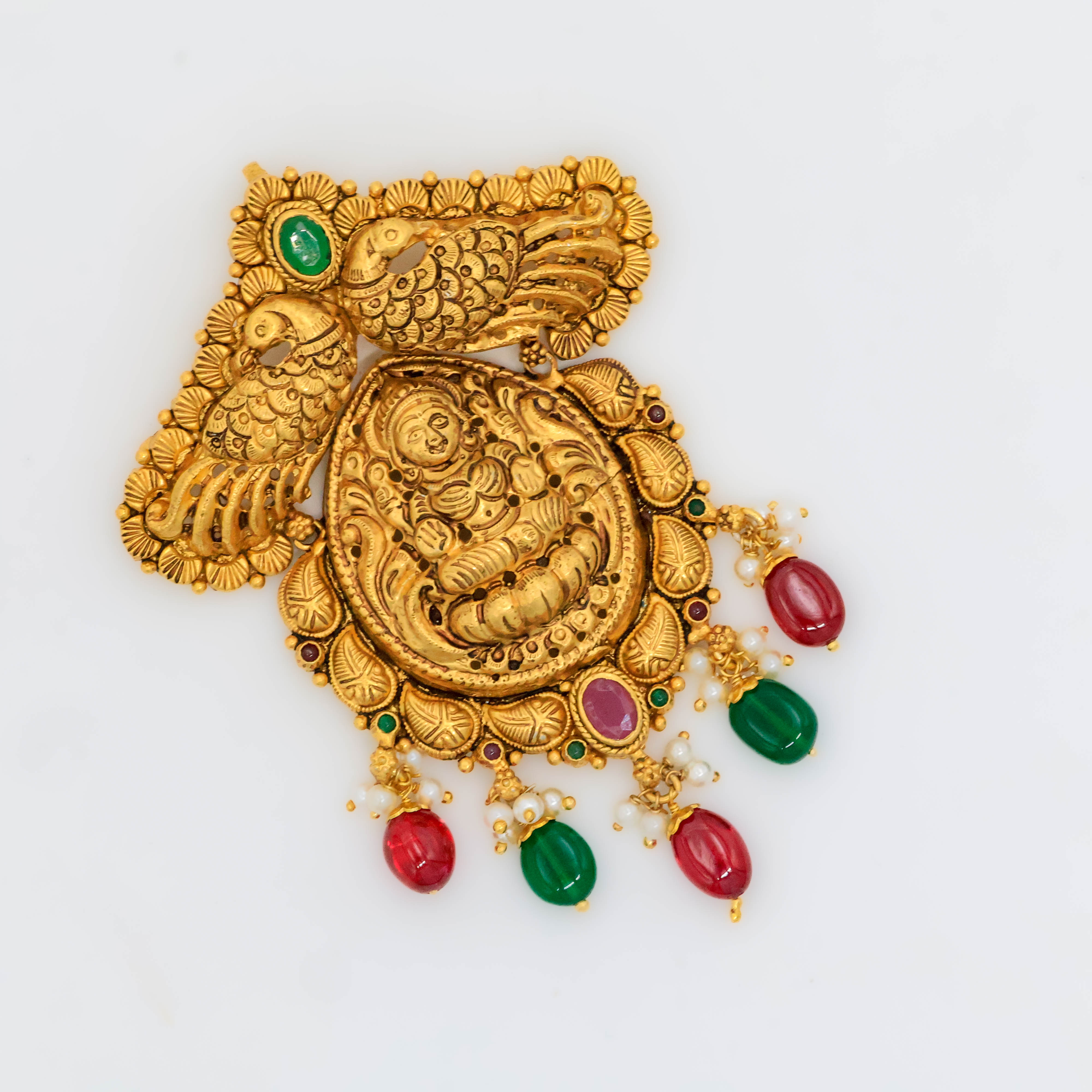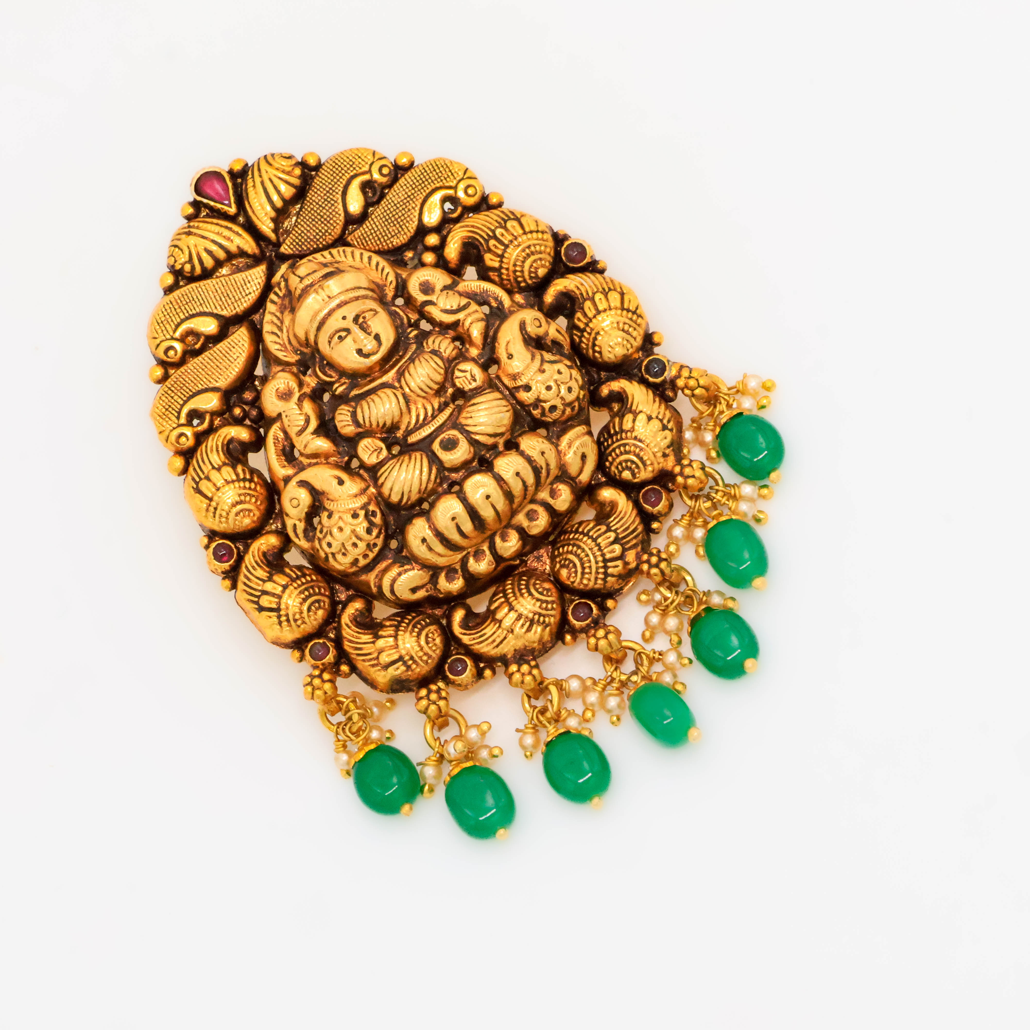 Elegant gold Lakshmi pendant featuring intricate details, perfect for traditional occasions. Buy Gold Lakshmi Pendant from Arham Jewellery in Hyderabad.