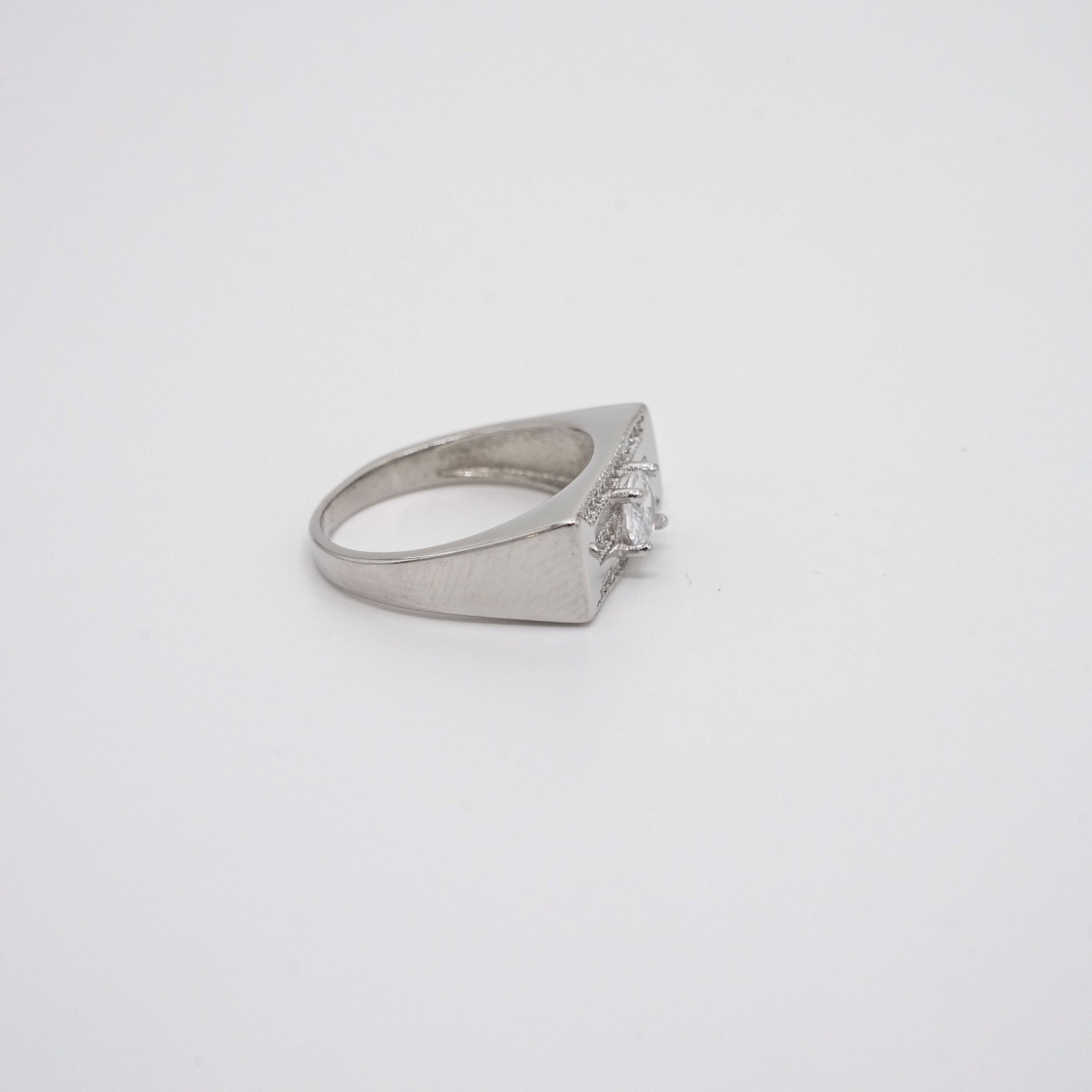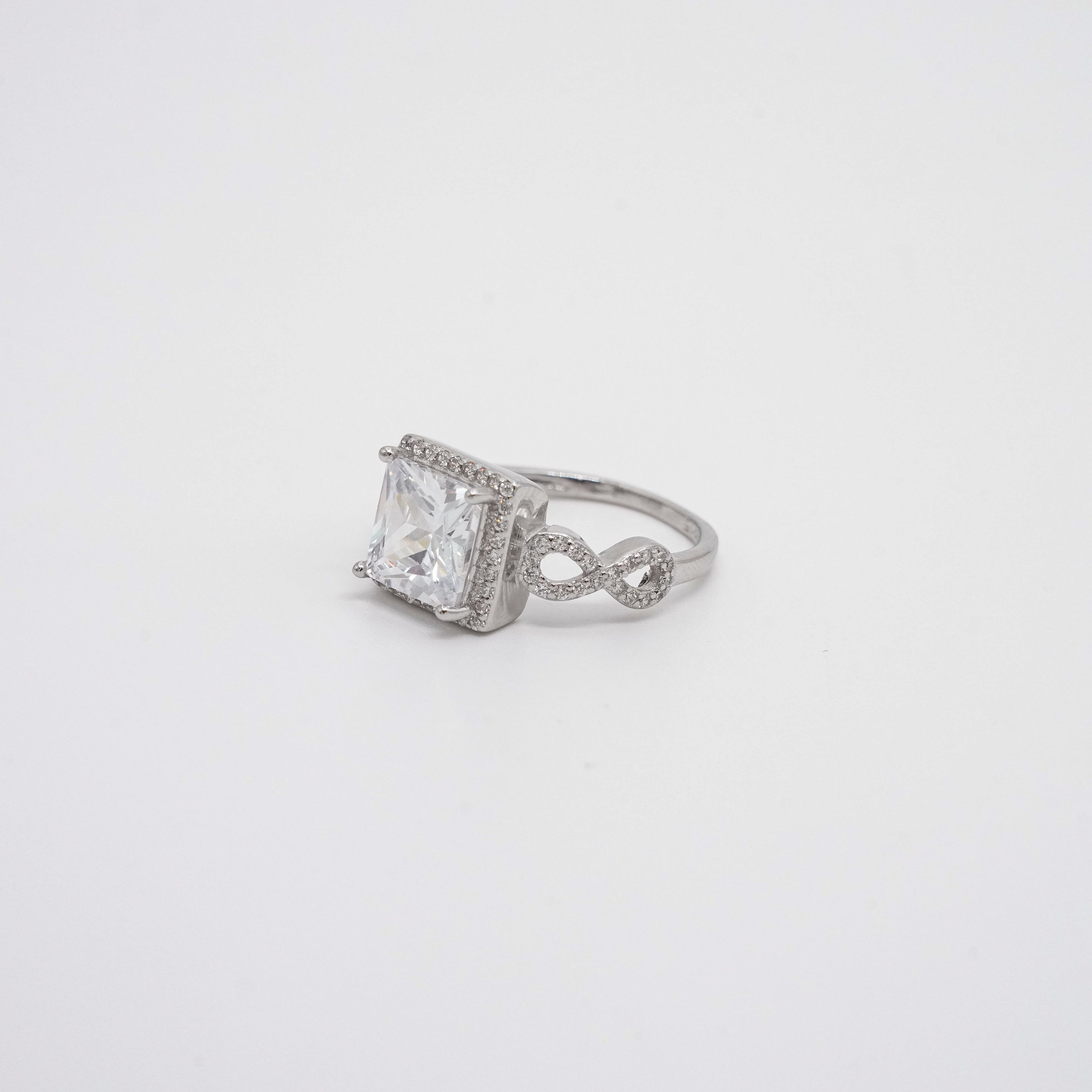 Sterling silver ring with square cubic zirconia stone, ideal for engagements and special occasions. Buy silver square ring from Arham Gold in Hyderabad.