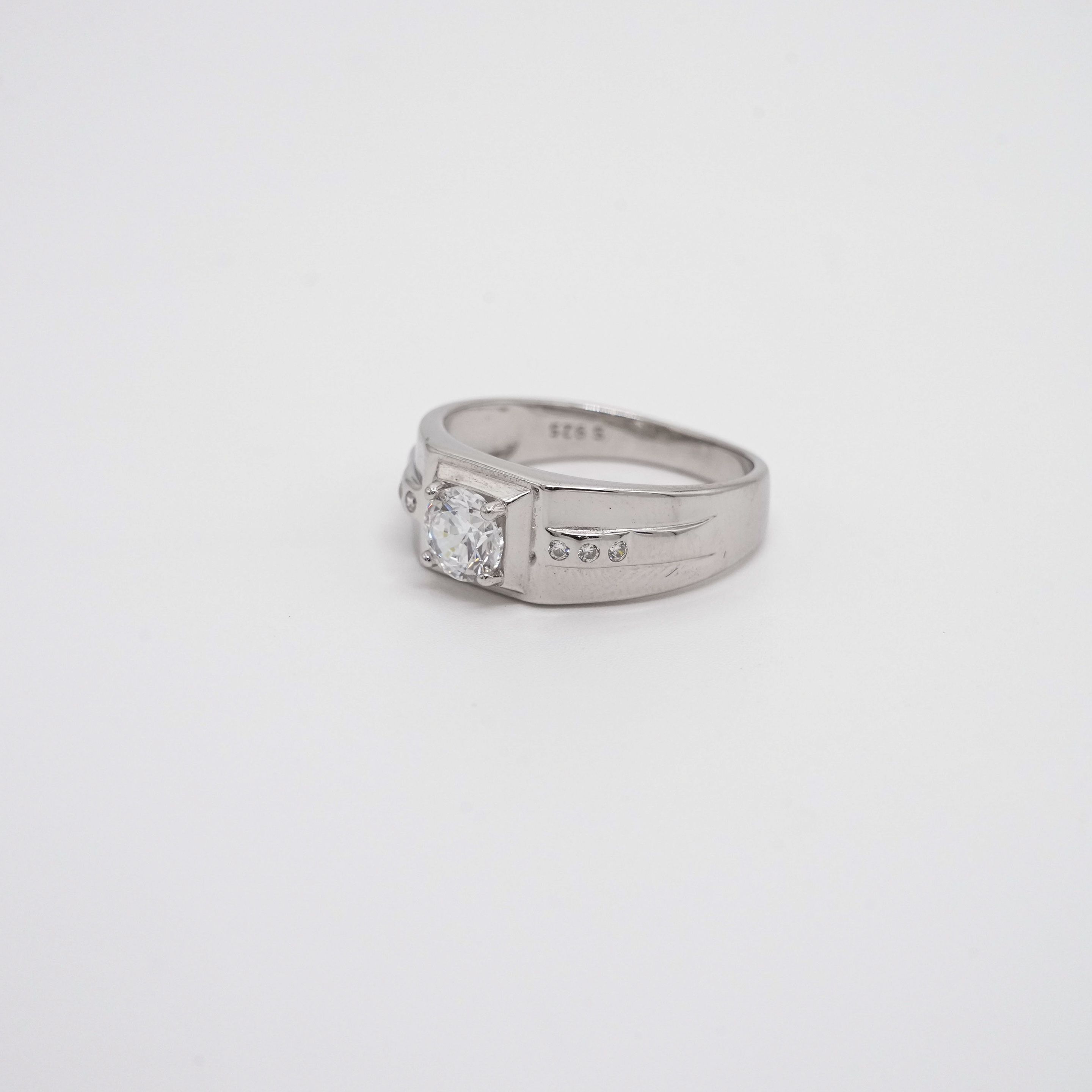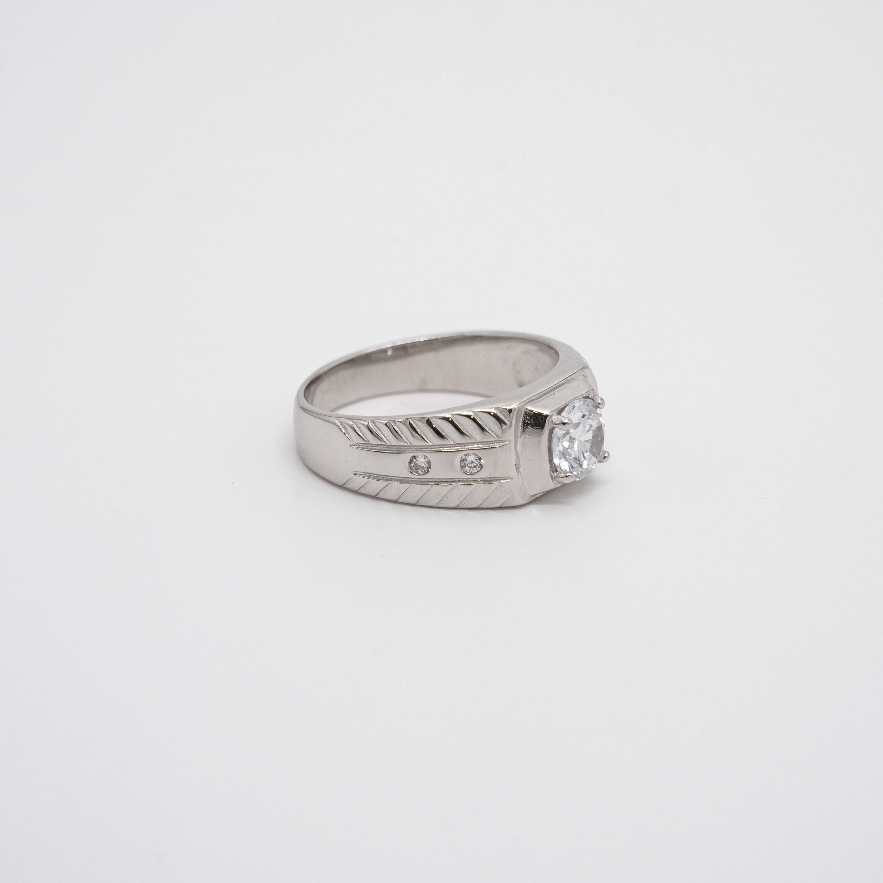 Elegant silver solitaire ring with a sparkling cubic zirconia stone, perfect for engagements and gifts. Buy silver solitaire ring from Arham Gold in Hyderabad.