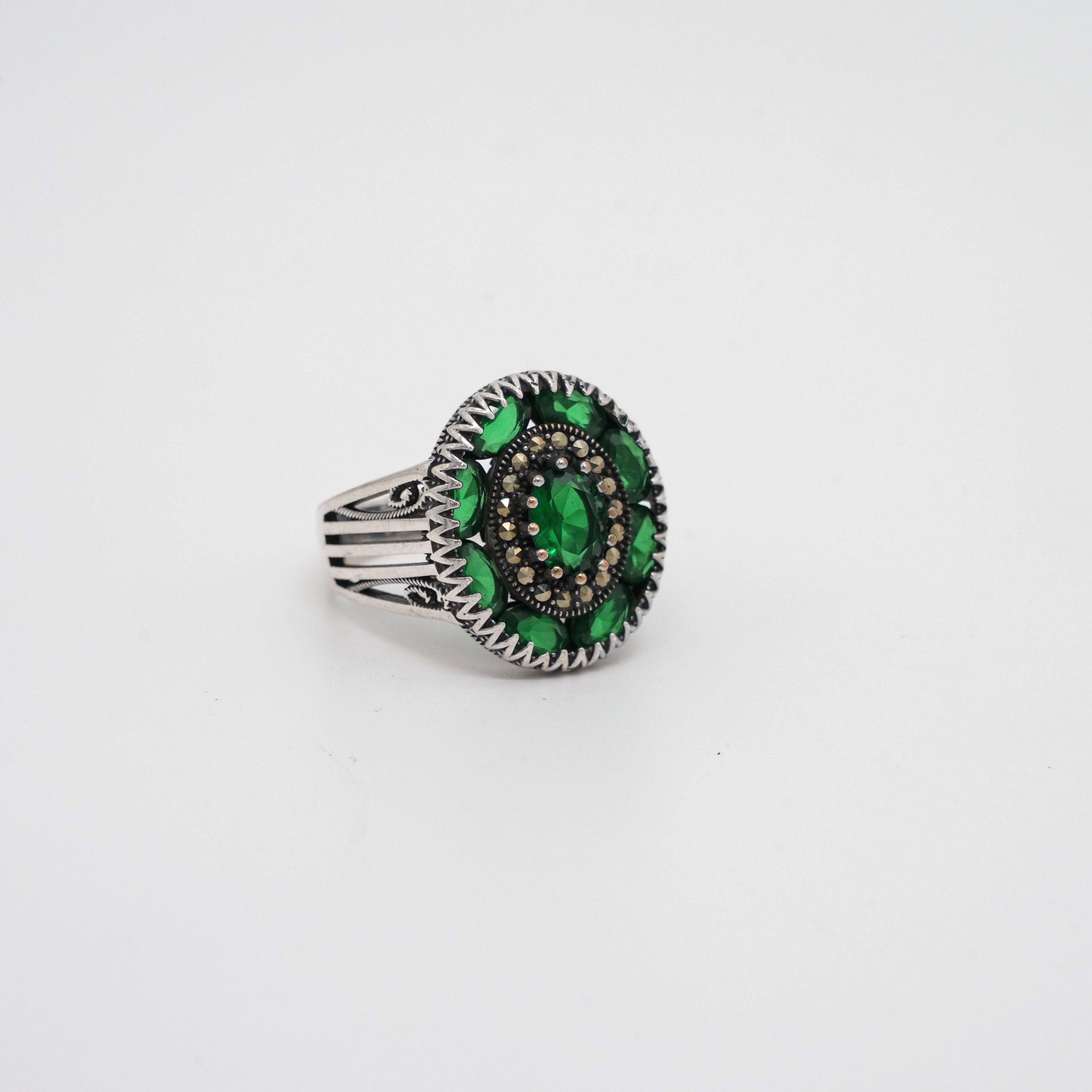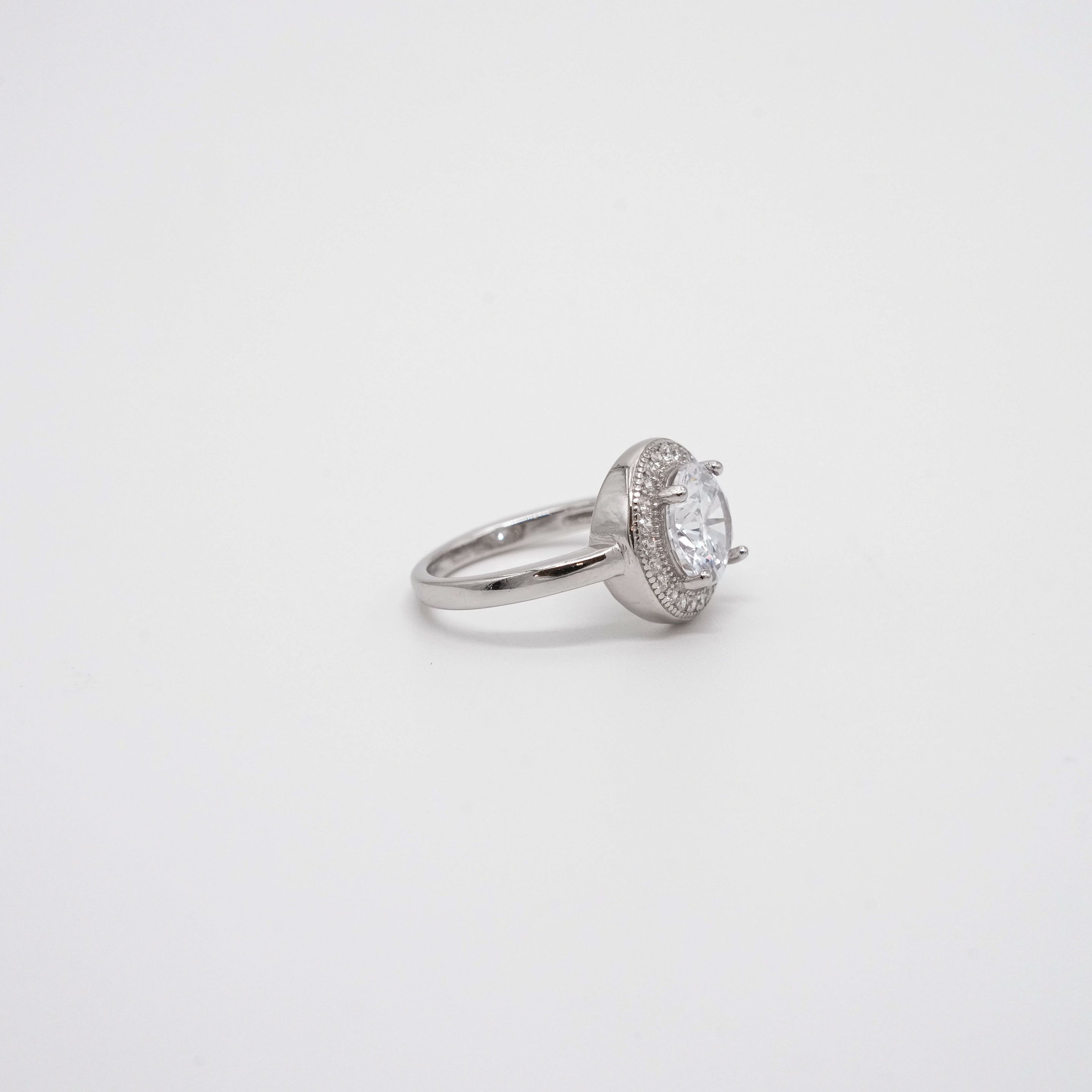 Sterling silver cluster ring with round-cut cubic zirconia stones, ideal for gifts and special occasions. Buy silver cluster ring from Arham Gold in Hyderabad.