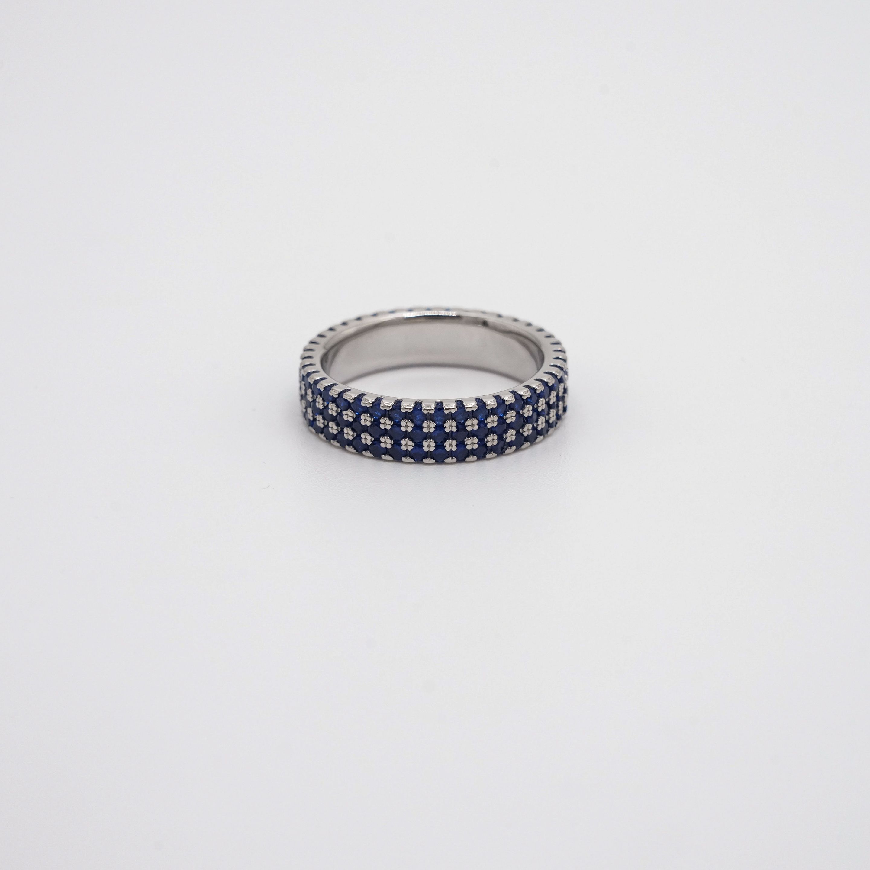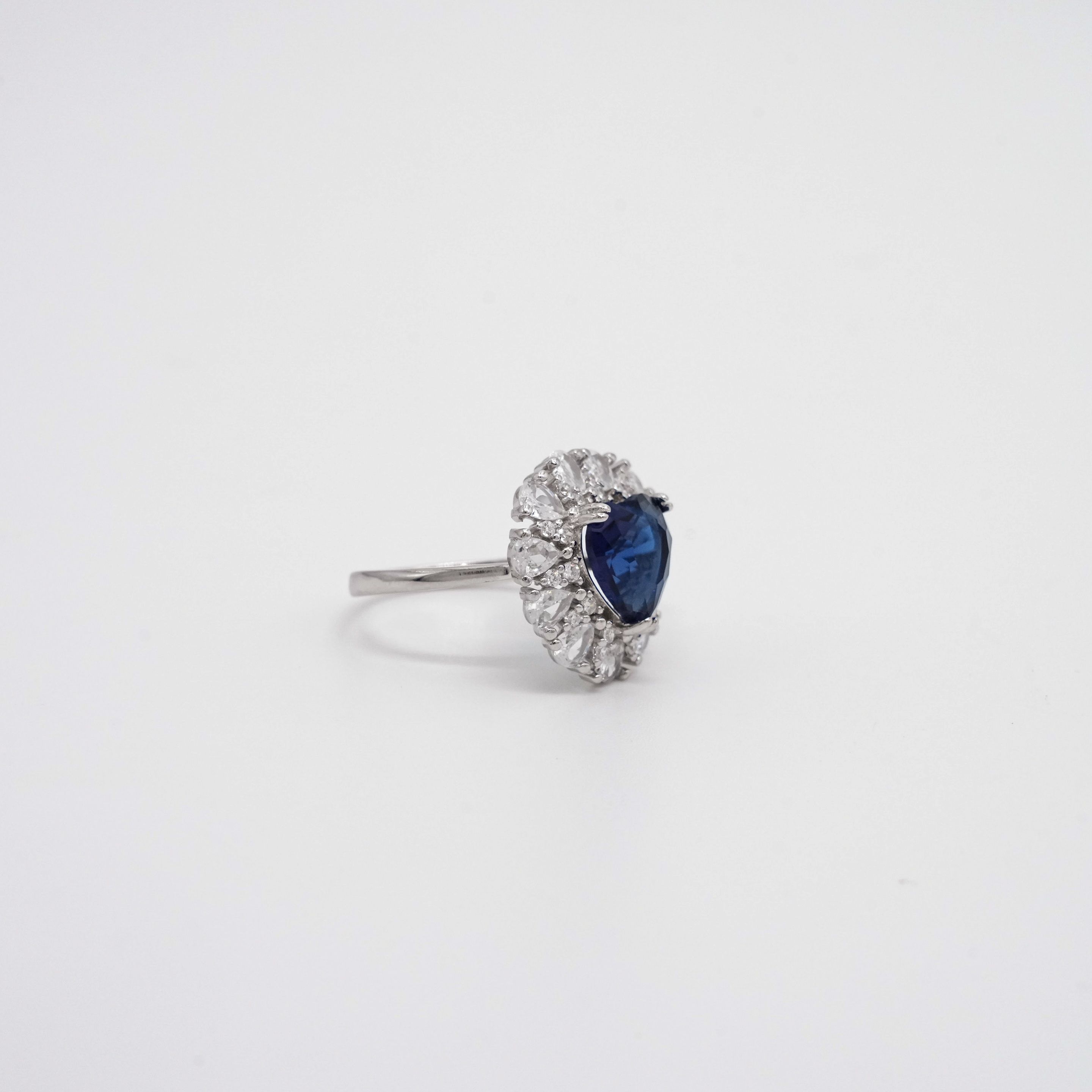 Sterling silver ring with deep blue gemstone and cubic zirconia accents, ideal for gifting. Buy silver gemstone ring from Arham Gold in Hyderabad.