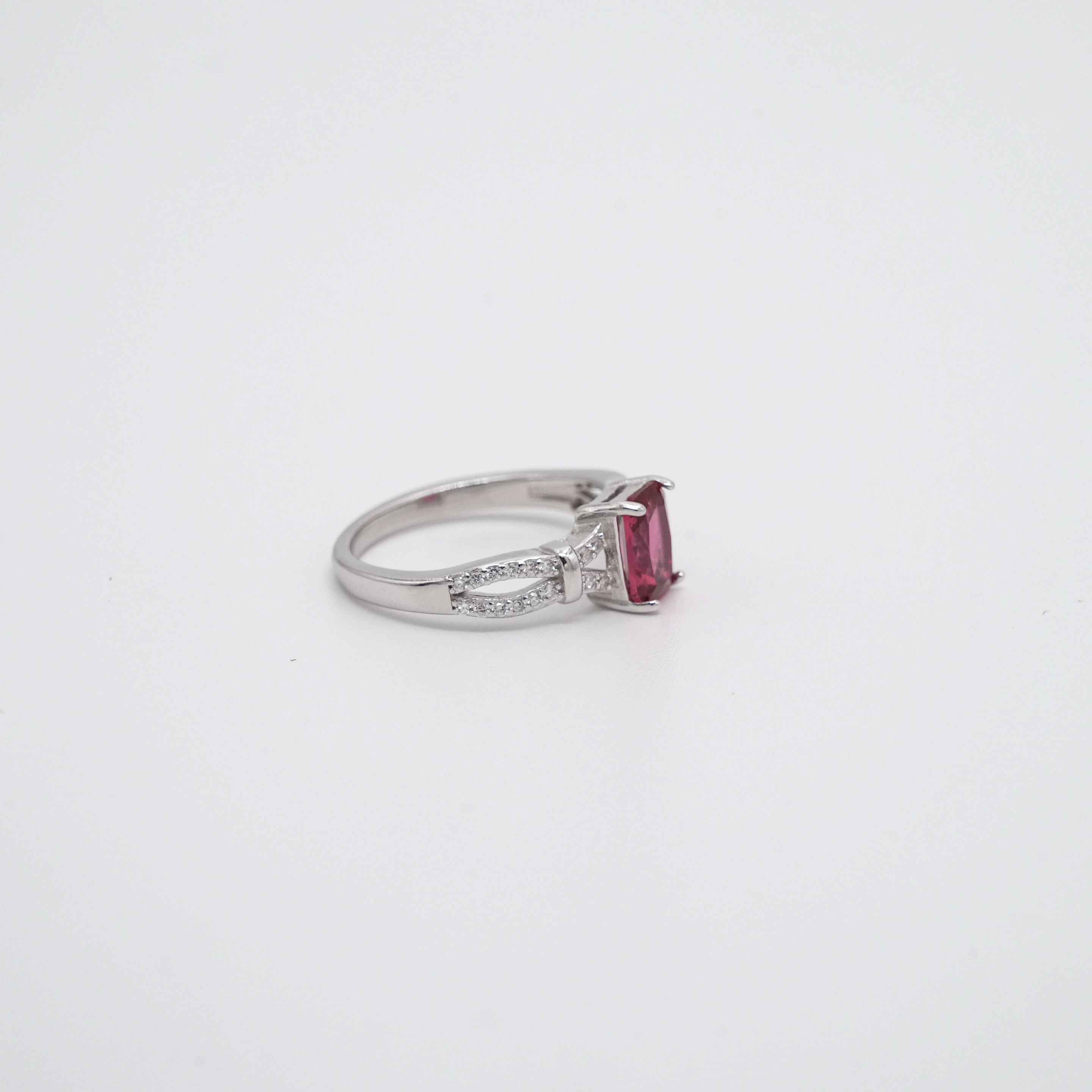 Elegant silver fashion ring with pink center stone and crystal accents. Perfect gift. Buy silver fashion ring from Arham Gold in Hyderabad.