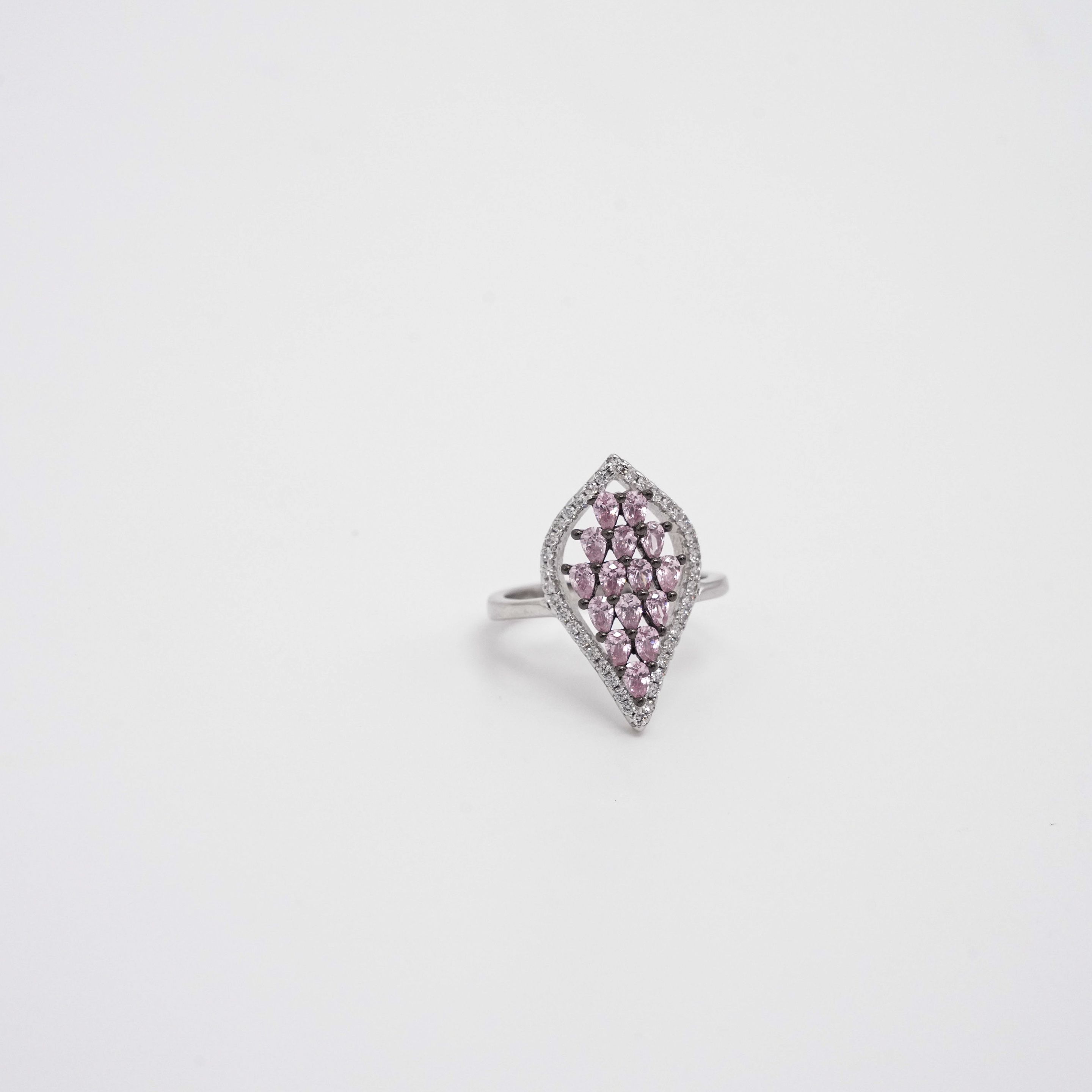 Sterling silver ring with pink stone embellishments. A stylish accessory for parties. Buy silver fashion ring from Arham Gold in Hyderabad.
