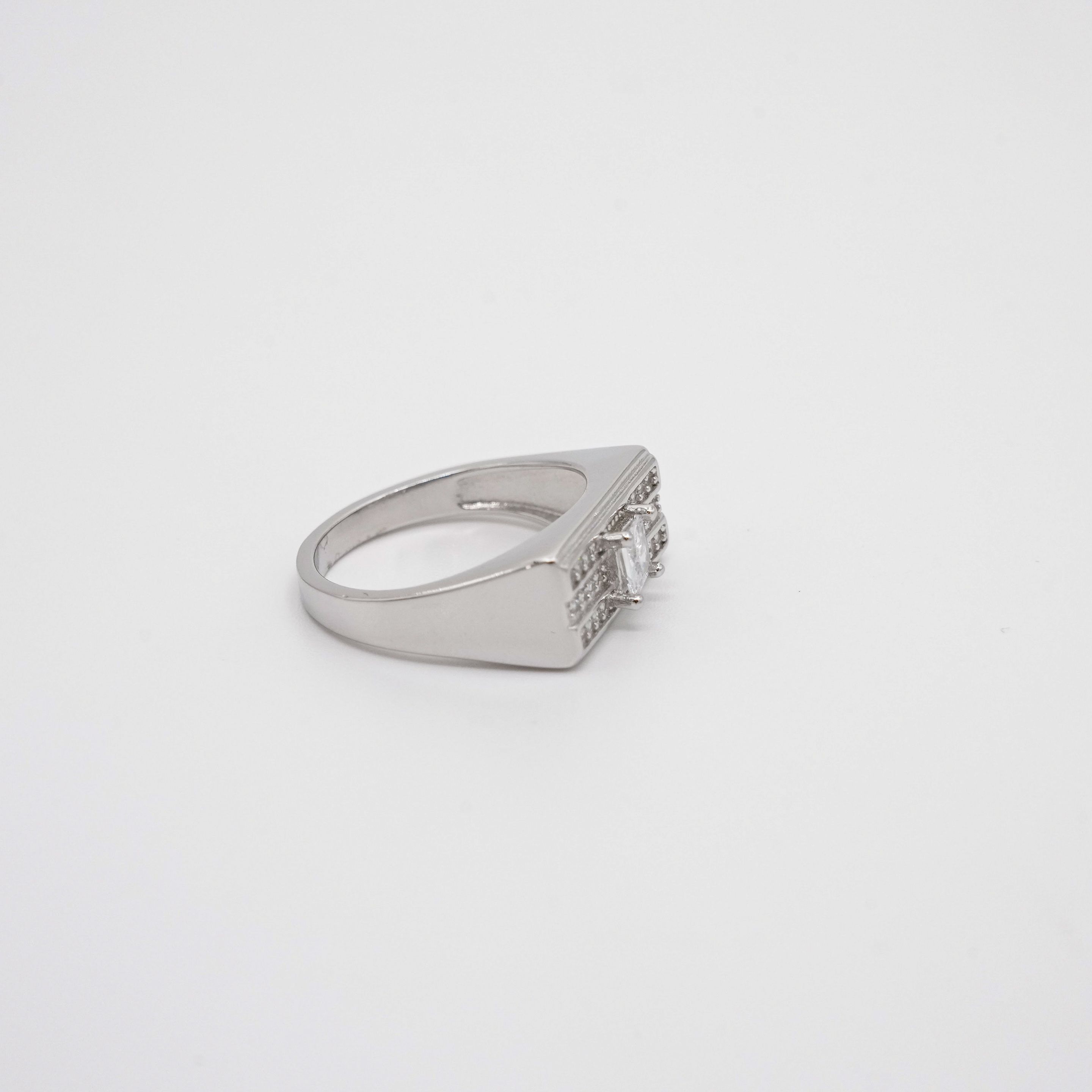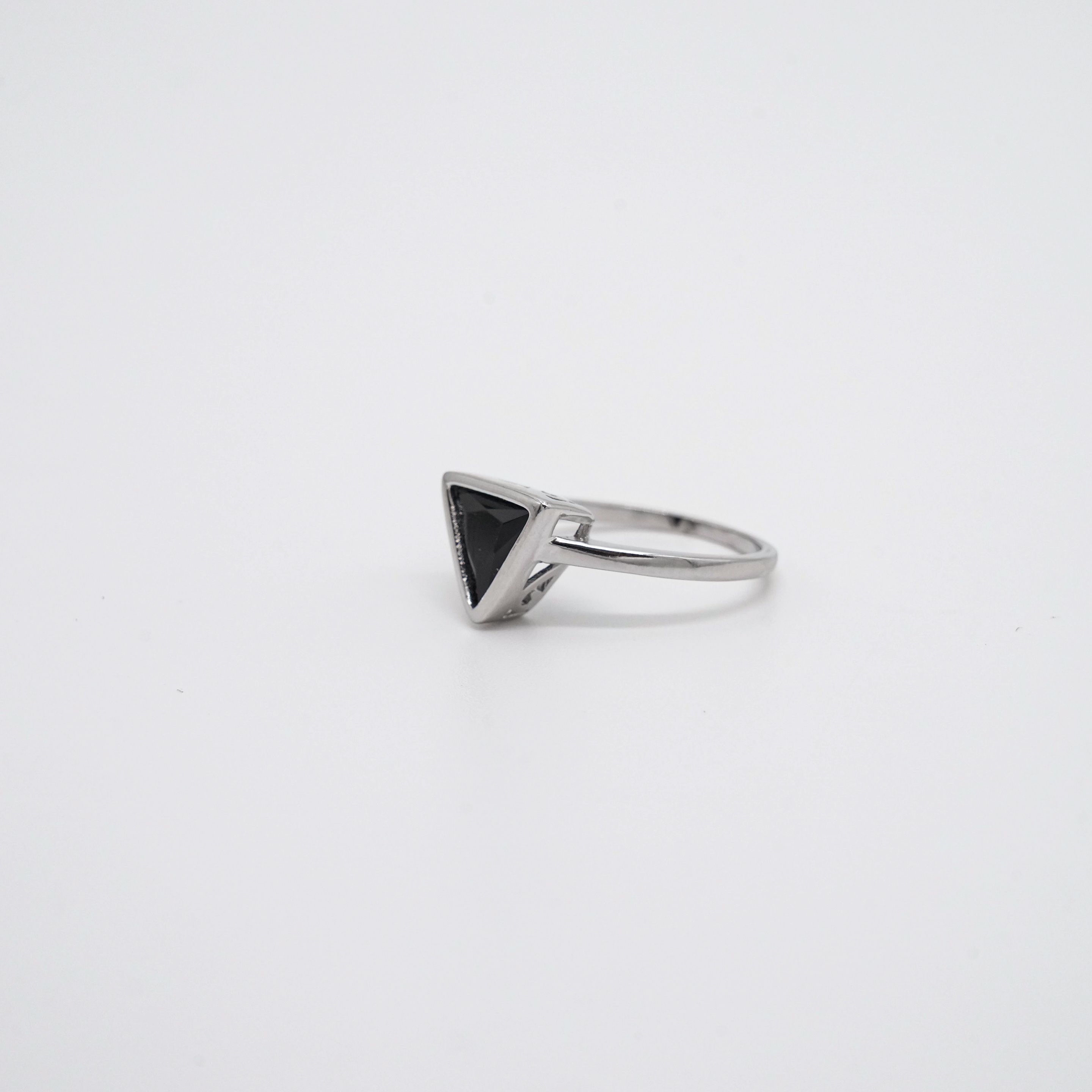 Sterling silver ring with triangle stone inlay design, ideal for everyday wear and stylish gifts. Buy silver triangle ring from Arham Gold in Hyderabad.