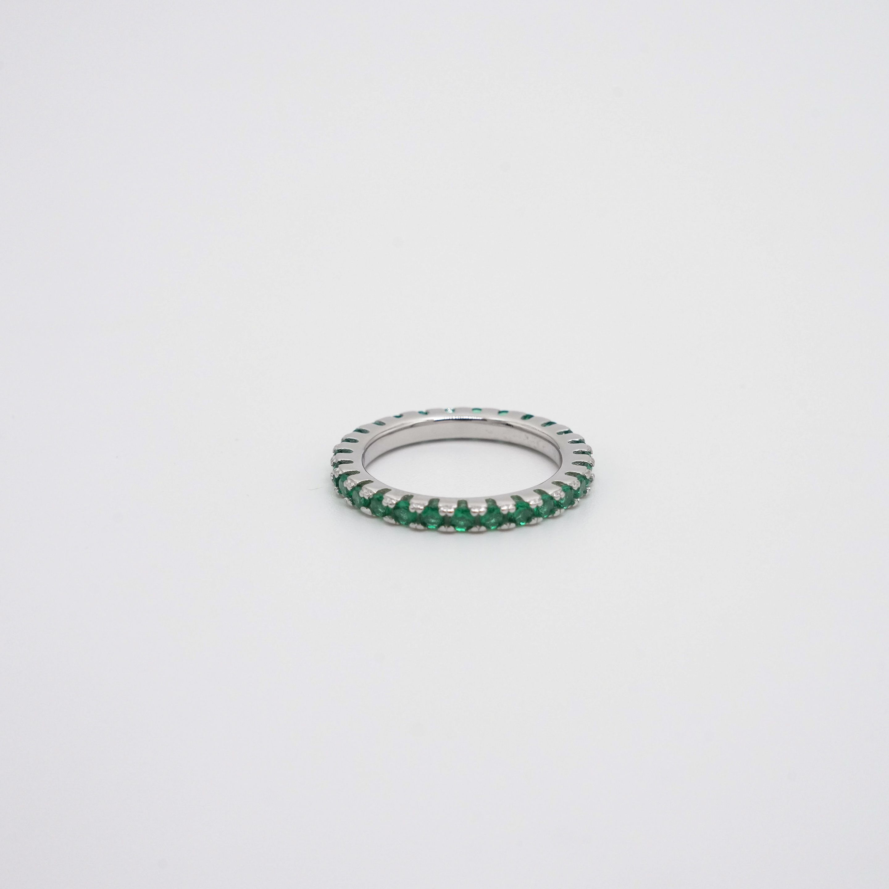 Elegant silver eternity ring with green stones, perfect for everyday wear and special occasions. Buy silver eternity ring from Arham Gold in Hyderabad.