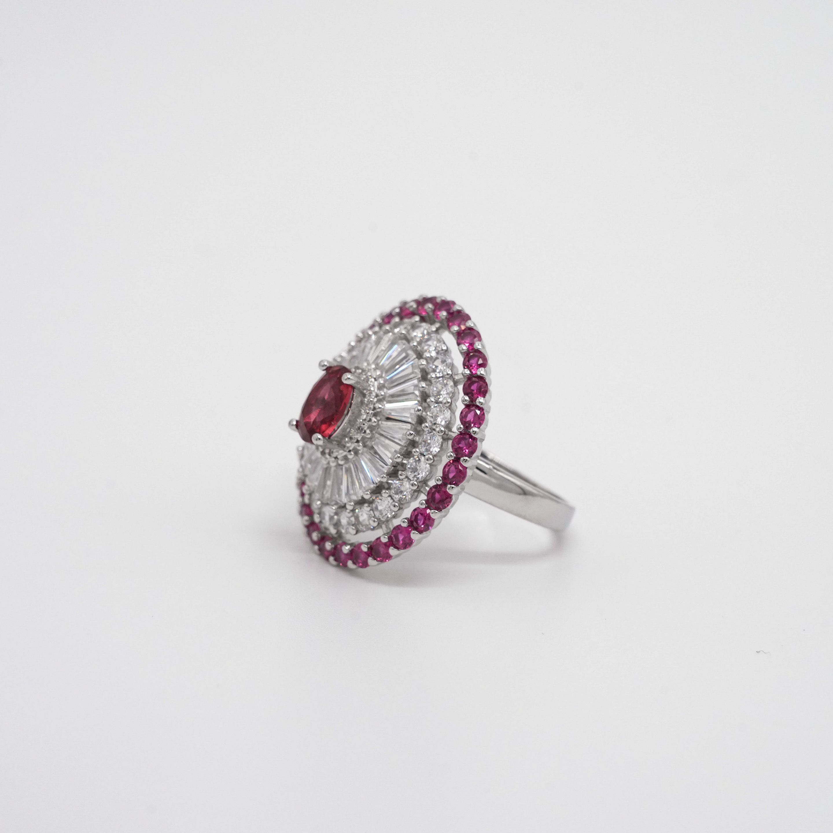 Sterling silver cluster ring with floral design, perfect for everyday wear and special occasions. Buy silver cluster ring from Arham Gold in Hyderabad.