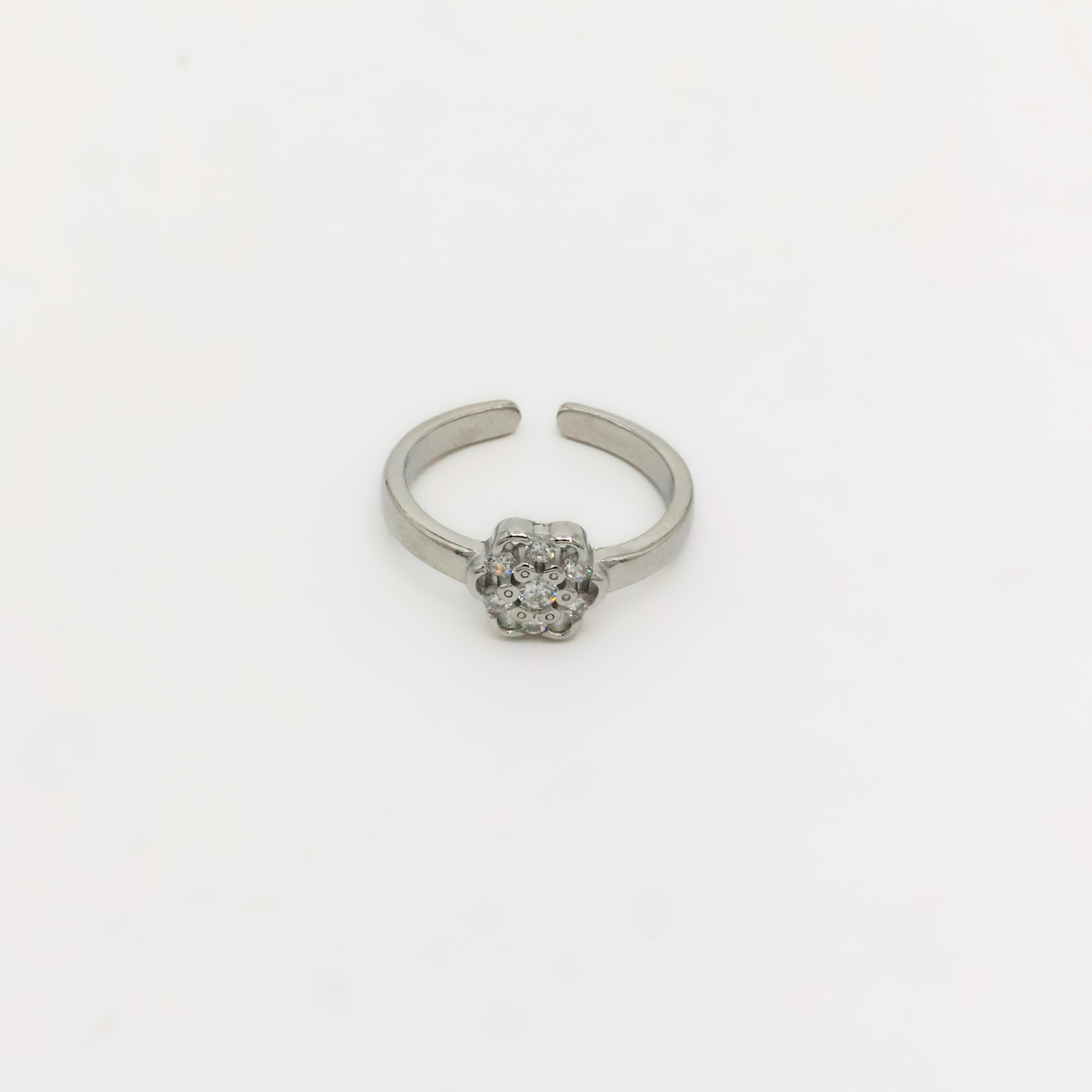 Adjustable silver toe ring with a square cubic zirconia stone, perfect for everyday wear. Buy silver toe ring from Arham Silver Palace in Hyderabad.