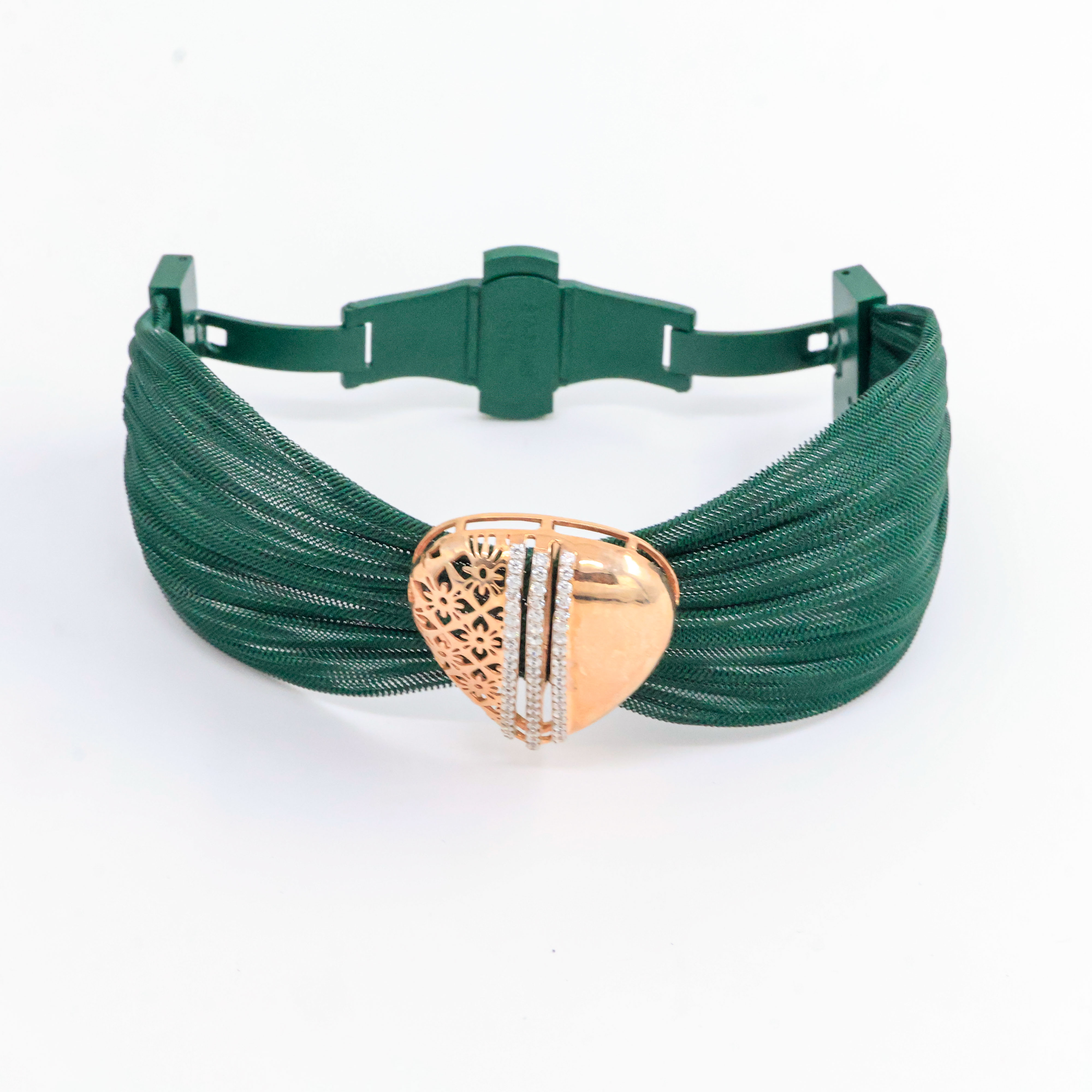 Green textured silver bow bracelet with heart design, perfect for casual wear and special occasions. Buy silver bow bracelet from Arham Gold in Hyderabad.
