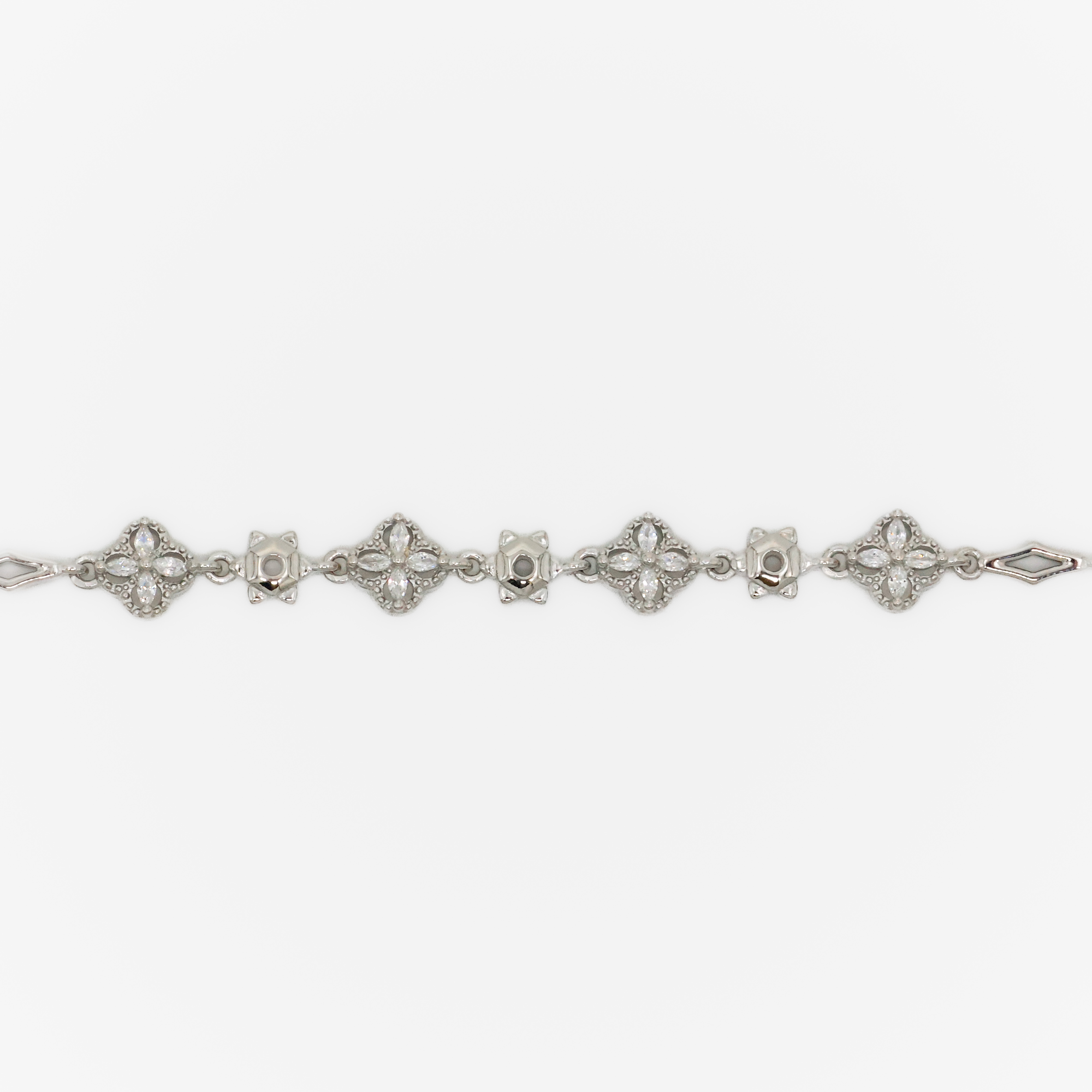 Elegant silver flower bracelet with cubic zirconia stones, perfect for everyday wear and special occasions. Buy silver flower bracelet from Arham Silver Palace in Hyderabad.