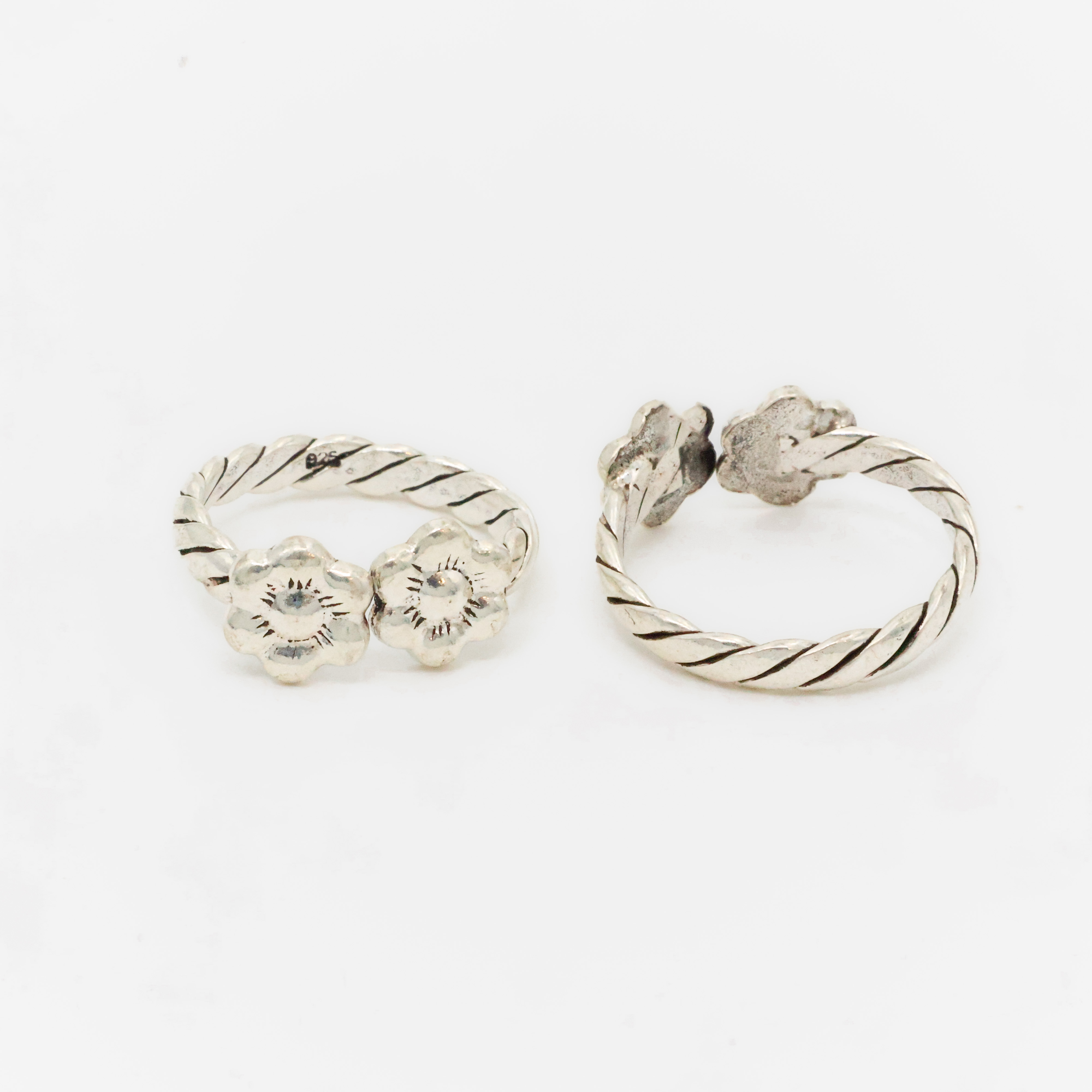Elegant silver floral earrings with stone accents, perfect for everyday wear or special events. Buy silver floral earrings from Arham Gold in Hyderabad.