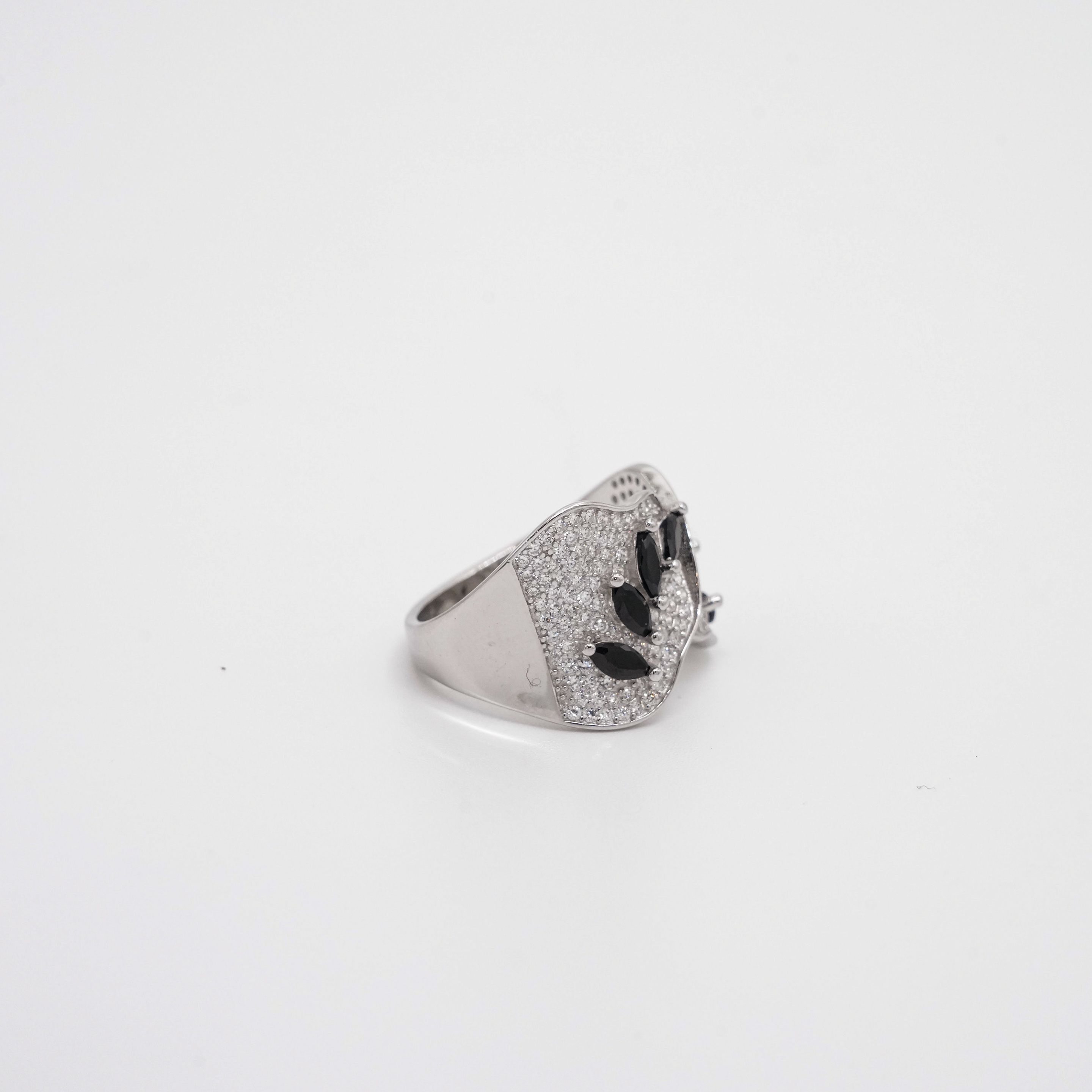 Elegant silver ring with baguette-cut cubic zirconia stones, perfect for everyday wear and special occasions. Buy silver fashion ring from Arham Gold in Hyderabad.