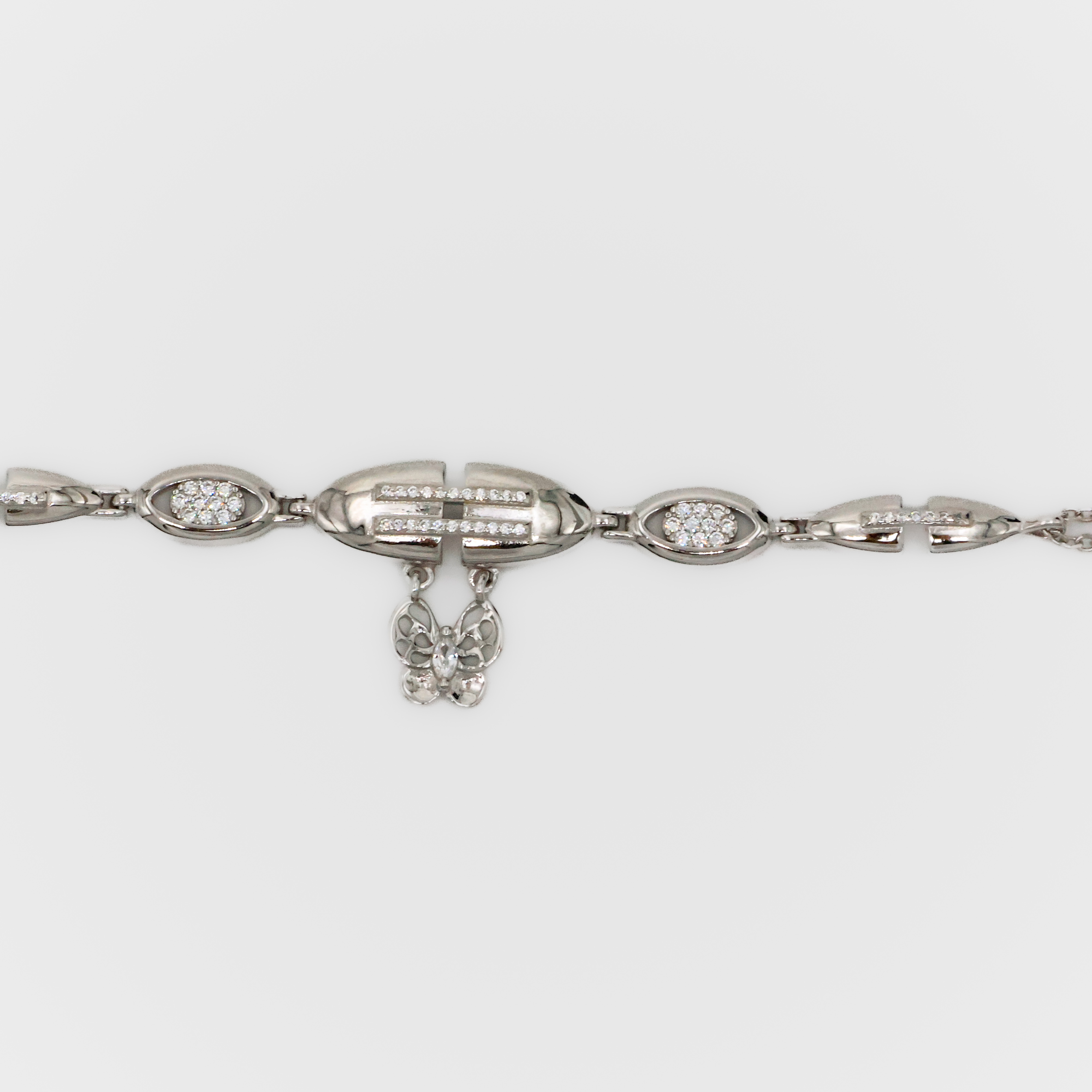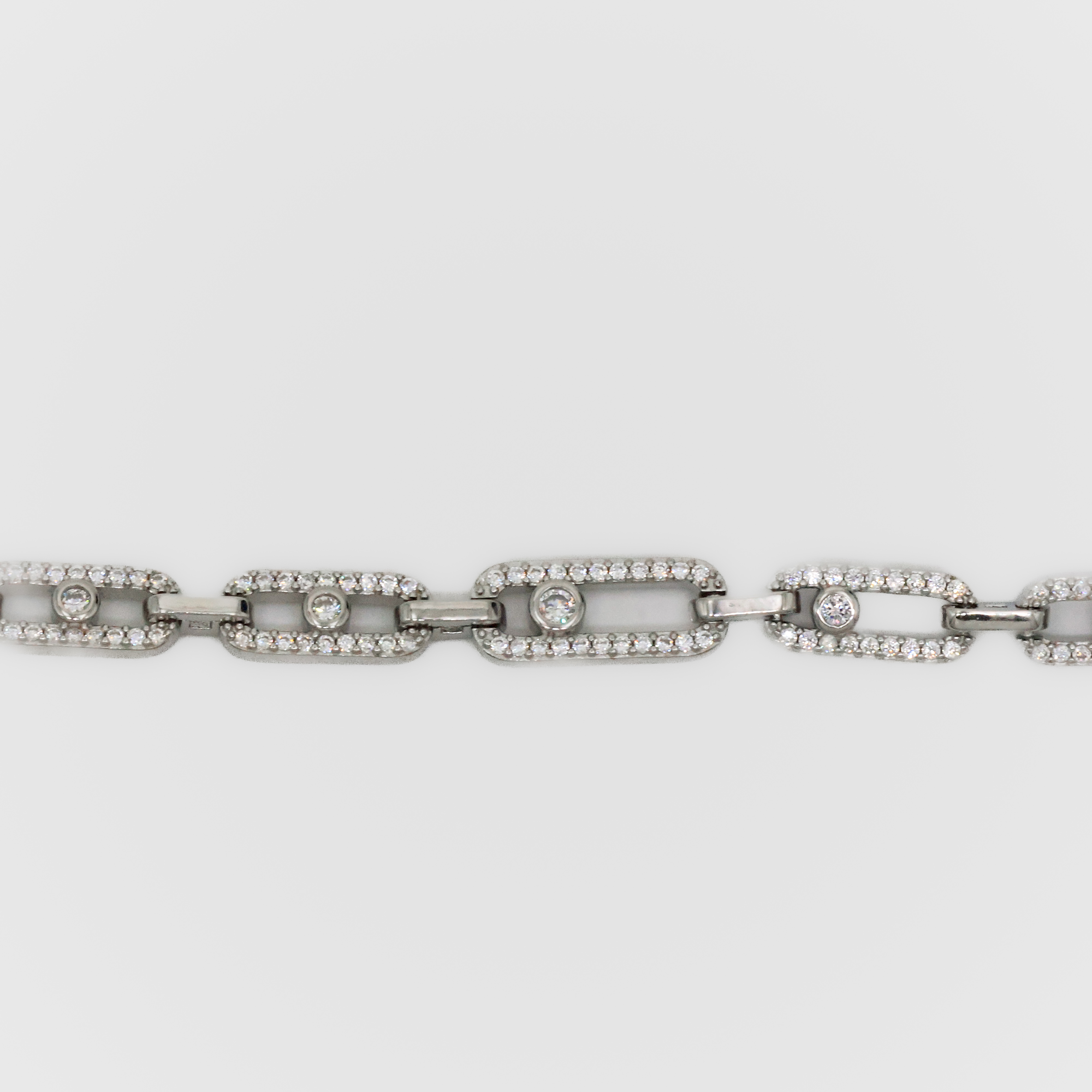 Elegant silver link bracelet adorned with sparkling stones, a perfect addition to any outfit. Buy silver link bracelet from Arham Silver Palace in Hyderabad.