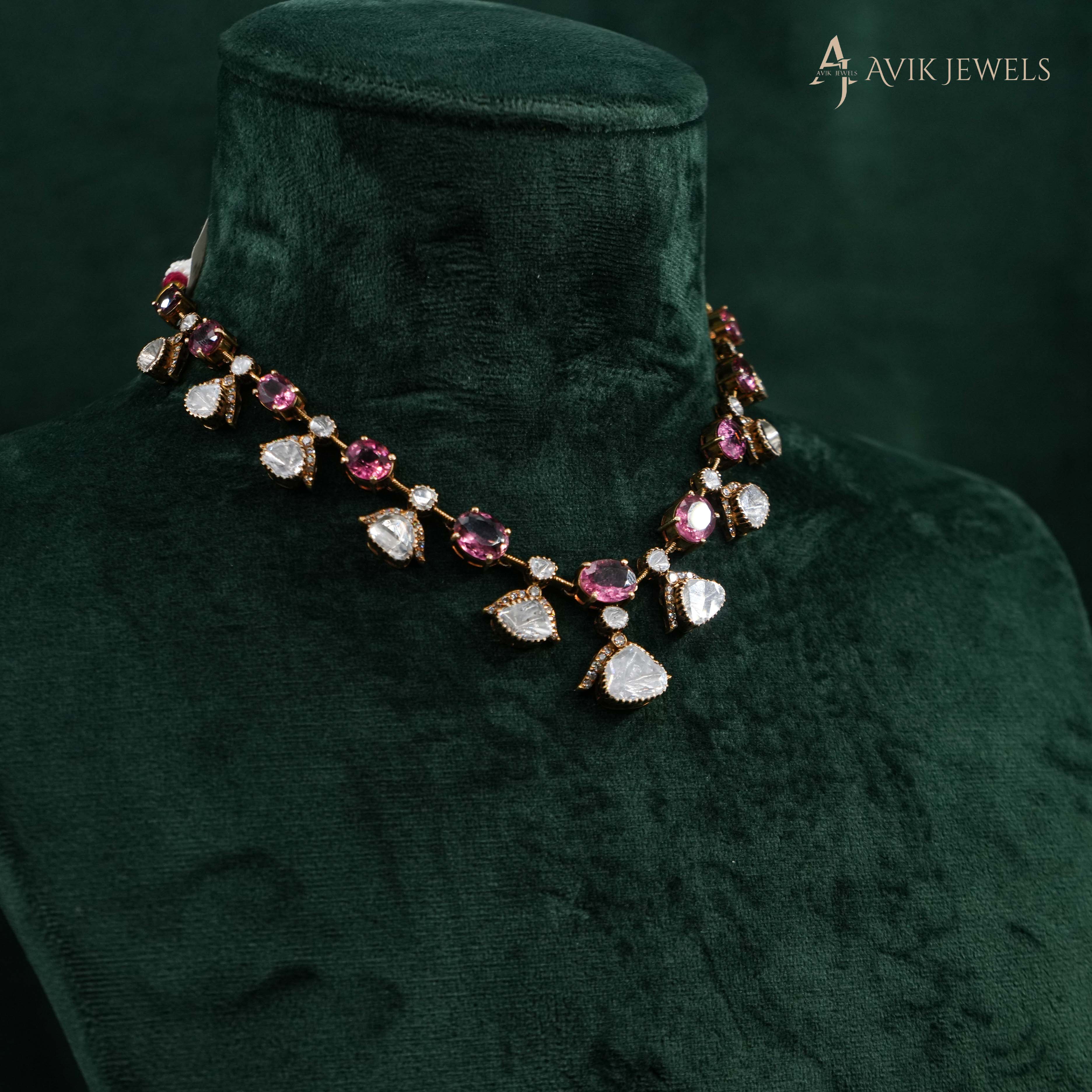 Stunning polki necklace set with intricate detailing, perfect for weddings and special occasions. Buy Polki Necklace Set from Avik Jewels in Hyderabad.