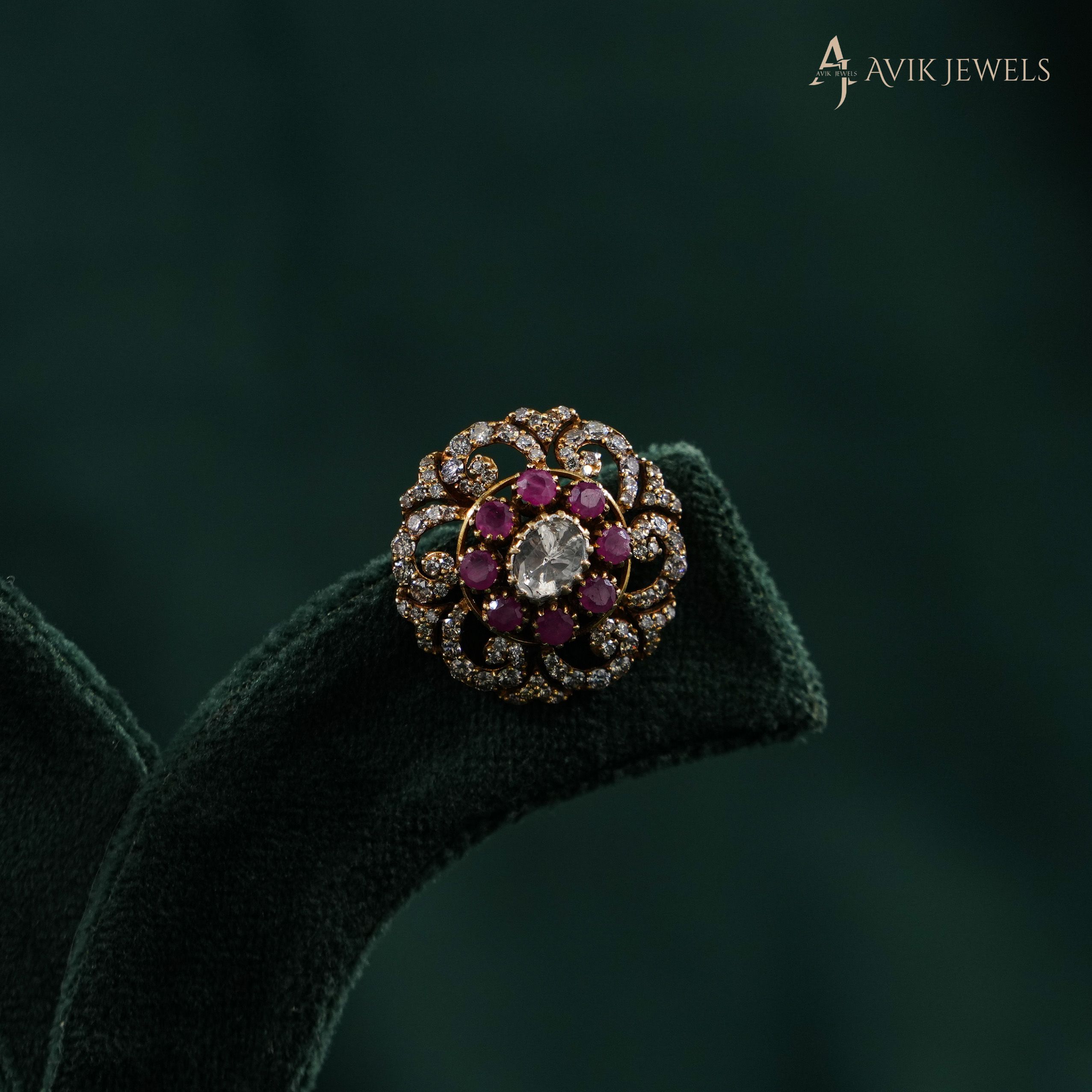 Elegant ruby gold bracelet with intricate detailing, perfect for special occasions and celebrations. Buy ruby gold bracelet from Avik Jewels in Hyderabad.