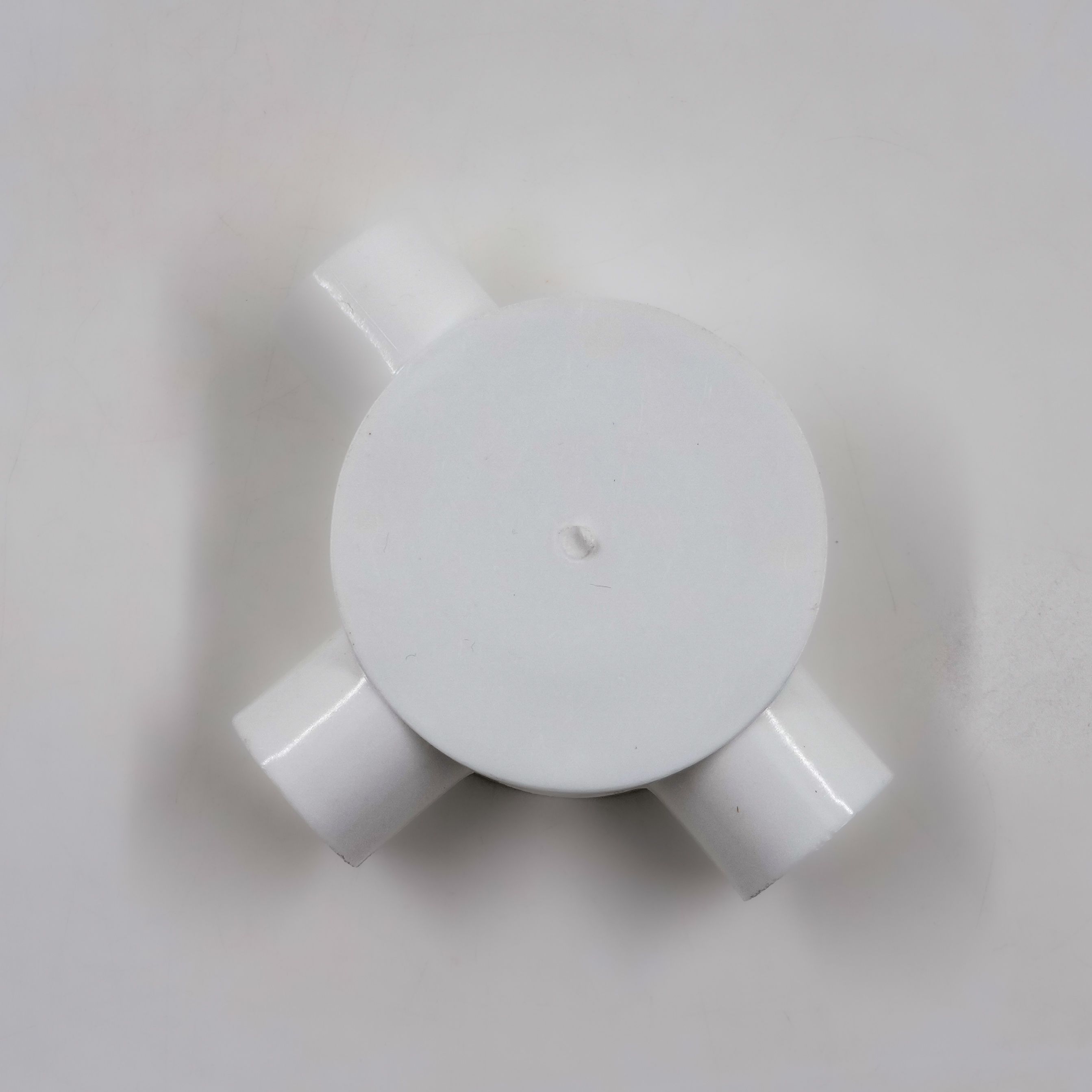 20MM 4 Way PVC conduit junction box in WHITE colour, high-quality, durable,easy installation, strong insulation, weatherproof, ideal for safe electrical wiring connections in residential and commercial applications projects