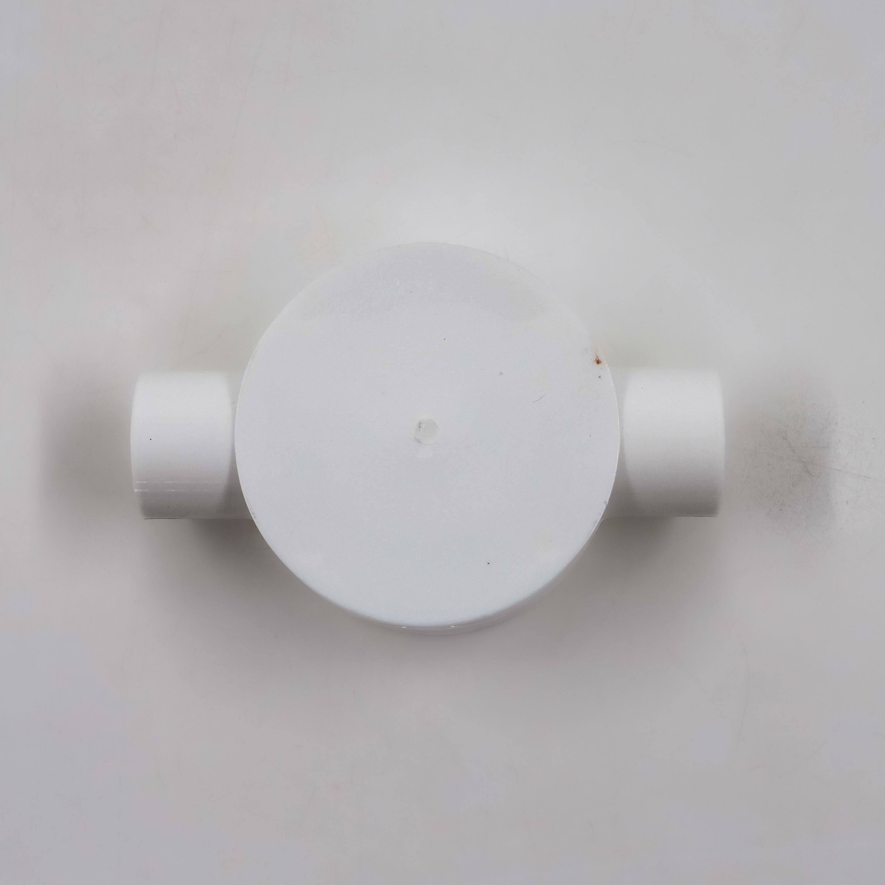 20MM 1 Way PVC conduit junction box in WHITE colour, high-quality, durable,easy installation, strong insulation, weatherproof, ideal for safe electrical wiring connections in residential and commercial applications projects