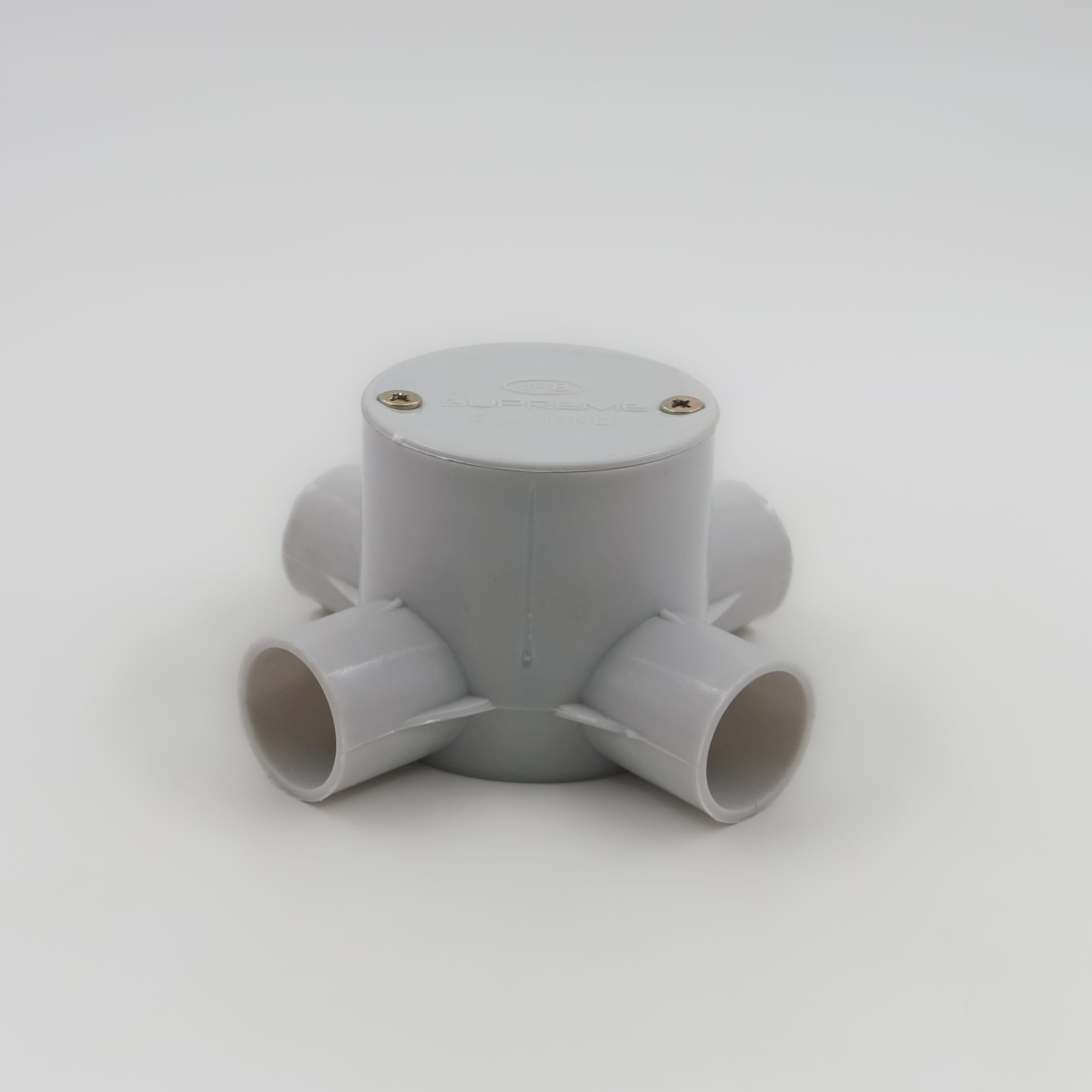 25MM 4 Way PVC conduit DEEP JUNCTION BOX in BLACK colour , high-quality, durable,easy installation, strong insulation, weatherproof, ideal for safe electrical wiring connections in residential and commercial applications projects
