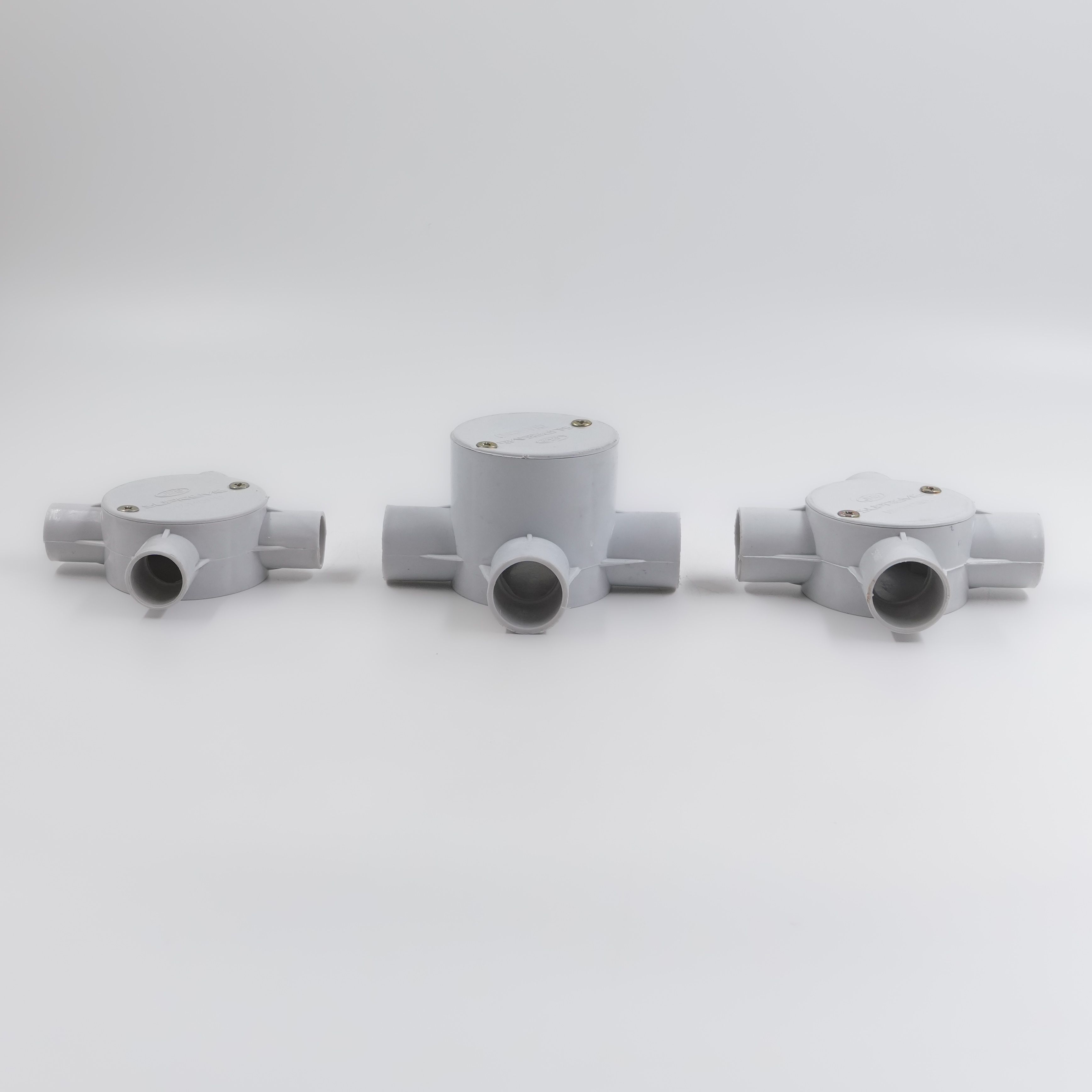 BRASS - Threading and Screw 25MM 4 Way PVC conduit DEEP JUNCTION BOX in GRAY colour , high-quality, durable,easy installation, strong insulation, weatherproof, ideal for safe electrical wiring connections in residential and commercial applications projects