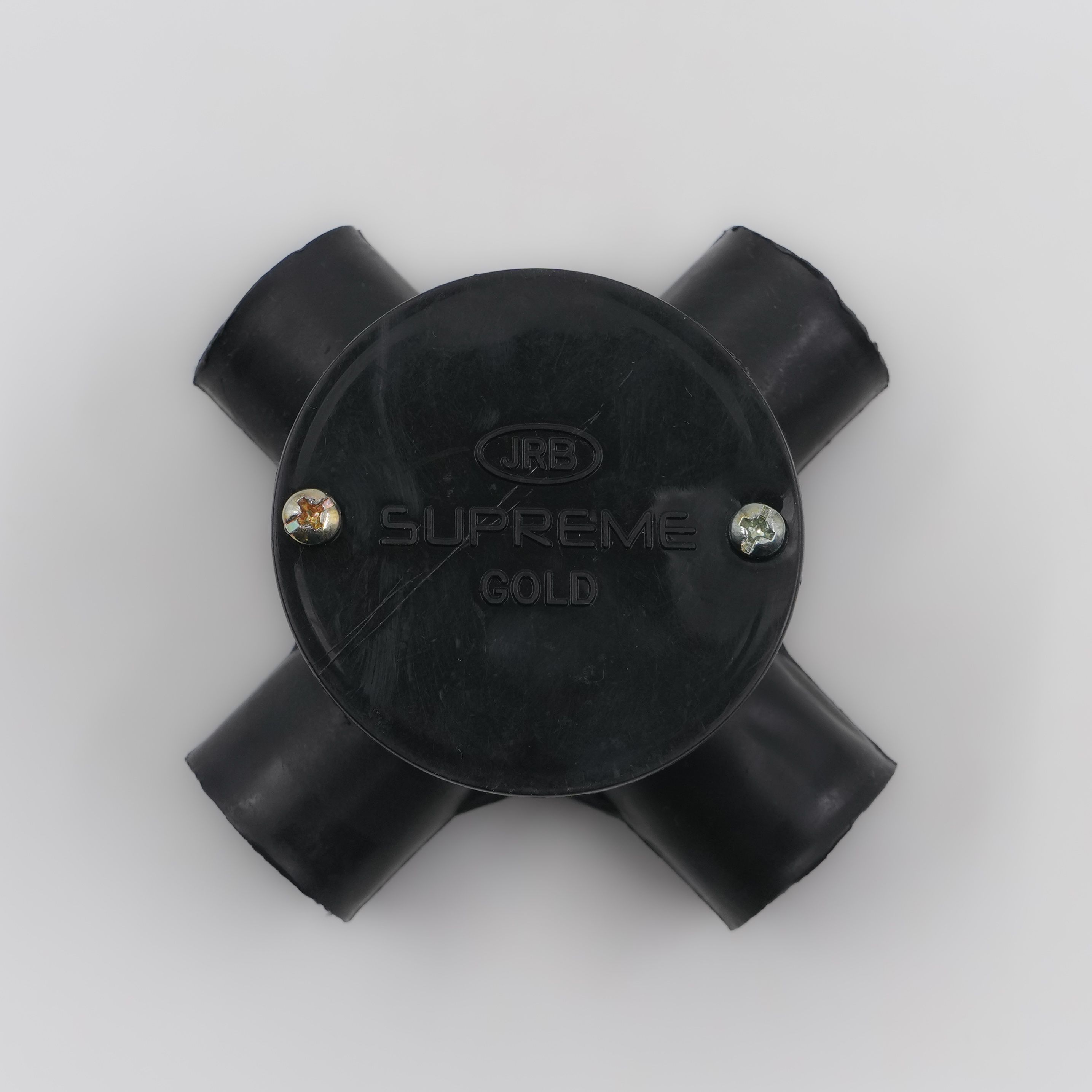 25MM 4 Way PVC conduit DEEP JUNCTION BOX in RED colour , high-quality, durable,easy installation, strong insulation, weatherproof, ideal for safe electrical wiring connections in residential and commercial applications projects