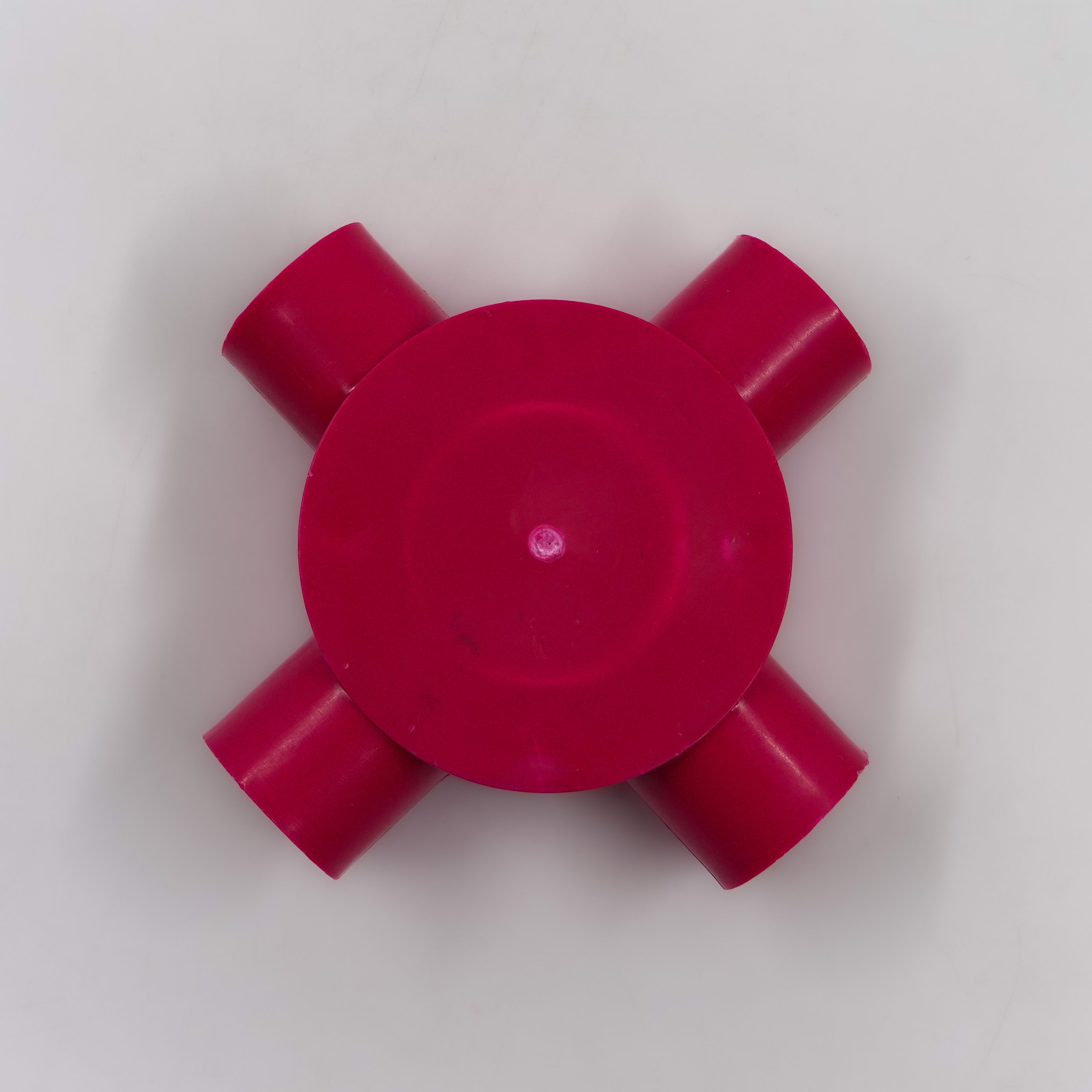 19mm 4 Way PVC conduit junction box in RED colour , high-quality, durable,easy installation, strong insulation, weatherproof, ideal for safe electrical wiring connections in residential and commercial applications projects