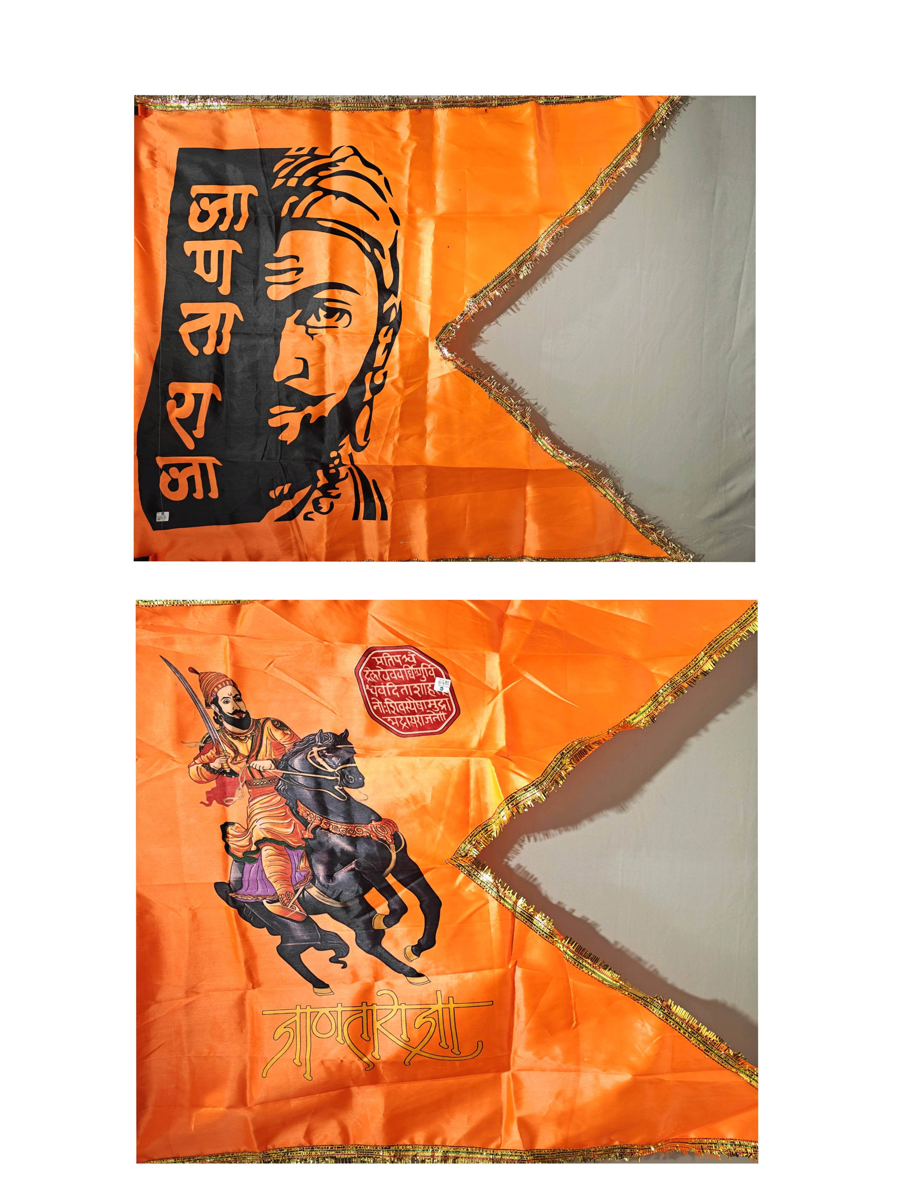 Traditional saffron jhanda celebrating the valor of Chhatrapati Shivaji, perfect for processions and festivals.