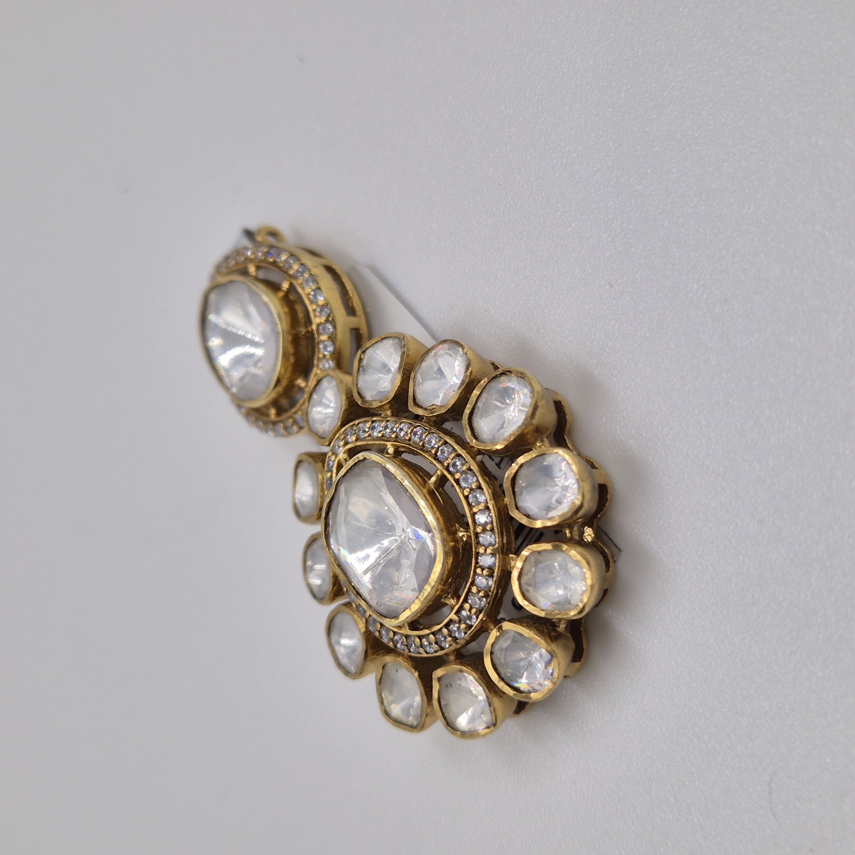 Crafted in 92.5 purity silver, this dual oval pendant features luminous kundan stones with delicate detailing. Its layered floral design adds a regal touch, perfect for festive and wedding wear. CARE TIP: Keep away from water, perfume and chemicals. Store in an airtight box and wipe gently with a soft cloth after use.