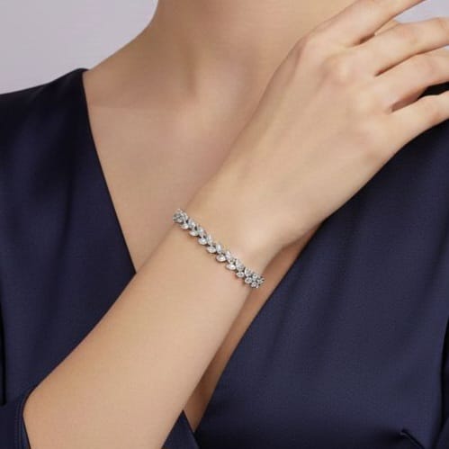 Upgrade your look with this modern Silver bracelet from the Diva collection, crafted with a trusted 92.5 PURITY RATE. The vertical bar design with crystal detailing in premium Silver adds elegance and balance. Simple silver maintenance ensures long-lasting shine. Ideal for everyday and formal styling.