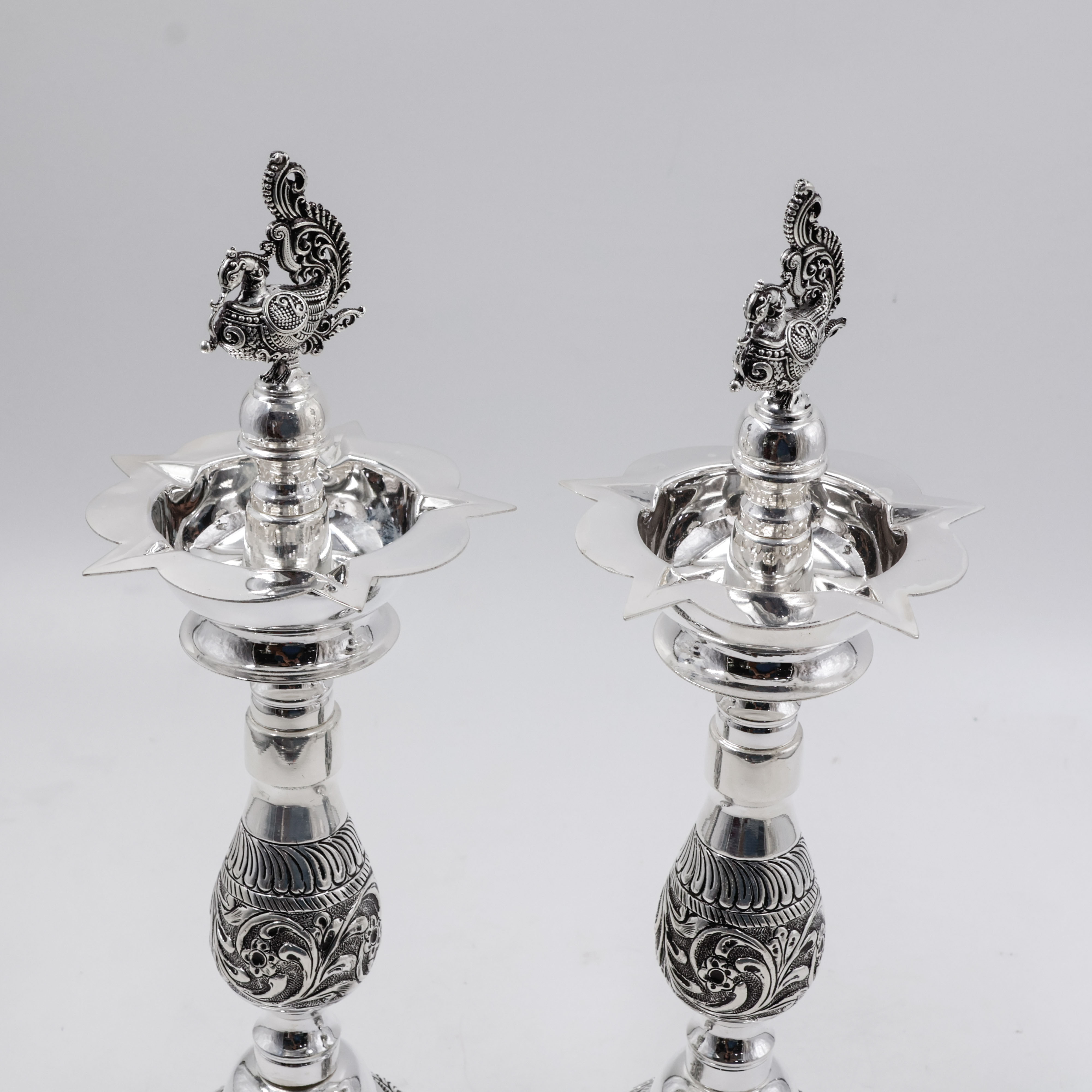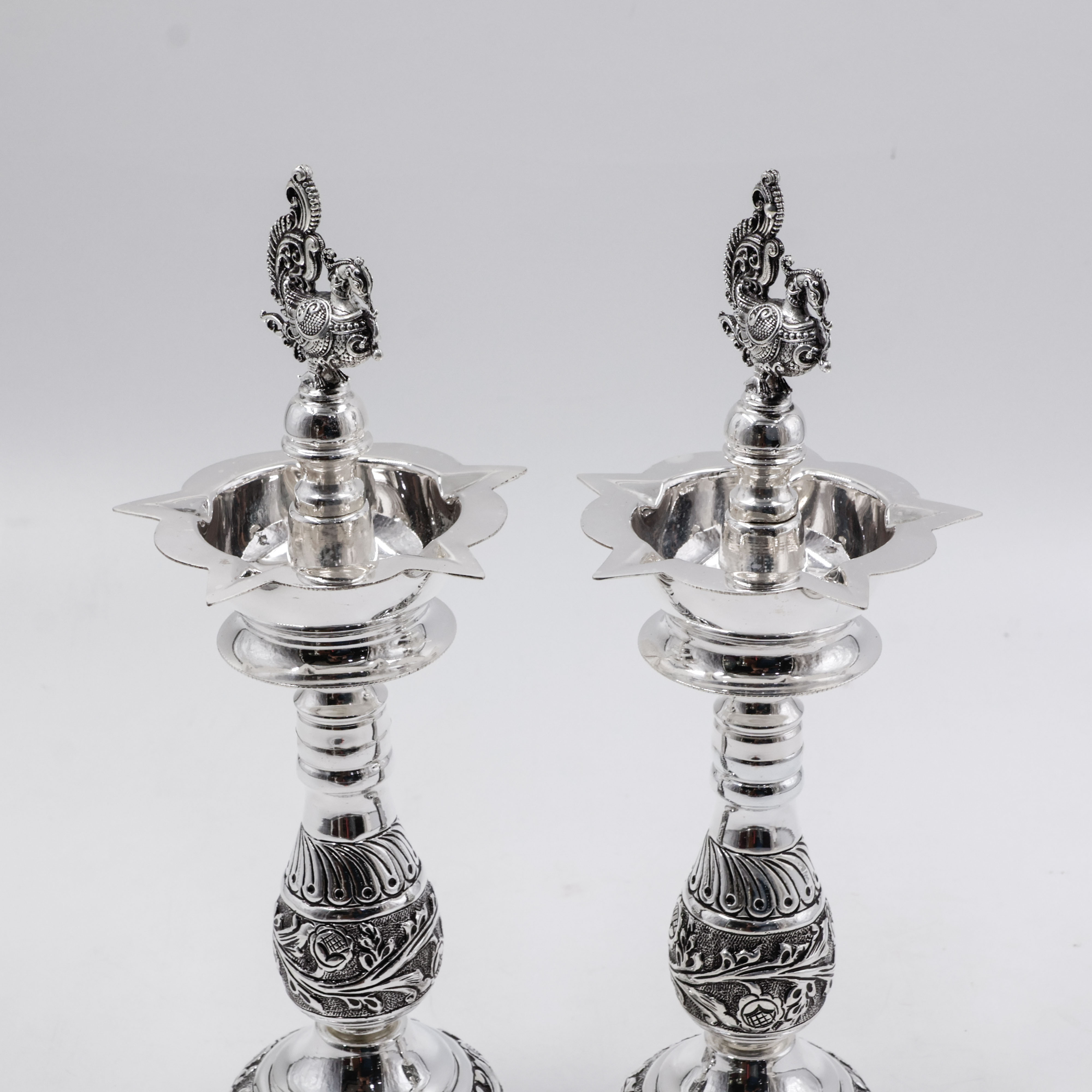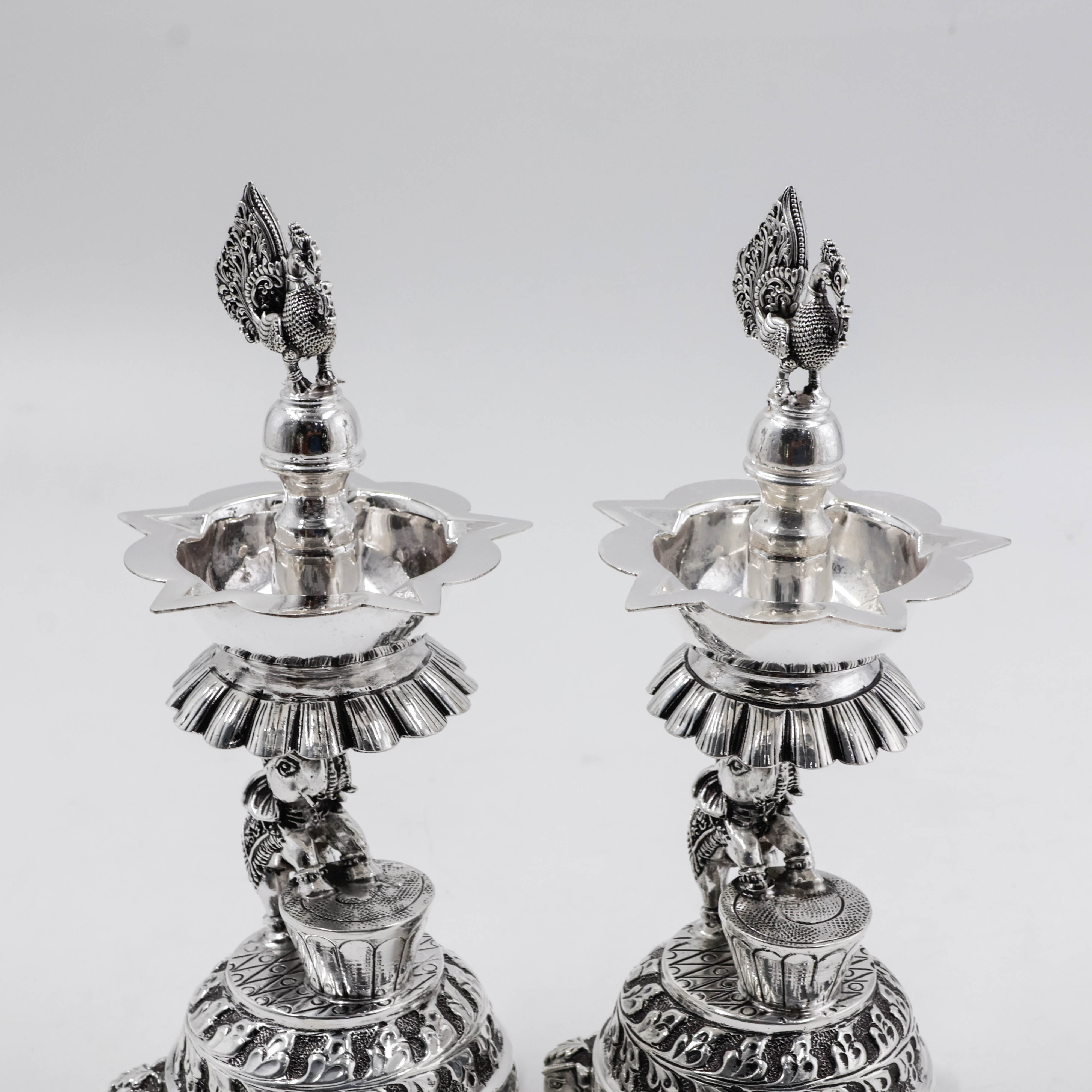 Silver Deepam With Nakshi Design Peacock