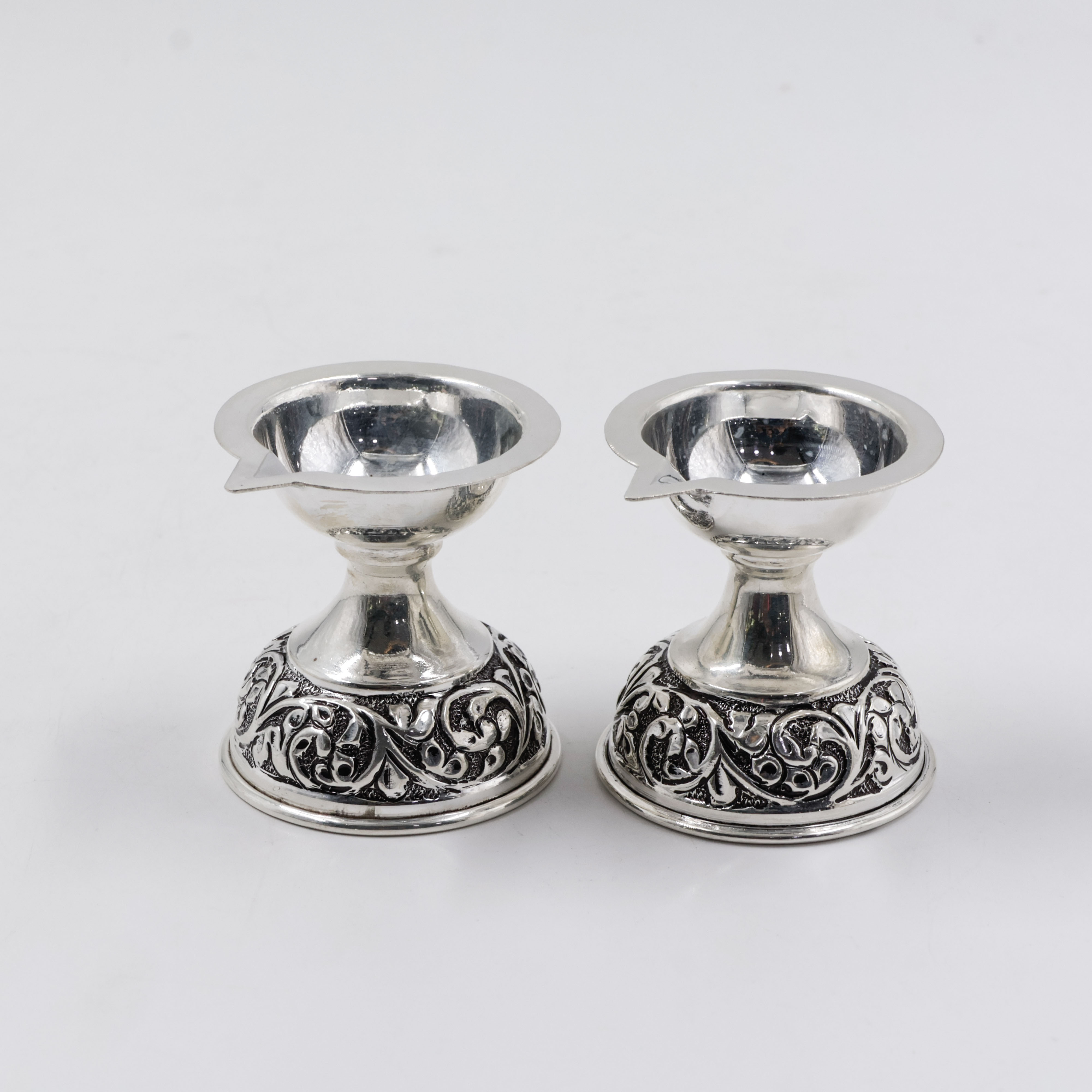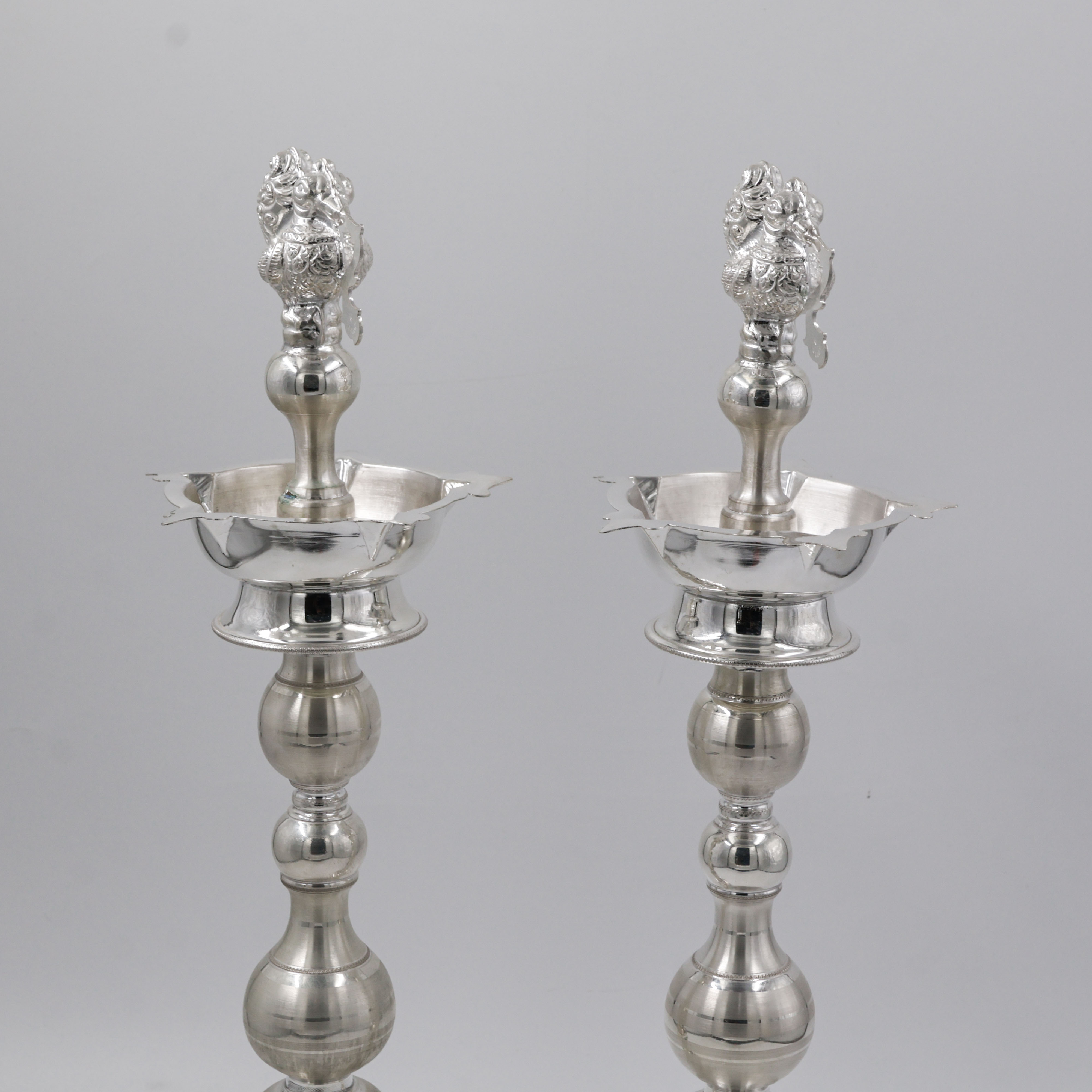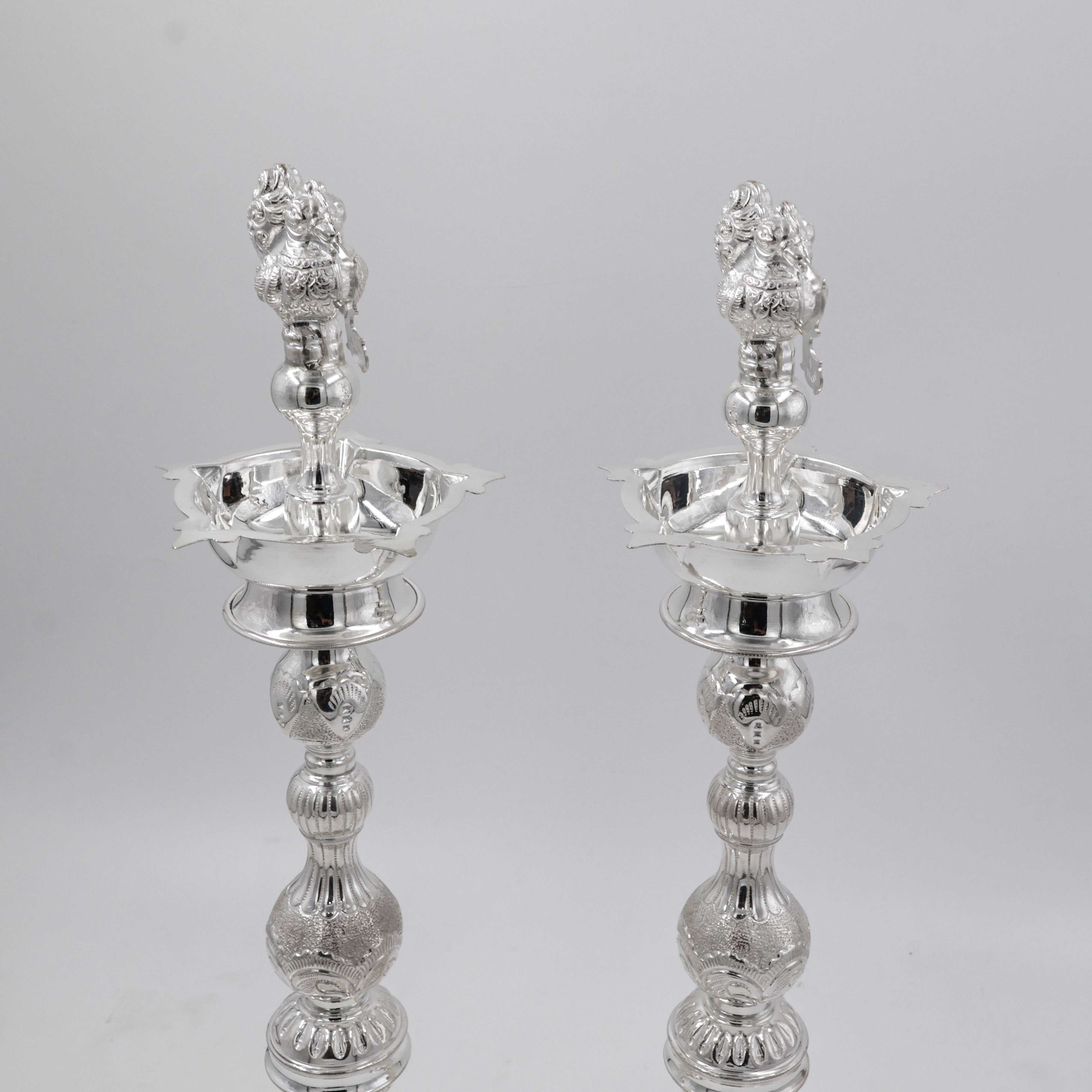 Silver Deepam With Nakshi Design Peacock