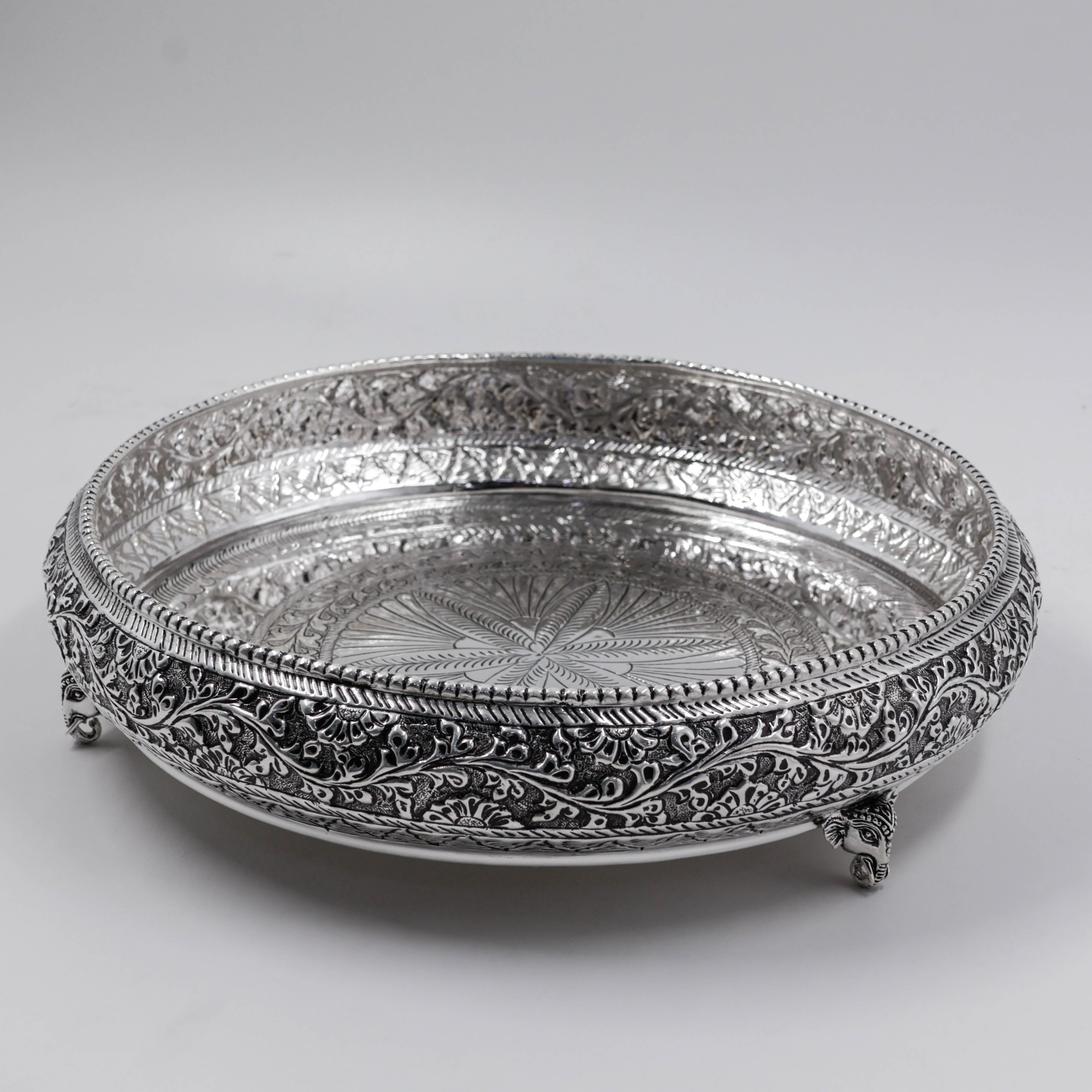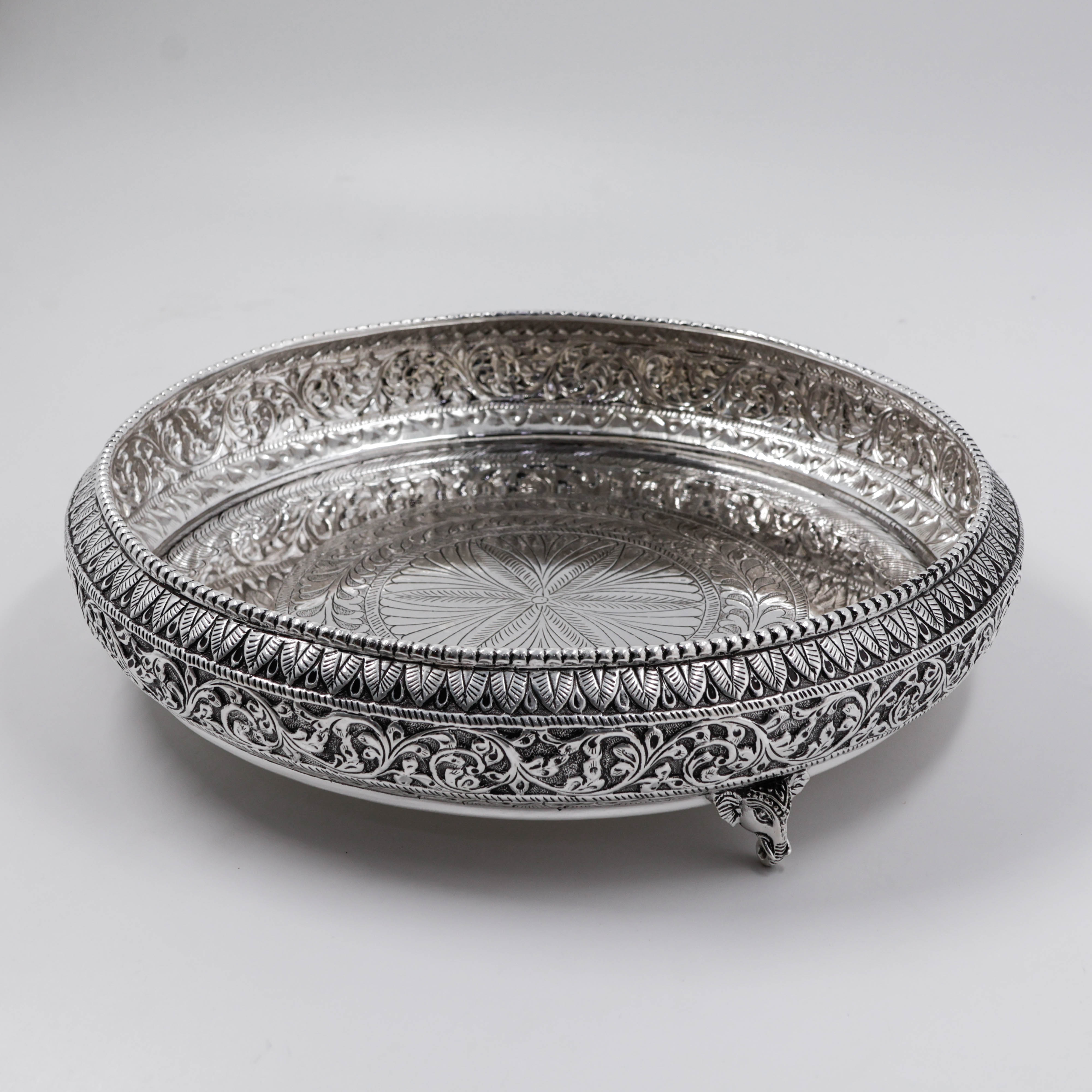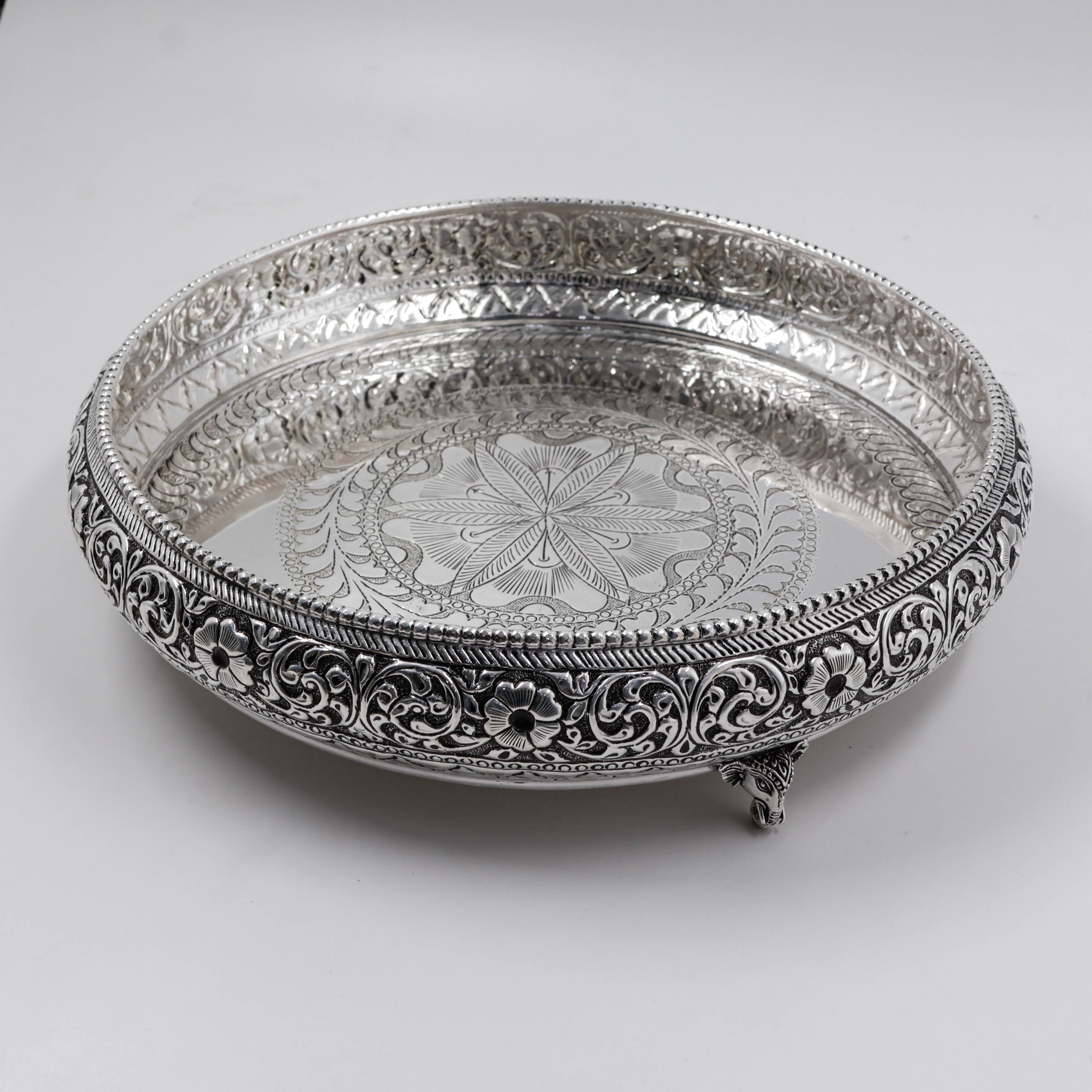 92.5 Anitque Finish Elephant Plate For Pooja