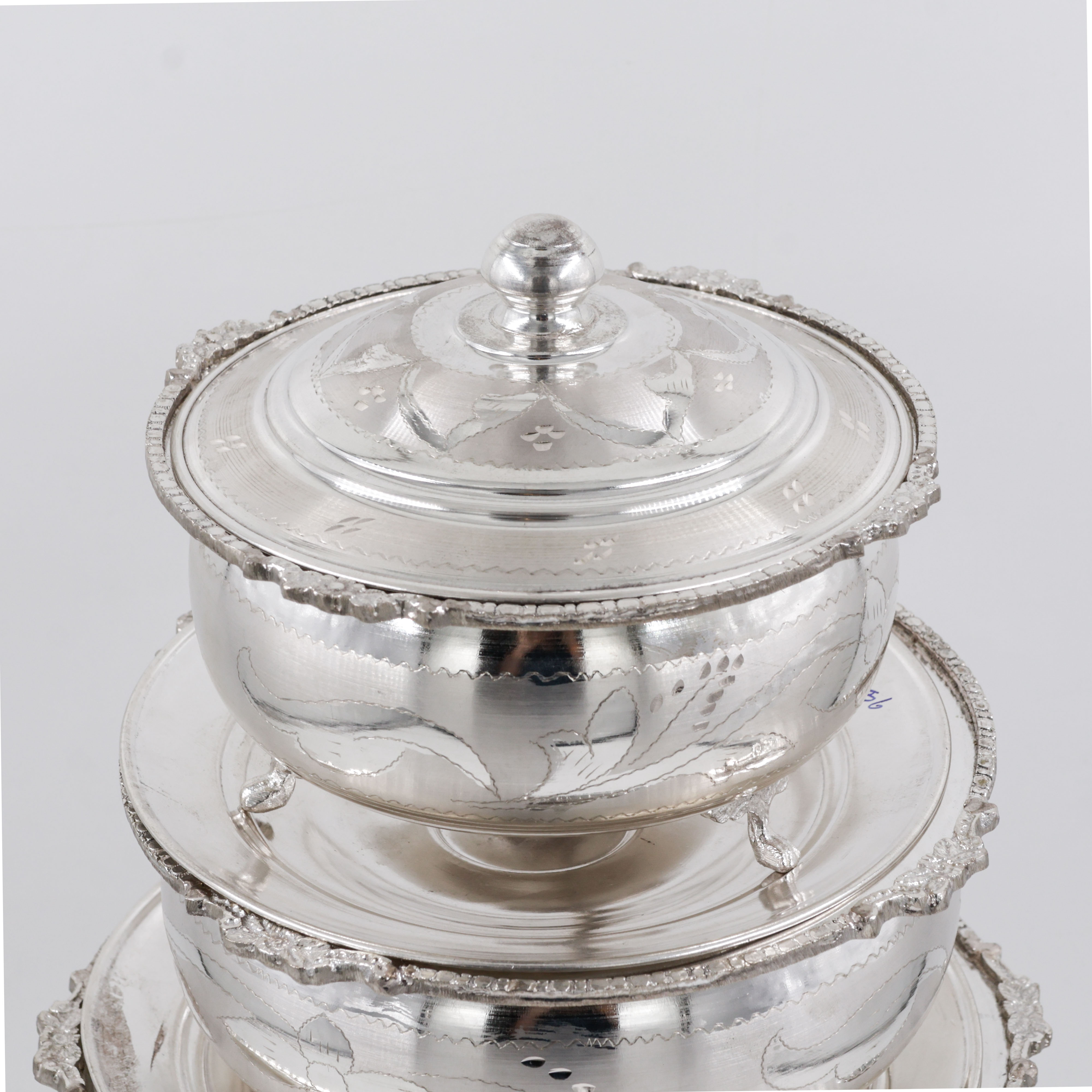 Silver Engraving Dish Bowl With Lid Set Of Five