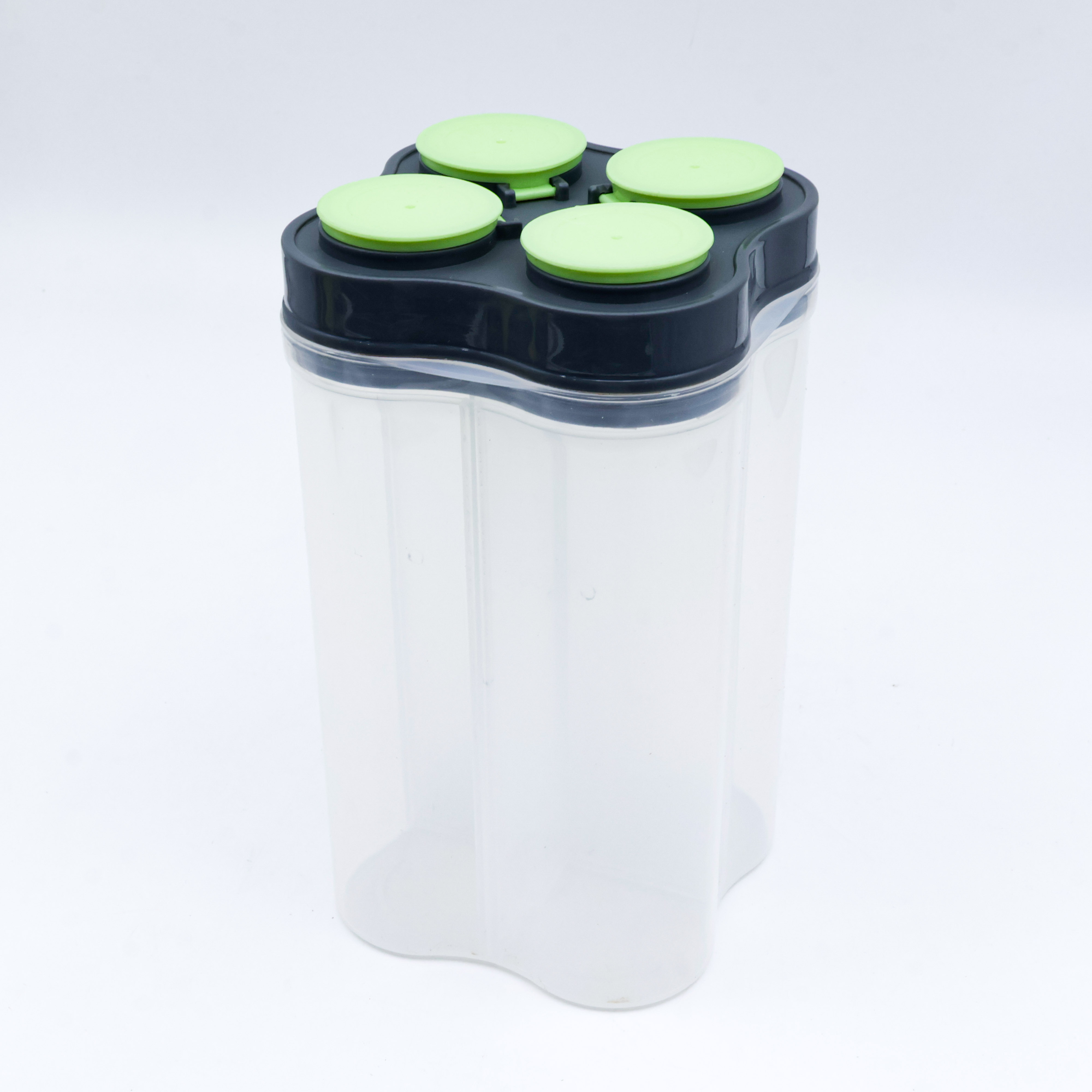 A four-section container for keeping dry fruits, snacks, or condiments separately.