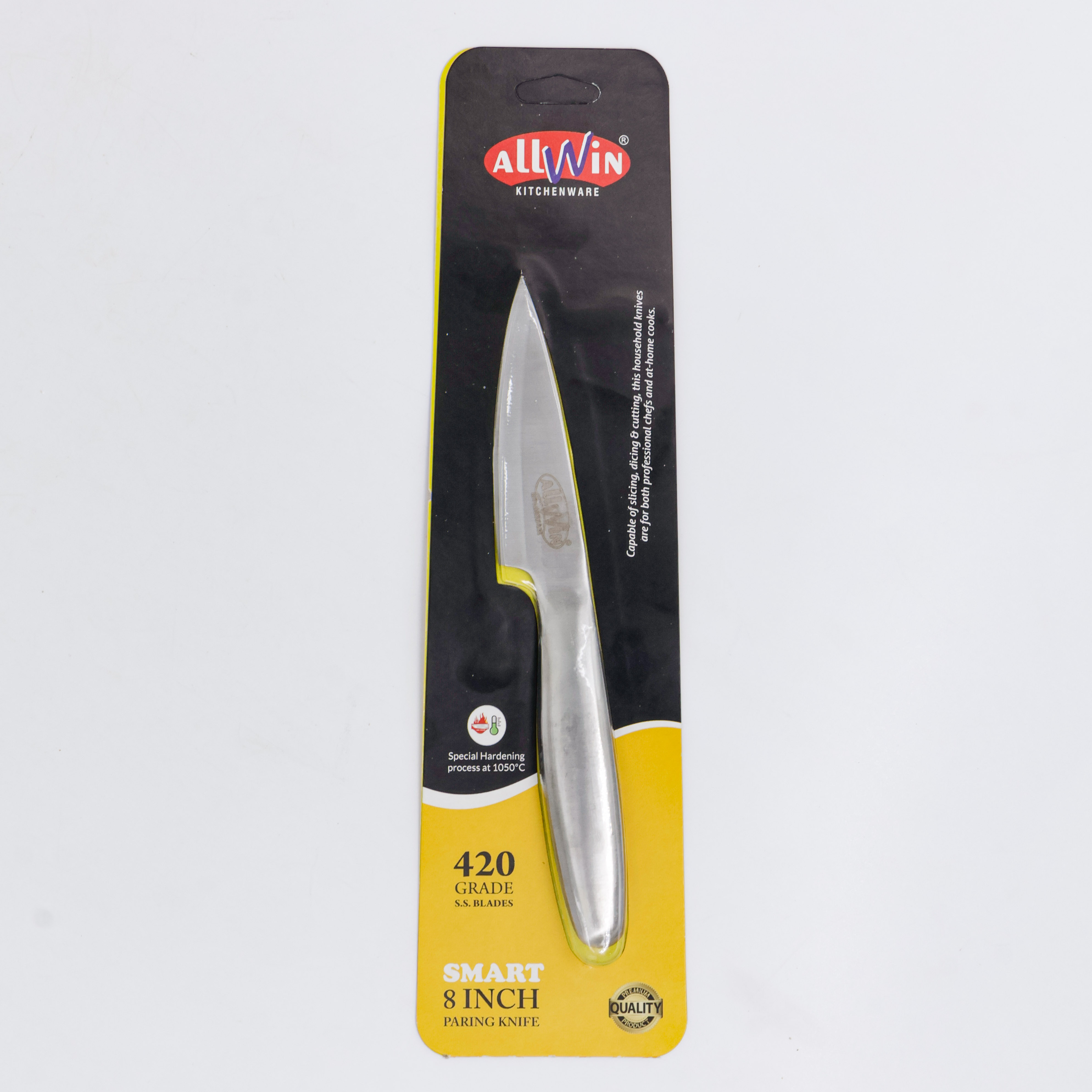 An 8" Smart stainless knife for chopping and slicing.