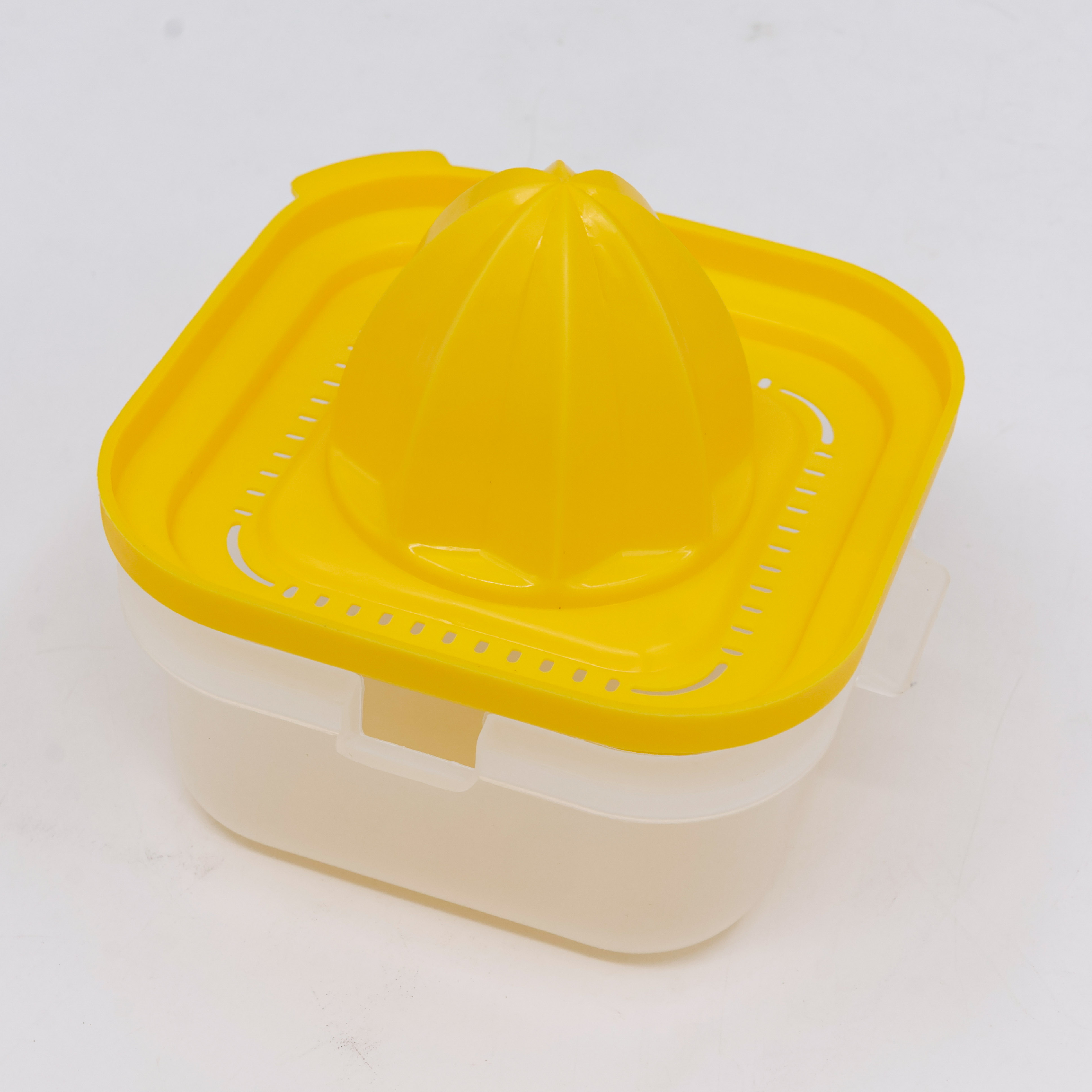 Compact orange baby juicer designed for fresh fruit juice.