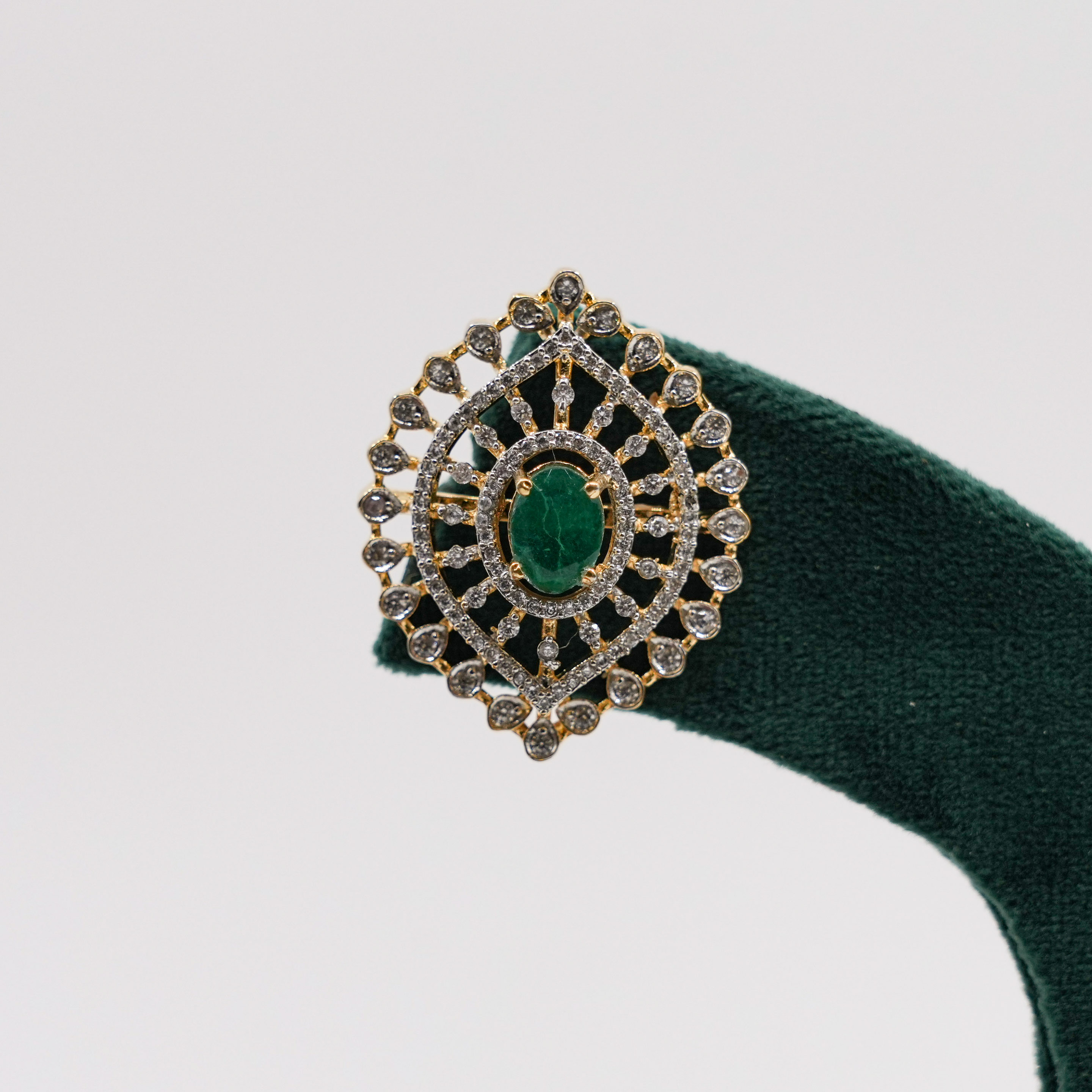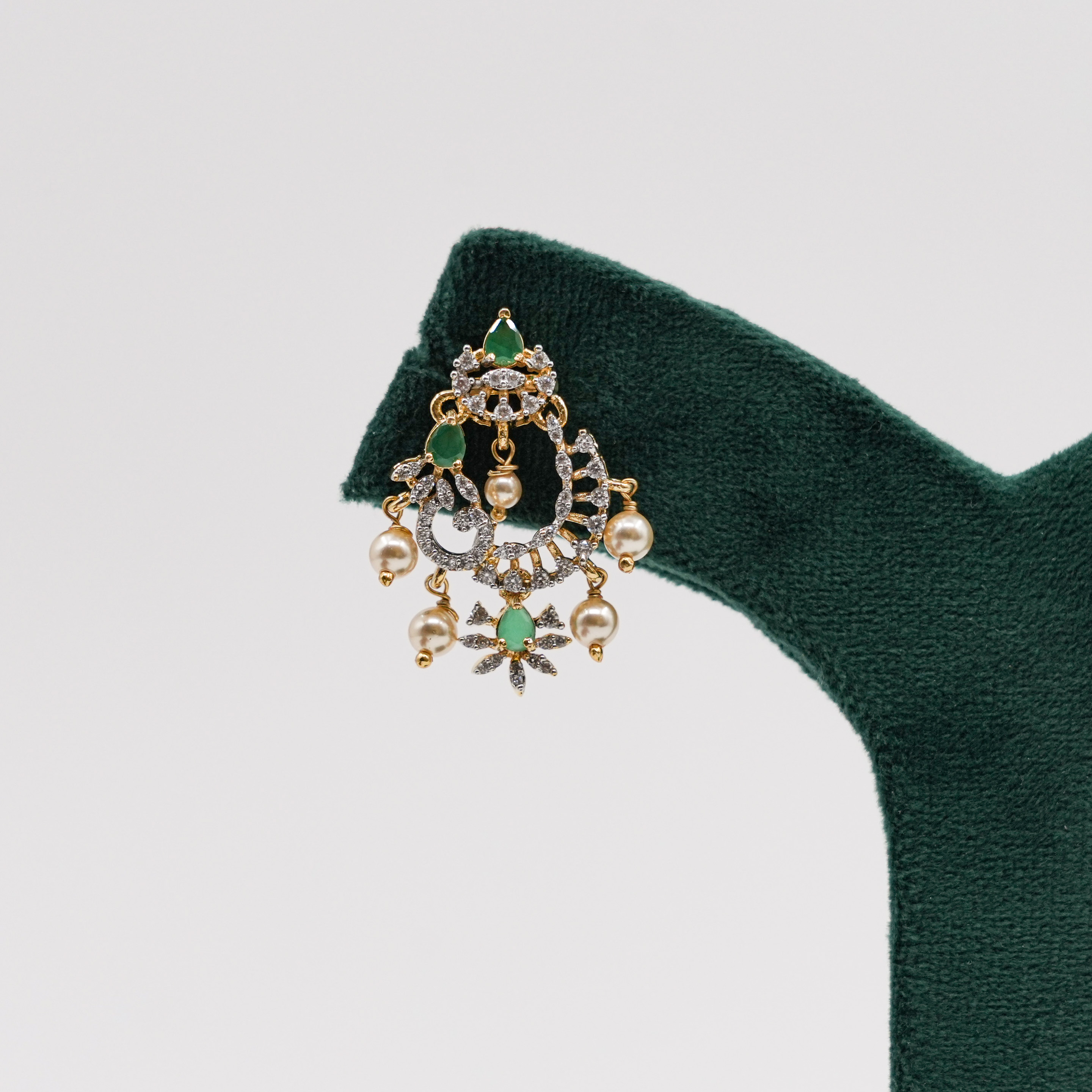 Elegant emerald stud earrings with intricate diamond detailing, perfect for special occasions. Buy emerald stud earrings from Raag Silver Jewellery in Hyderabad.