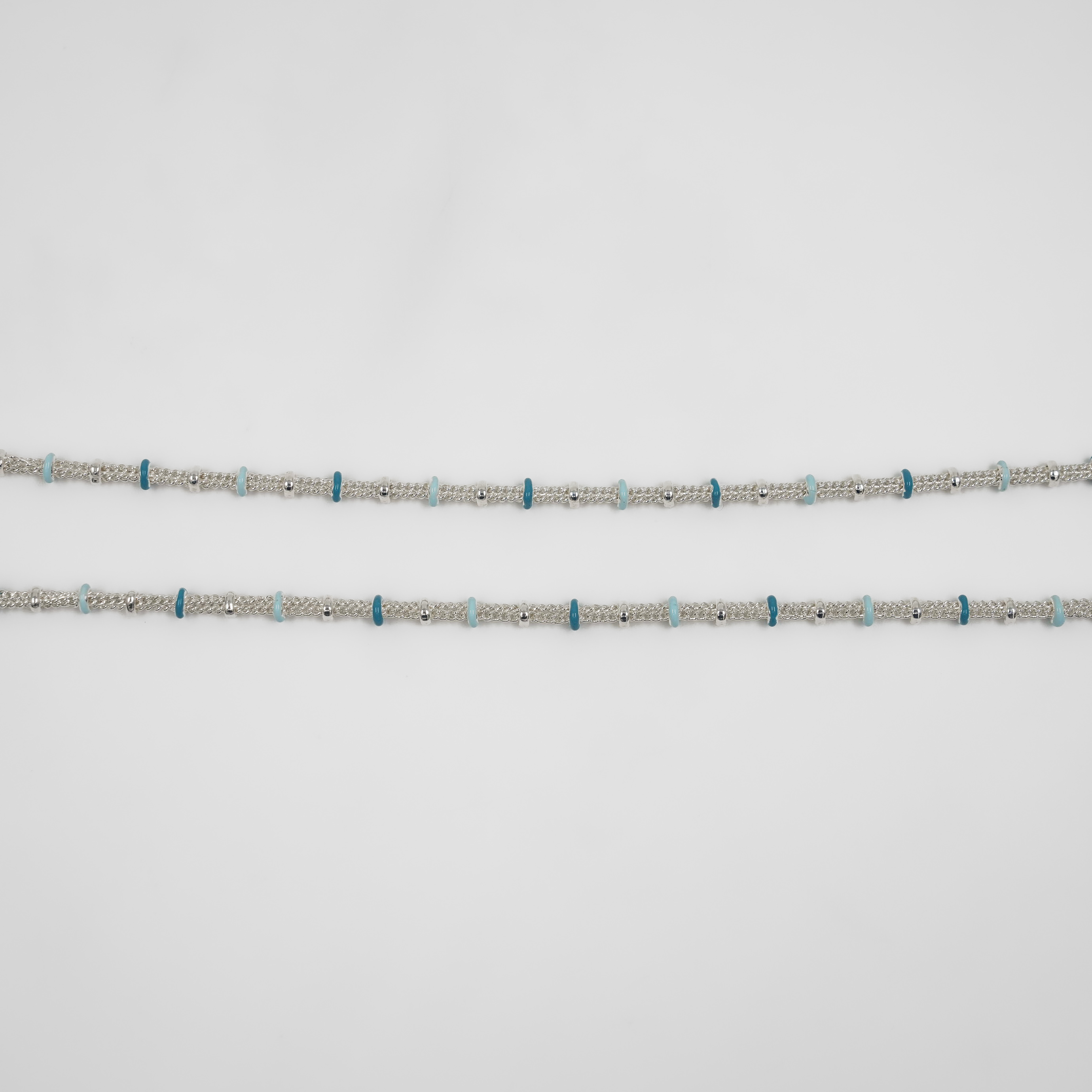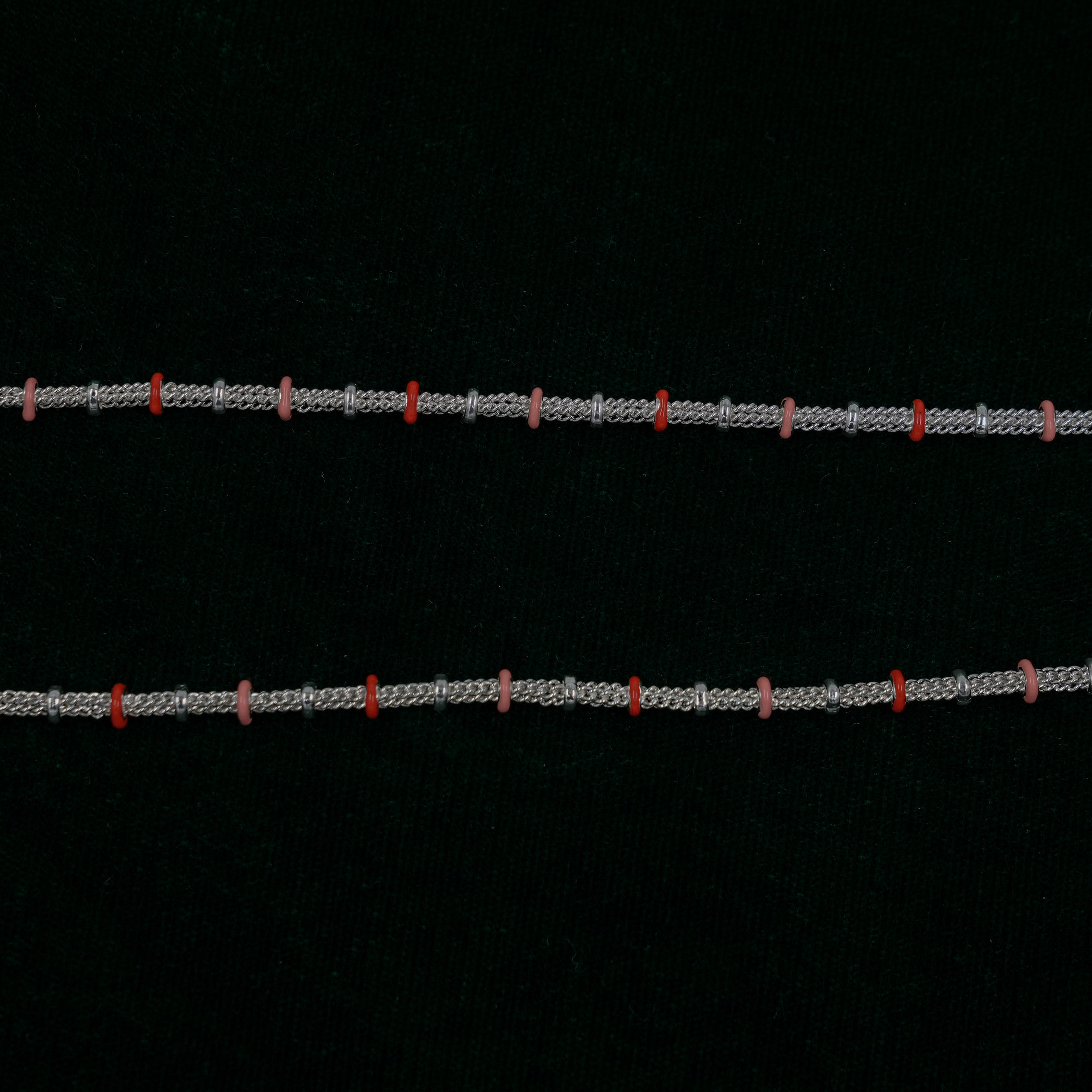 Delicate silver beaded anklet with colorful accents, perfect for adding charm to any outfit. Buy Silver Beaded Anklet from Raag Silver Jewellery in Hyderabad.